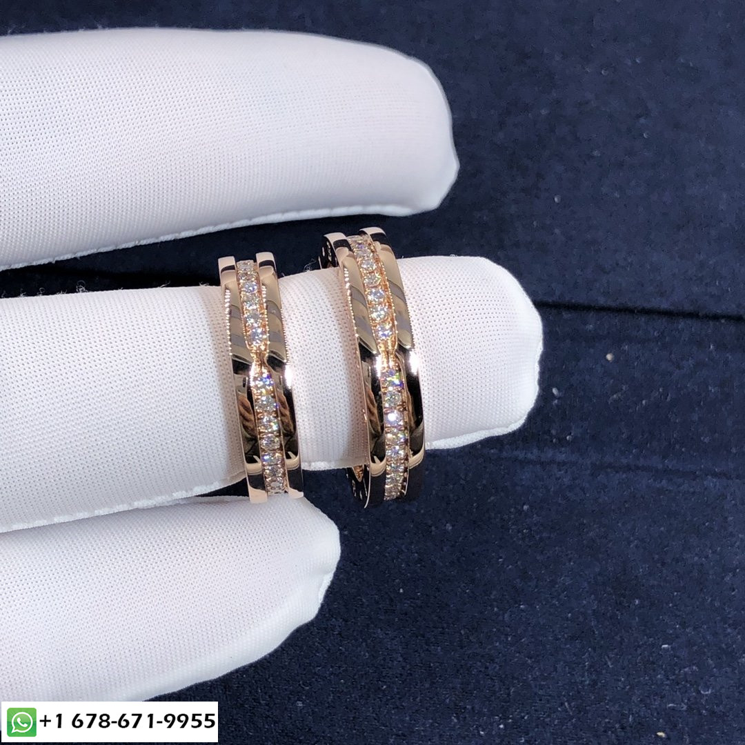 مخصص لمدينة البندقية خاتم زواج بولغري مصنوع خصيصًا من الذهب الوردي عيار 18 قيراطًا ومرصع بألماس مرصوف بالكامل 0.34 كما تم تبادل خاتم الخطوبة الأول في البندقية في أوائل القرن السادس عشر, تكرم فرقة زفاف Dedicata a Venezia هذا التقليد الإيطالي الرومانسي. متلألئ باللمعان الأبدي, مزيج من البلاتين والماس قطع بريانت يكتسب نعمة كيميائية في جوهرة مستوحاة من هذه المدينة الساحرة من الممرات المائية, ويقصد به أن يستمر إلى الأبد. خاتم زفاف ديديكاتا فينيزيا من البلاتين مرصع بالألماس المرصوف بالكامل.