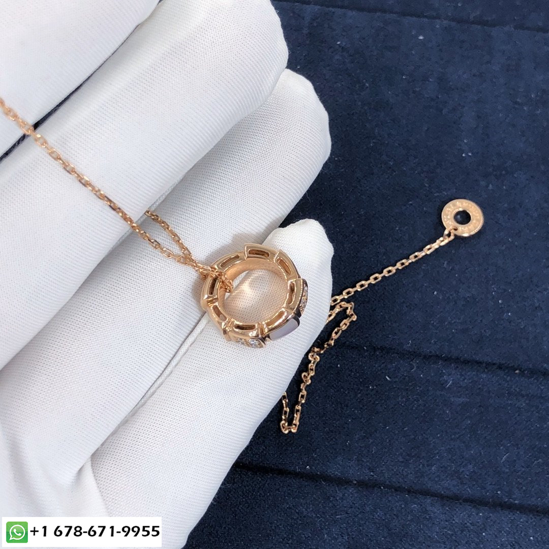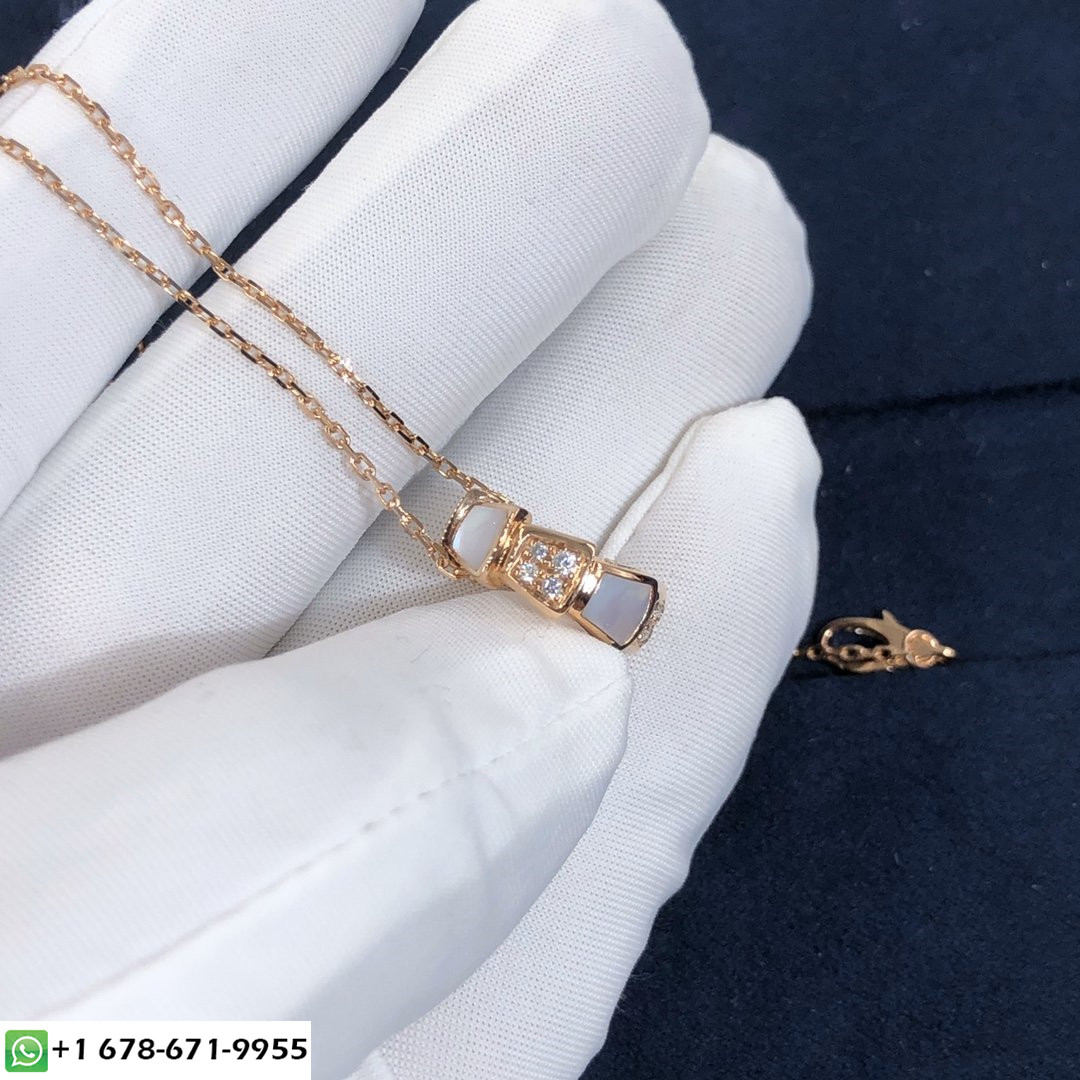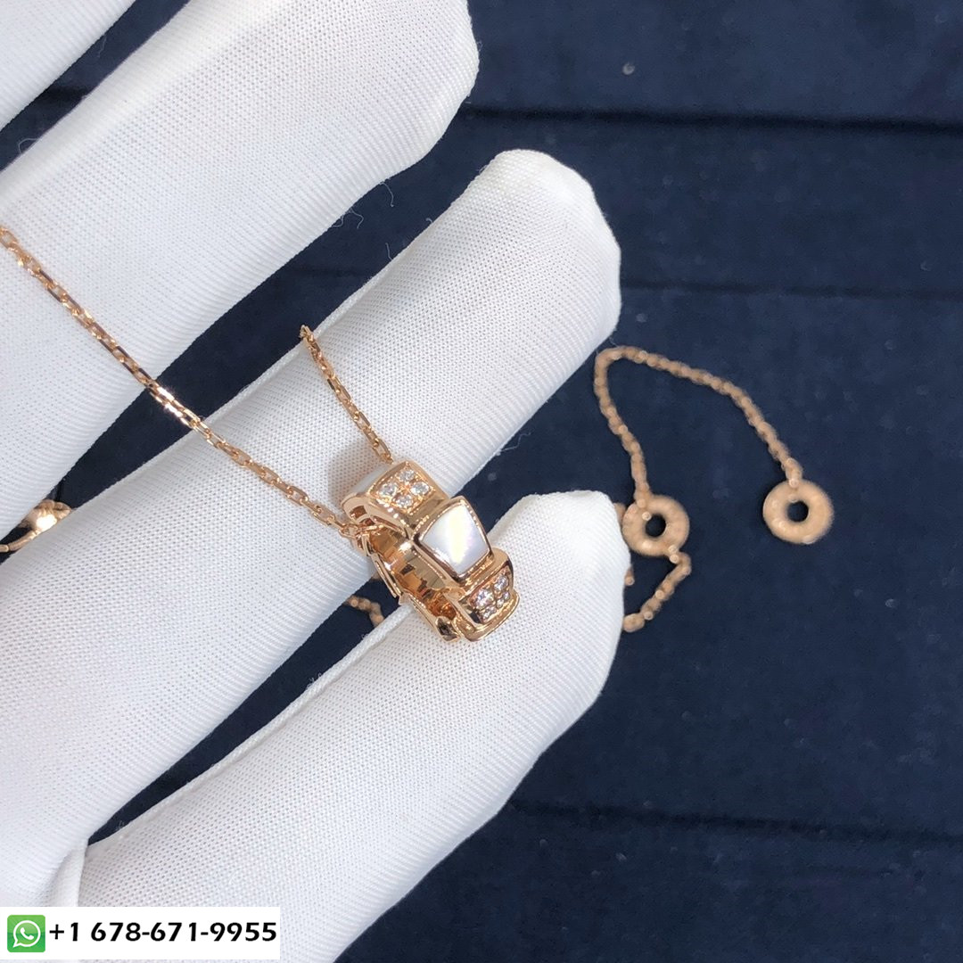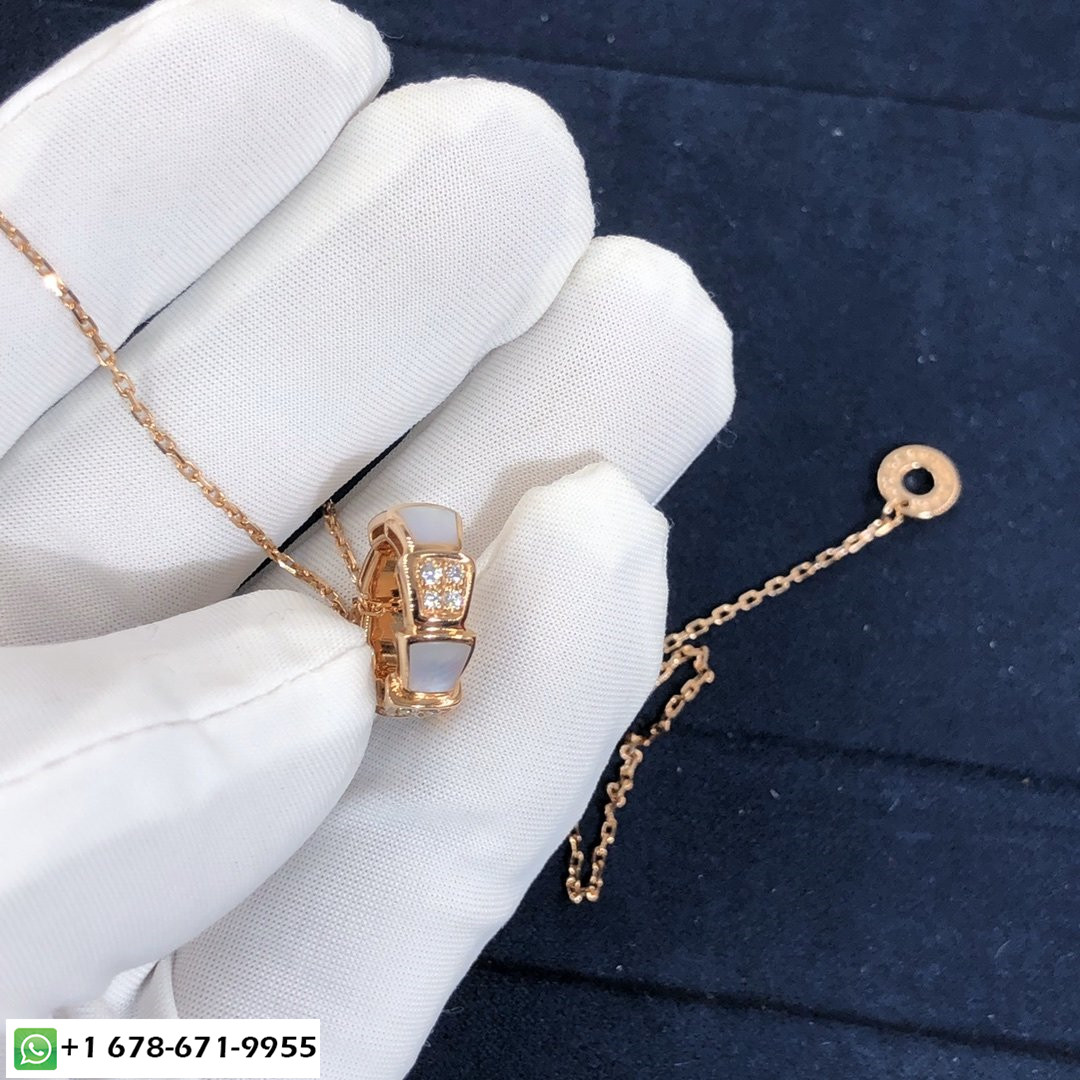عقد الأفعى بولغاري سيربنتي مصنوع من سلسلة ذهب وردي عيار 18 وقلادة من الذهب الوردي عيار 18 قيراط مرصعة أم لؤلؤة العناصر وتمهيد ديمي الماس(الوزن الكلي 0.21 ط م).