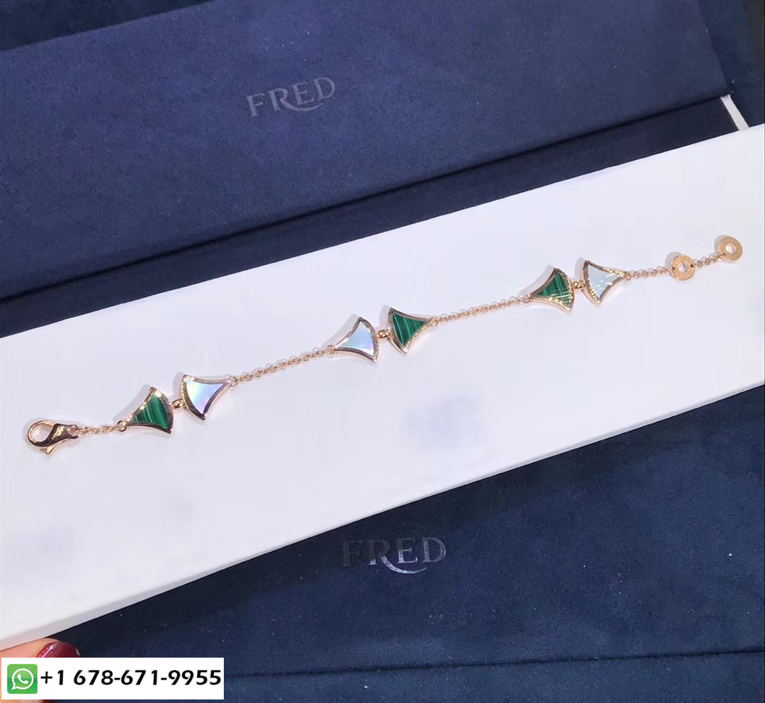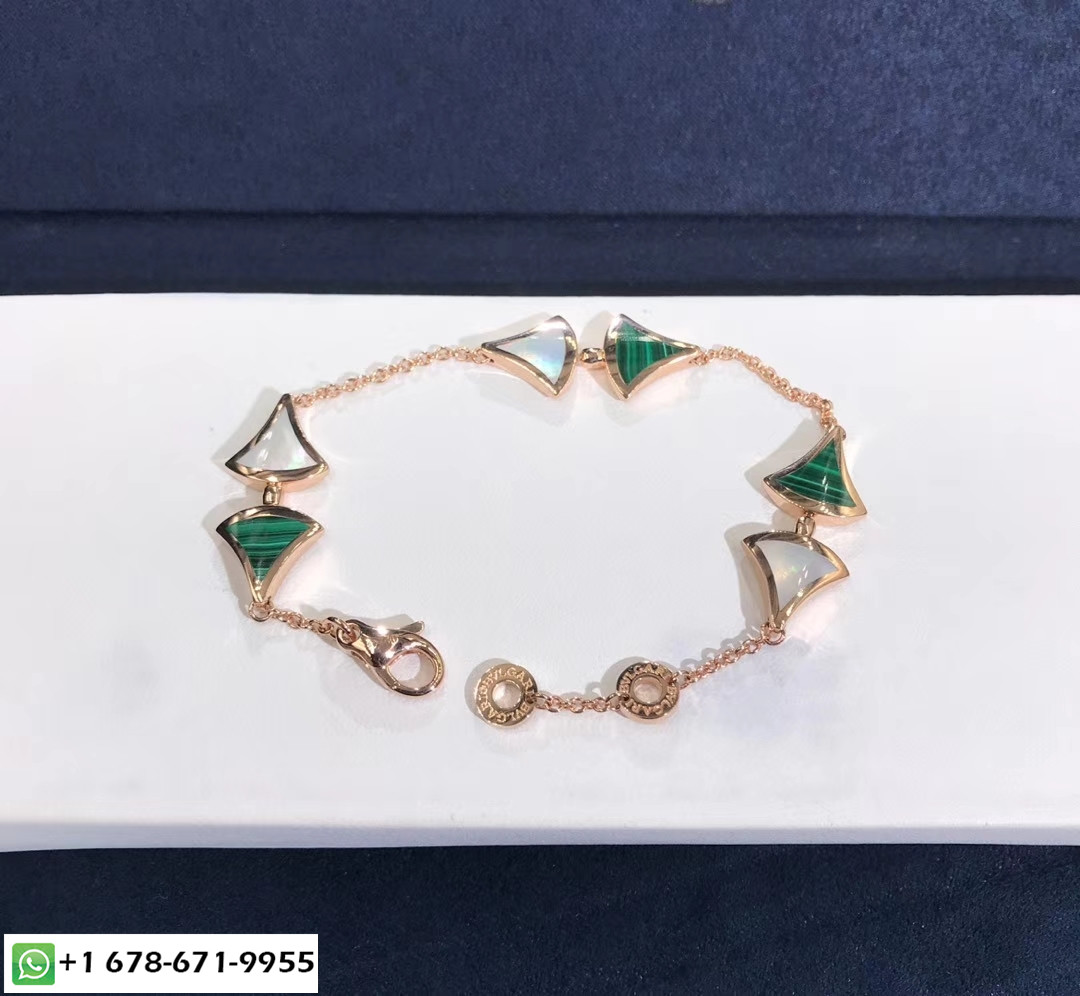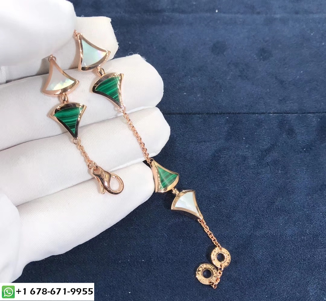 ديفاز بولغري’ سوار حلم مخصص صنع في 18 قيراط من الذهب الوردي مع عناصر من الملكيت وعرق اللؤلؤ ، مستوحى من الأناقة الأنثوية والجاذبية الساحرة للمدينة الخالدة, ديفاز’ يكرم سوار DREAM أكثر المغنيات براقة بروح رومانية لا لبس فيها. أنثوية بجوهرها وصقلها, السوار منحوت على روعة رخام حمامات كاراكلا والمنحنيات الحسية للفسيفساء على شكل مروحة, تعكس جوهر الجمال الإيطالي.