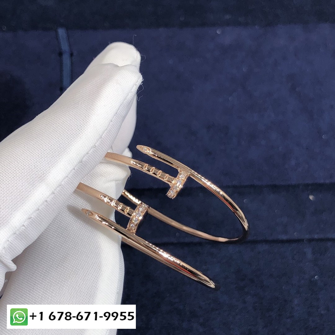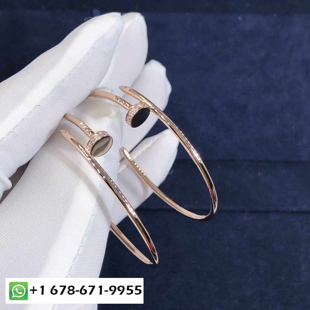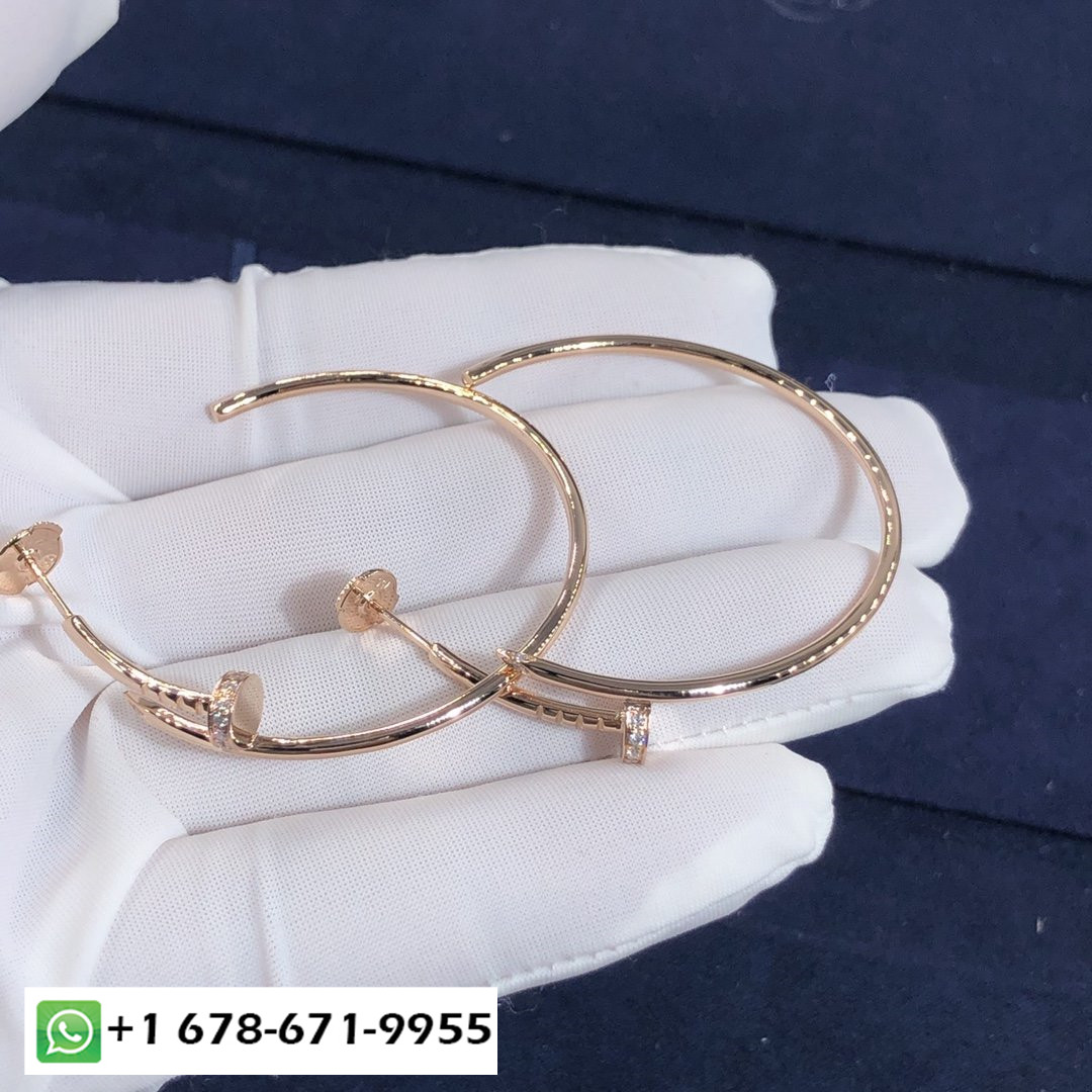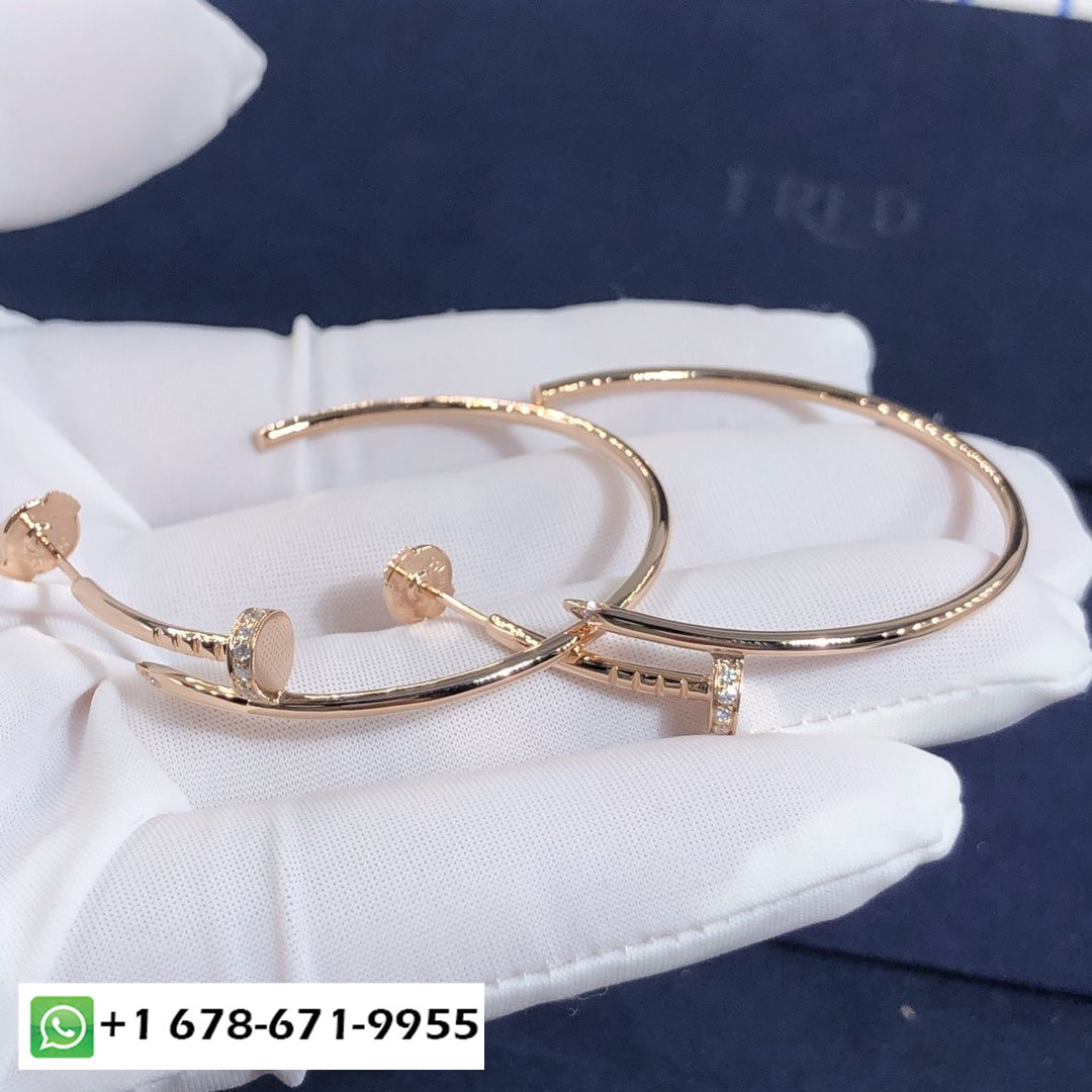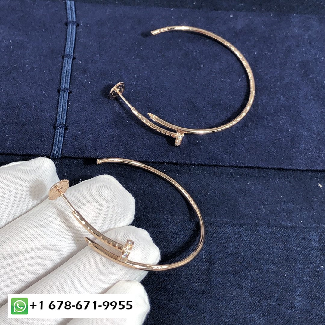كارتييه مجرد أقراط مسمار مصنوع خصيصًا من الذهب الوردي عيار 18 قيراطًا, مرصع 28 الماس قطع بريانت مجموع 0.17 قيراط. عرض: 1.8مم. القطر الداخلي 40 ملم.تتوفر أقراط كارتييه JUC أيضًا بالذهب الأصفر عيار 18 قيراطًا والذهب الأبيض عيار 18 عند الطلب.