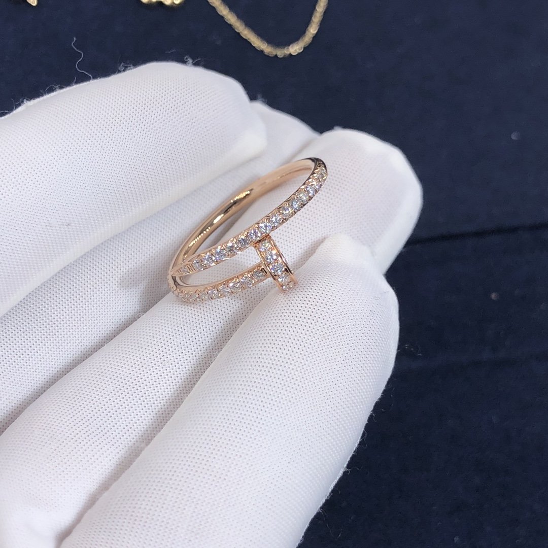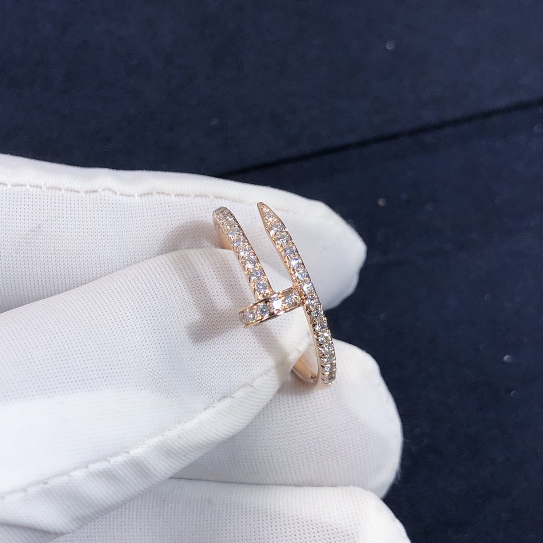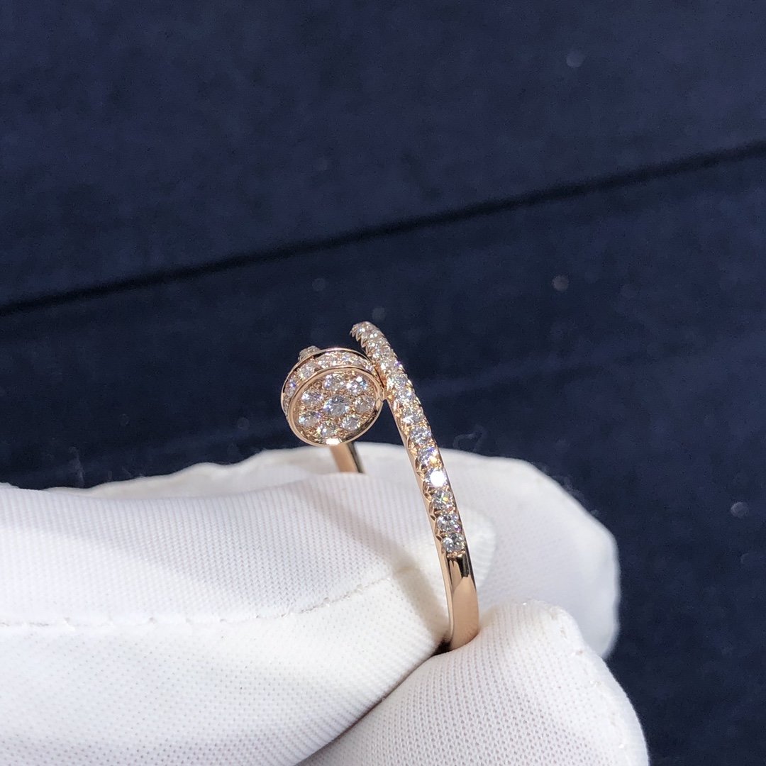 كارتييه مجرد مسمار حلقي مصنوع حسب الطلب من الذهب الوردي عيار 18 قيراطًا,مرصع 53 الماس قطع بريانت مجموع 0.40 قيراط. خاتم كارتييه juste un clou متوفر أيضًا من الذهب الأبيض عيار 18 قيراطًا والذهب الأصفر عيار 18 عند الطلب.