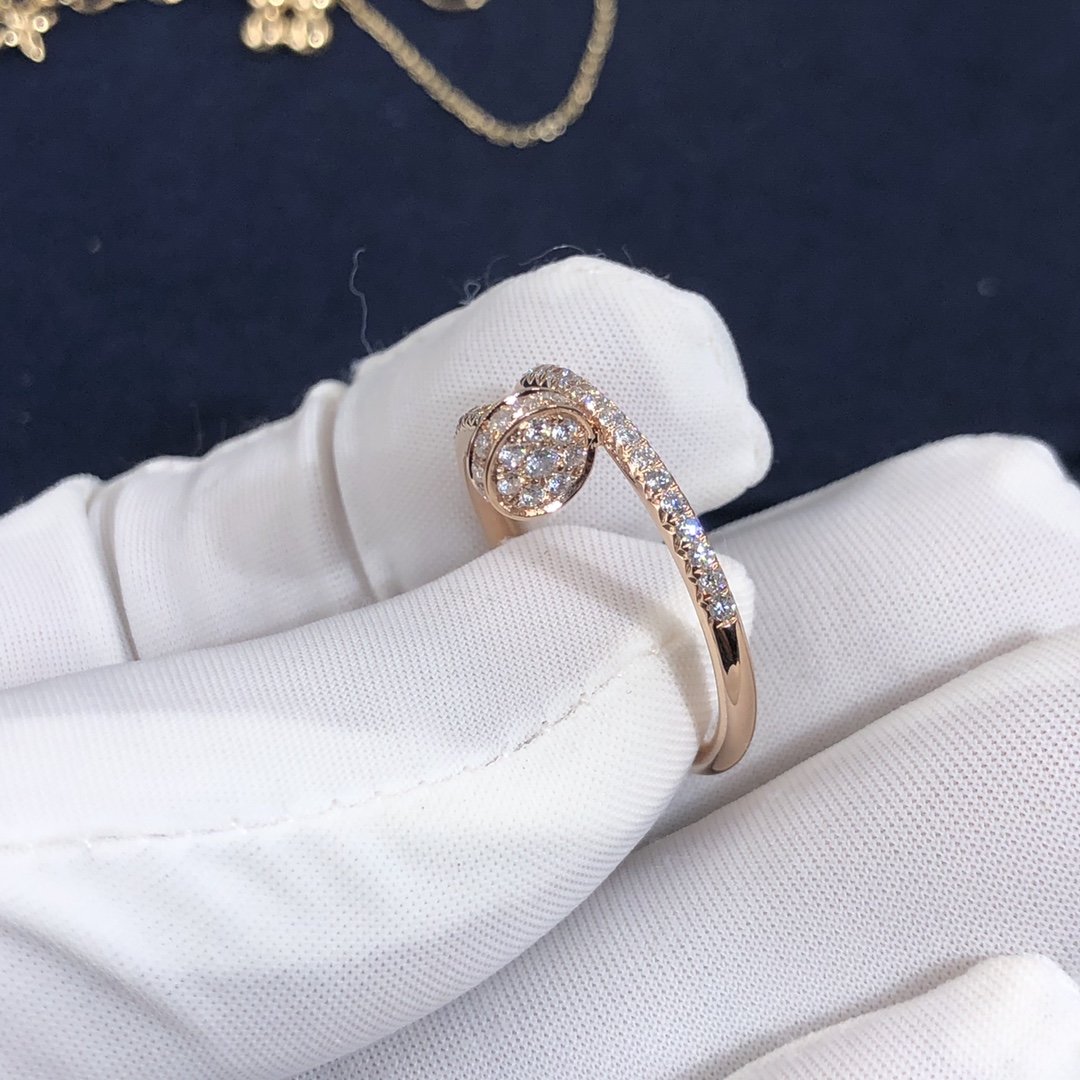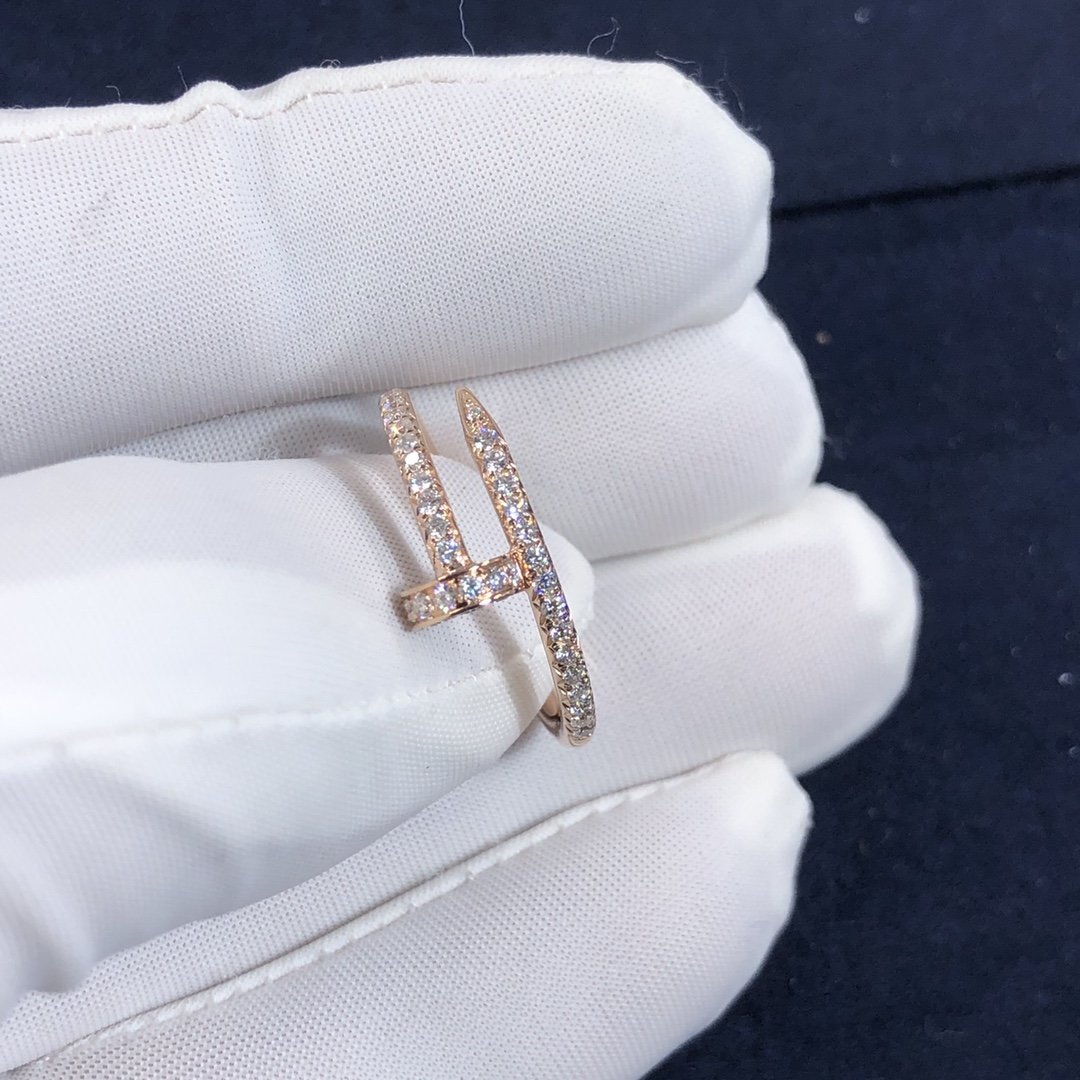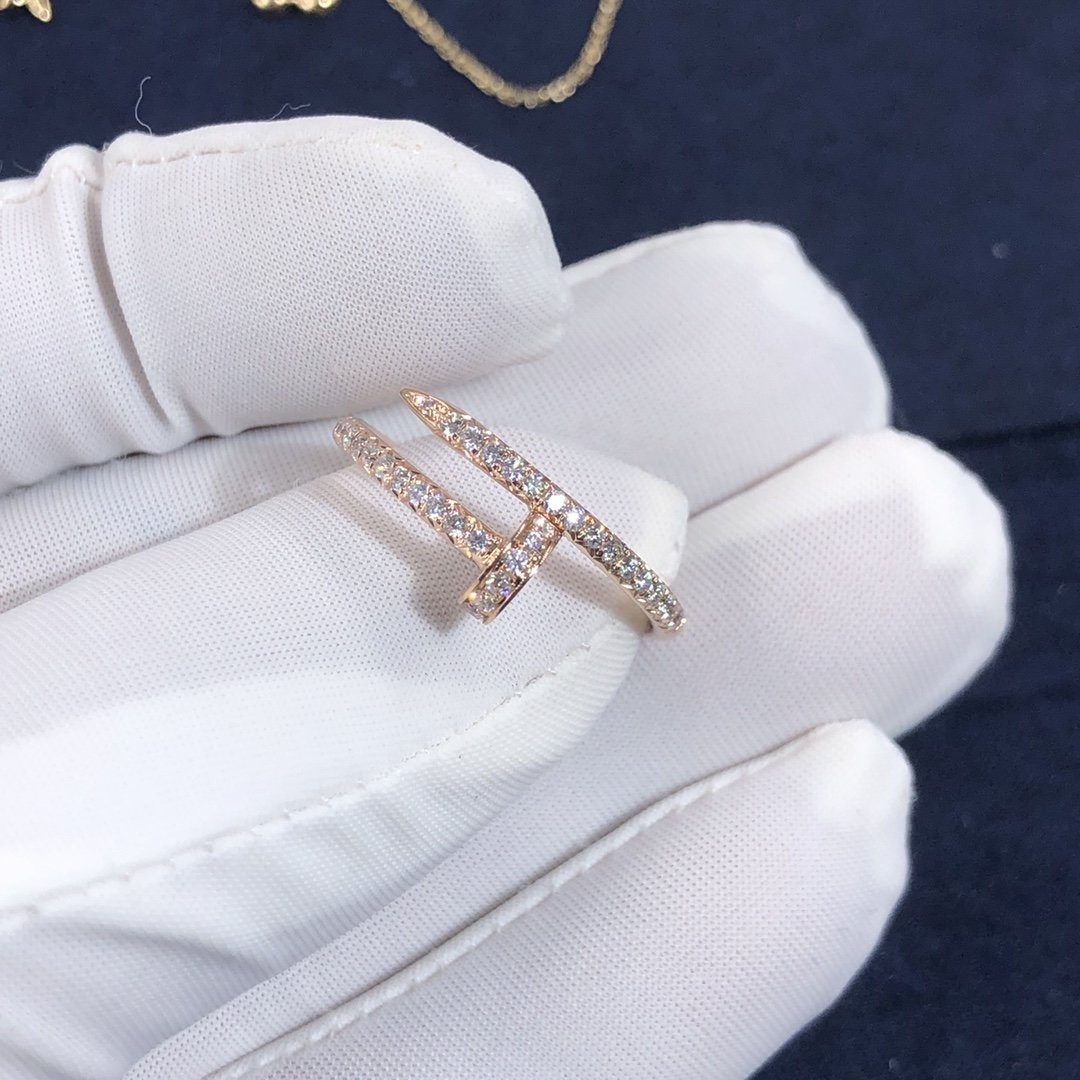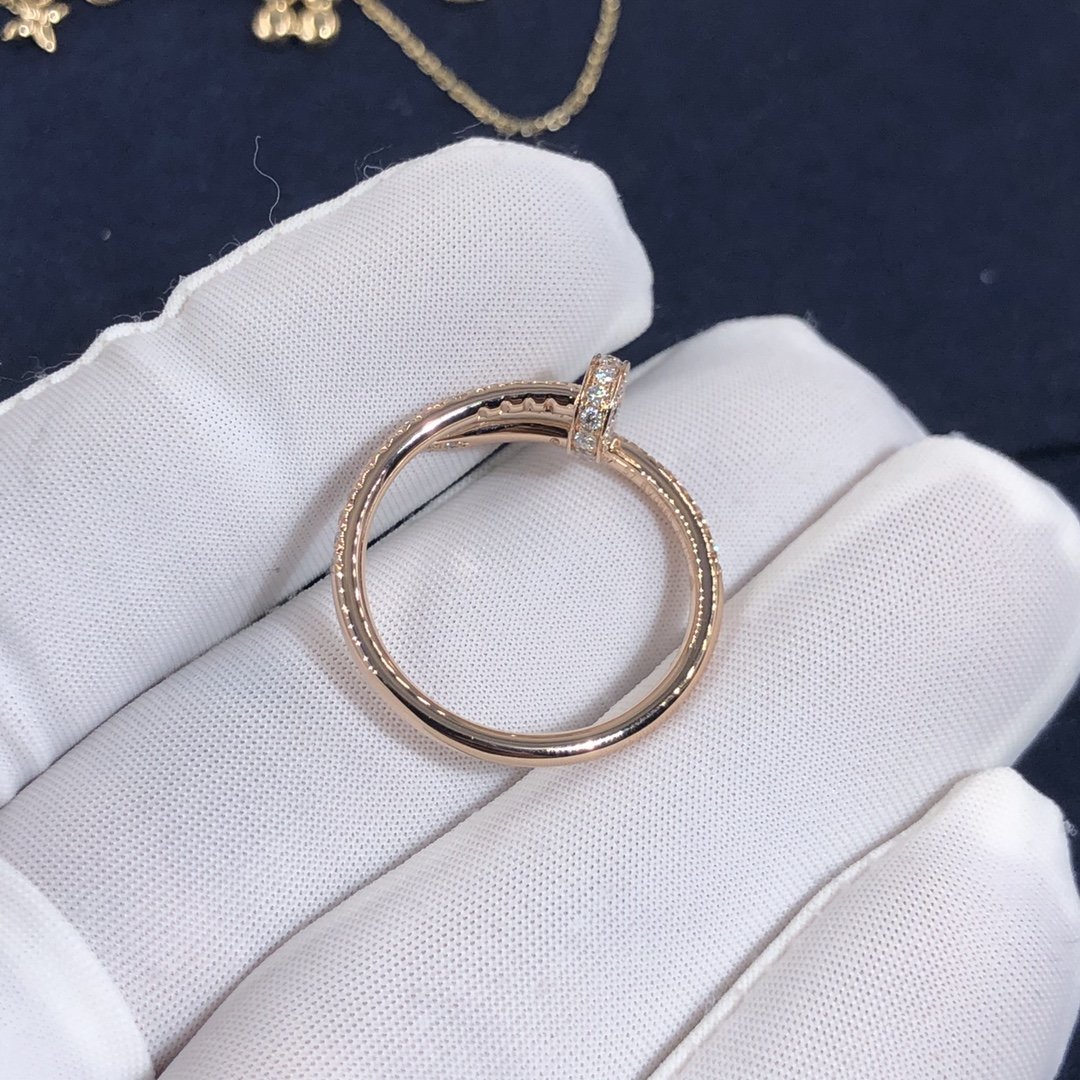 كارتييه مجرد مسمار حلقي مصنوع حسب الطلب من الذهب الوردي عيار 18 قيراطًا,مرصع 53 الماس قطع بريانت مجموع 0.40 قيراط. خاتم كارتييه juste un clou متوفر أيضًا من الذهب الأبيض عيار 18 قيراطًا والذهب الأصفر عيار 18 عند الطلب.