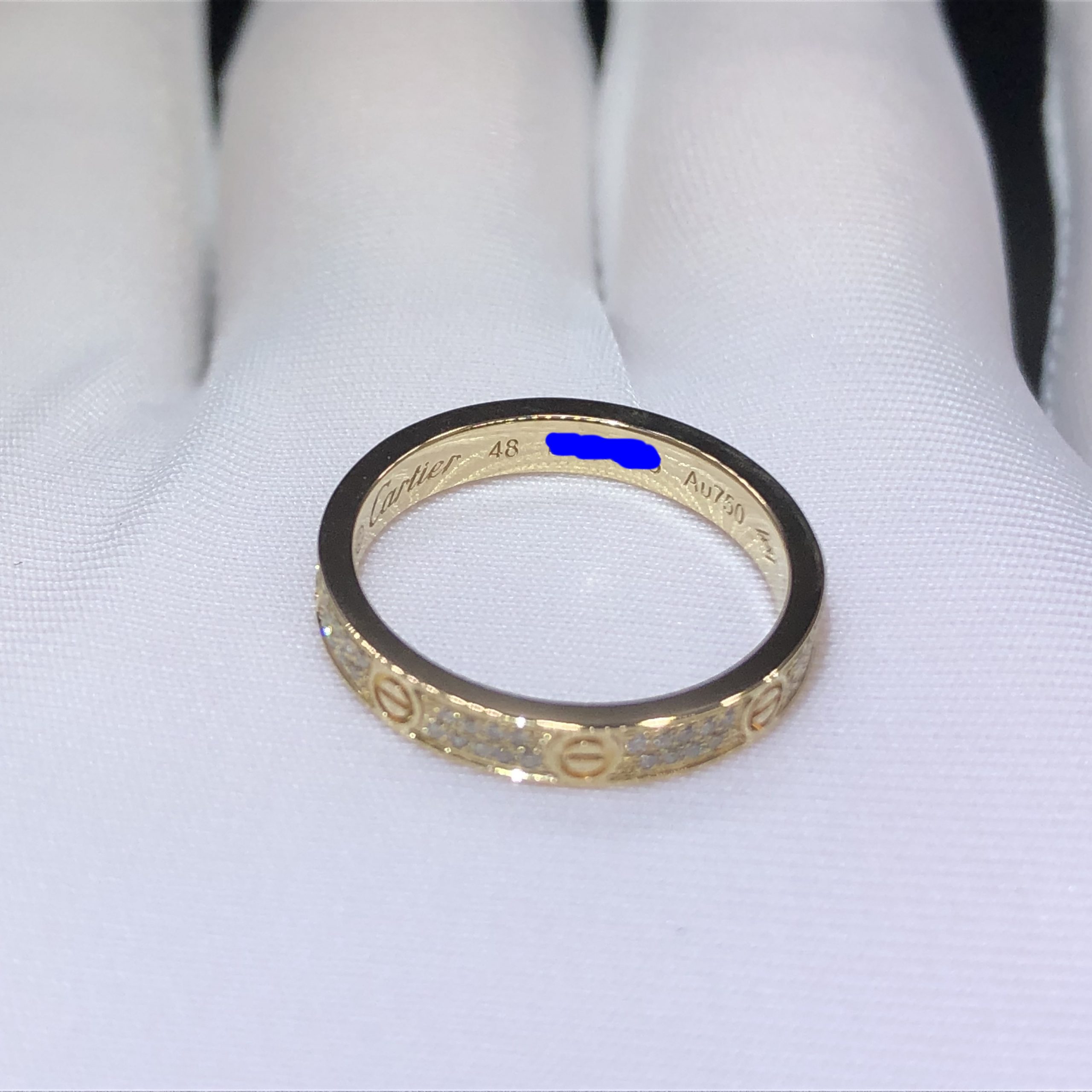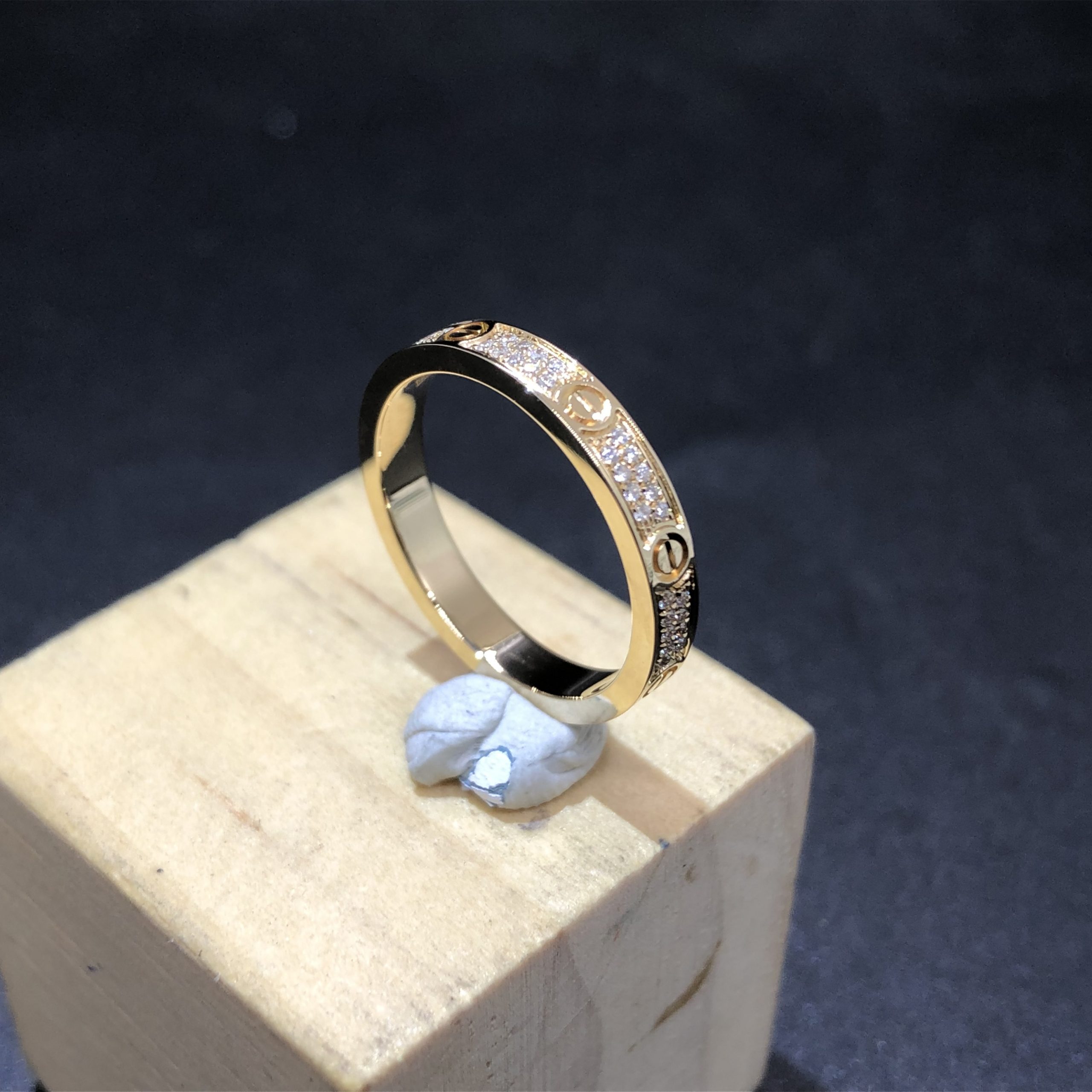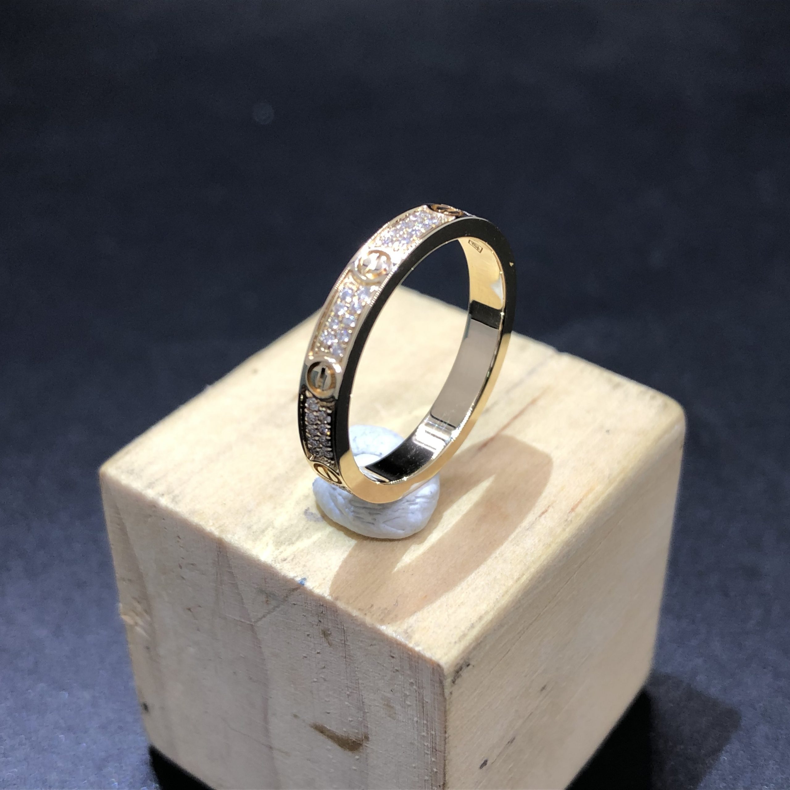 خاتم حب كارتير حسب الطلب من الذهب الأصفر عيار 18 قيراطًا, مرصع 72 الماس قطع بريانت مجموع 0.19 قيراط,نموذج صغير. عرض: 2.6مم.خاتم كارتييه Love Diamonds متوفر أيضًا بالذهب الأبيض عيار 18 قيراطًا والذهب الوردي عيار 18 عند الطلب.
