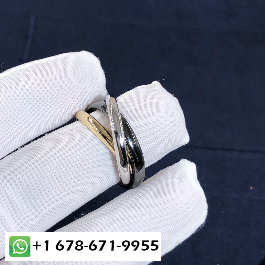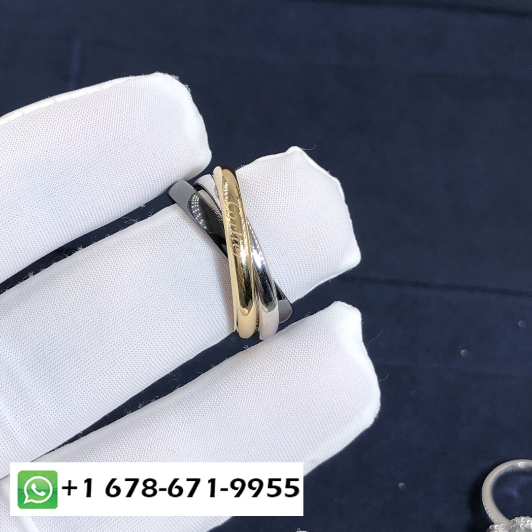 صممه لويس كارتييه في 1924, خاتم Trinity هو تصميم مميز لدار كارتييه. الأشرطة الثلاثة المتداخلة باللون الوردي, الذهب الأصفر والأبيض يرمز إلى الحب, الولاء والصداقة. الخاتم مستوحى من مجموعة Trinity الكاملة, شهادة خالدة على أروع ما في الحياة.