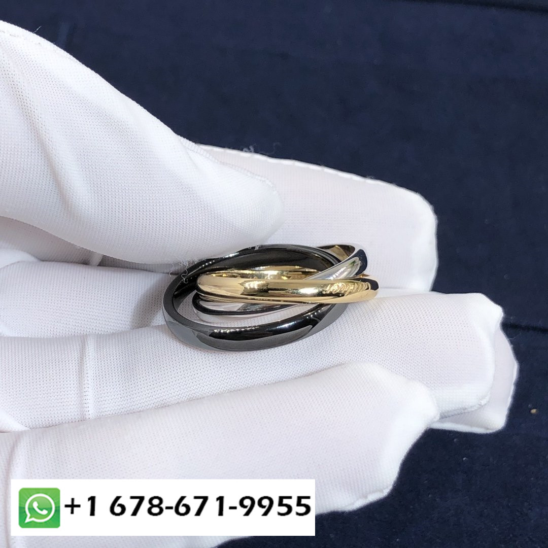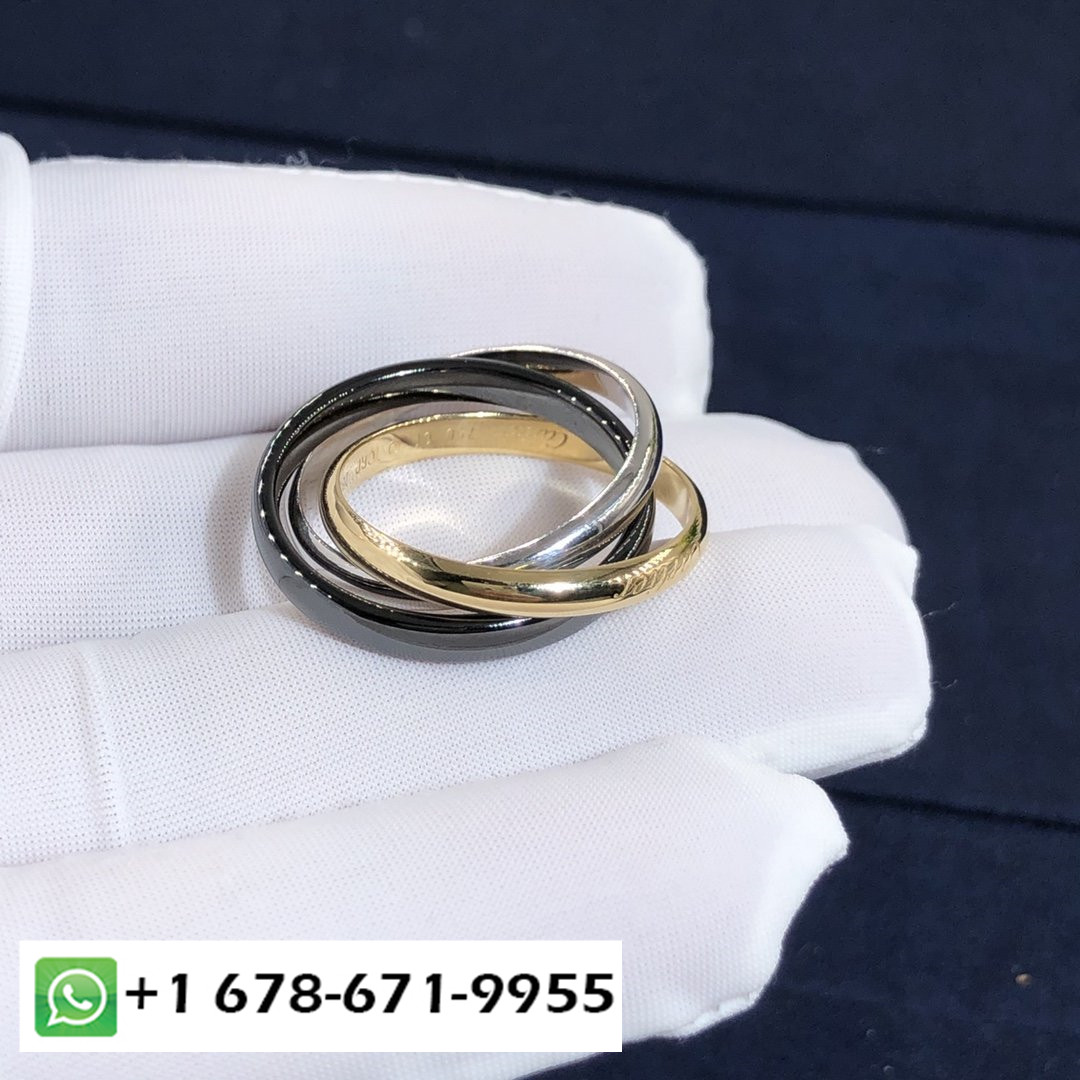 خاتم كارتييه ثالوث مخصص مصنوع من الذهب الأبيض عيار 18 قيراطًا,18ك الذهب الأصفر والسيراميك الأسود, موديل متوسط عرض الخاتم 3.5 مم.