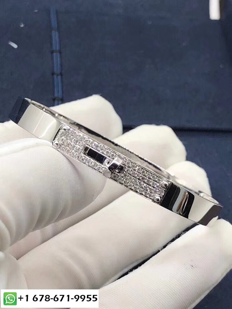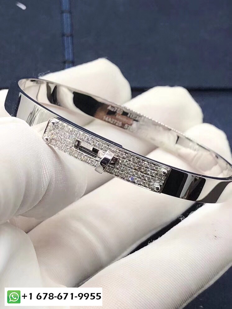 سوار هيرميس كيلي مصنوع خصيصًا من الذهب الأبيض عيار 18 قيراطًا والألماس,نموذج صغير. سوار كيلي متوفر أيضًا من الذهب الوردي عيار 18 قيراطًا والذهب الأصفر عيار 18 عند الطلب.