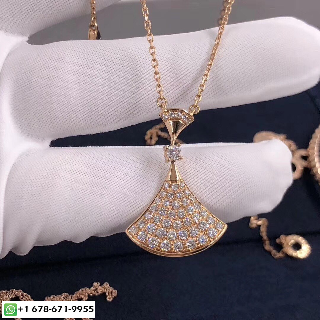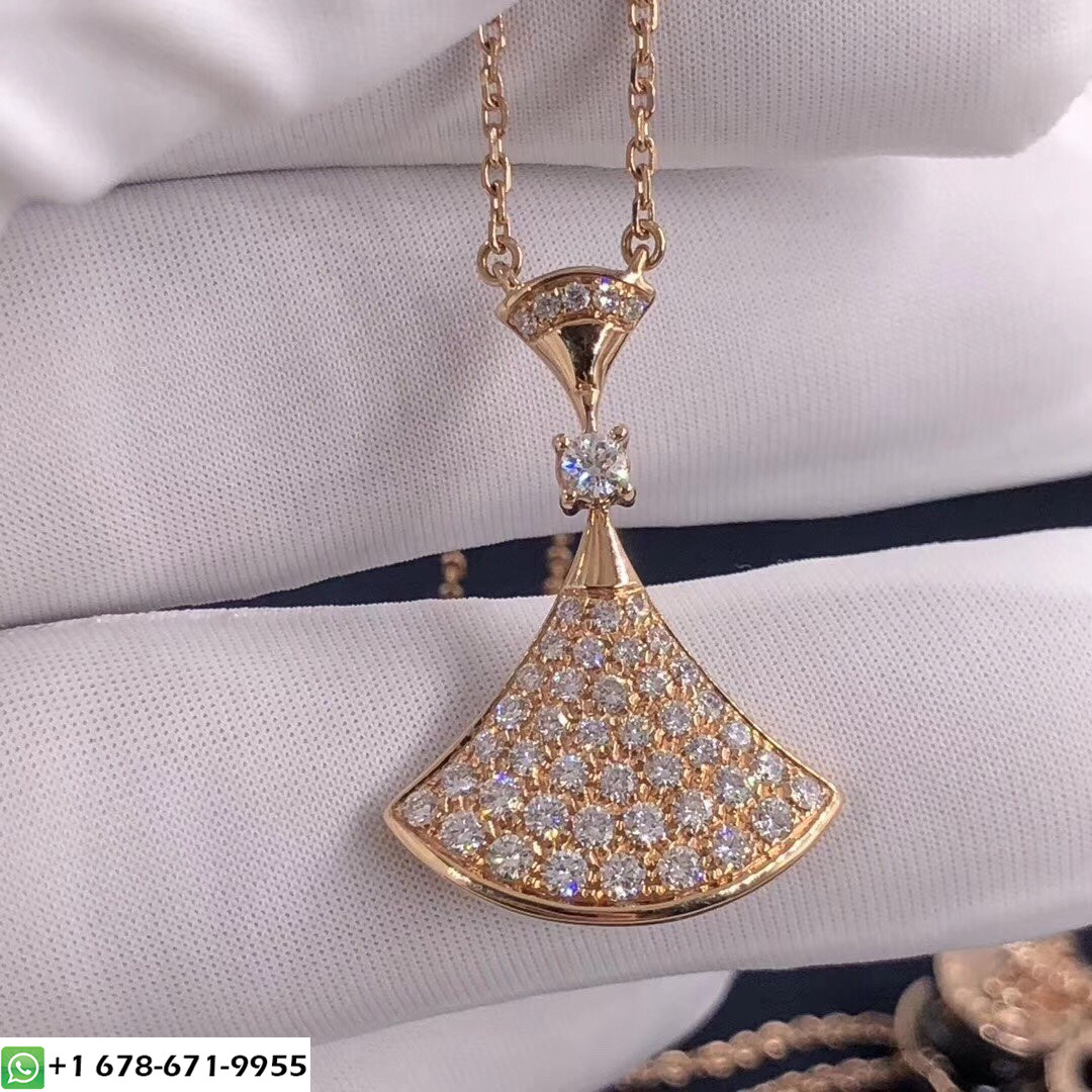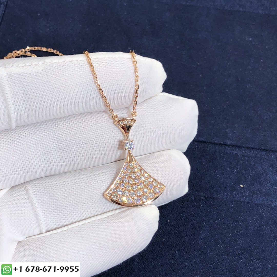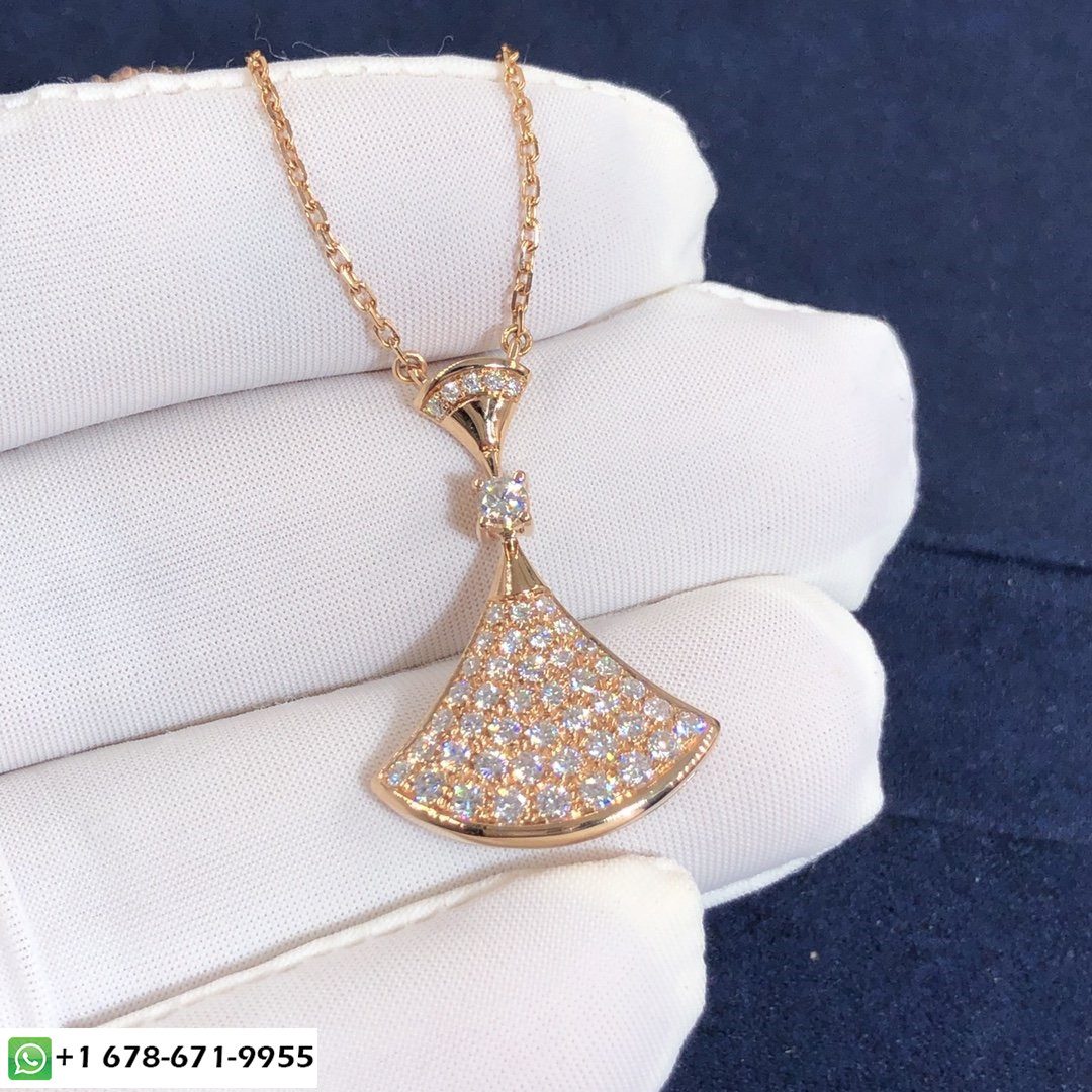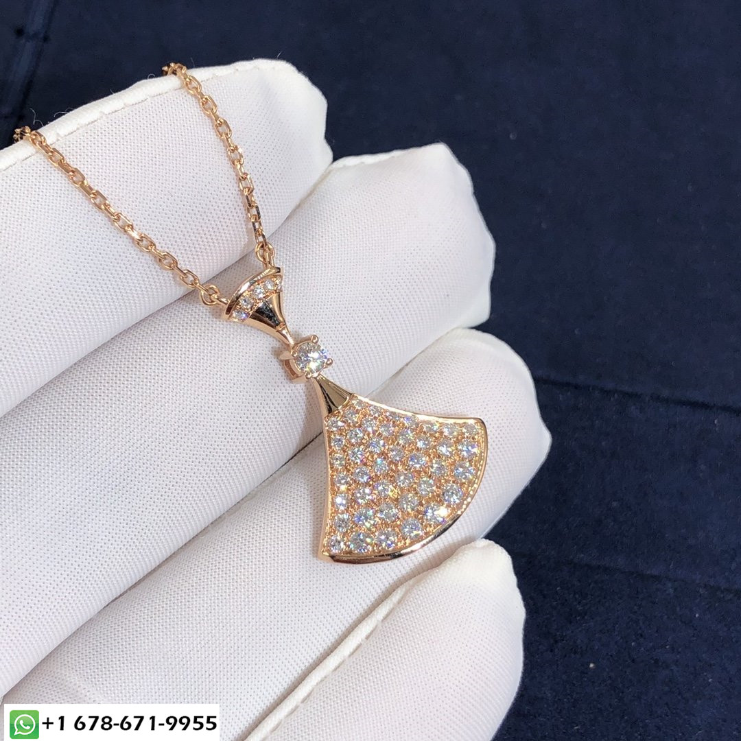 قلادة حلم ديفاز بولغري مصنوعة حسب الطلب في 18 قيراط من الذهب الوردي مرصع بألماس مرصوف وألماس مرصوف.