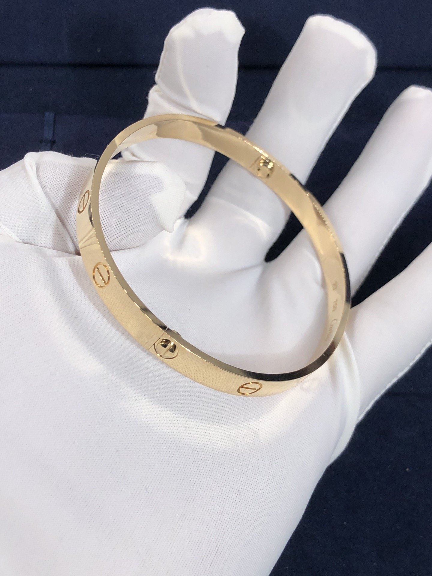 سوار كارتييه لوف مصنوع من الذهب الأصفر عيار 18 قيراطًا(وزن: 36.5ز – 39.4ز). تعال مع مفك براغي. سوار Cartier Love هو متوفر أيضًا بالذهب الوردي عيار 18 قيراطًا والذهب الأبيض عيار 18 عند الطلب.