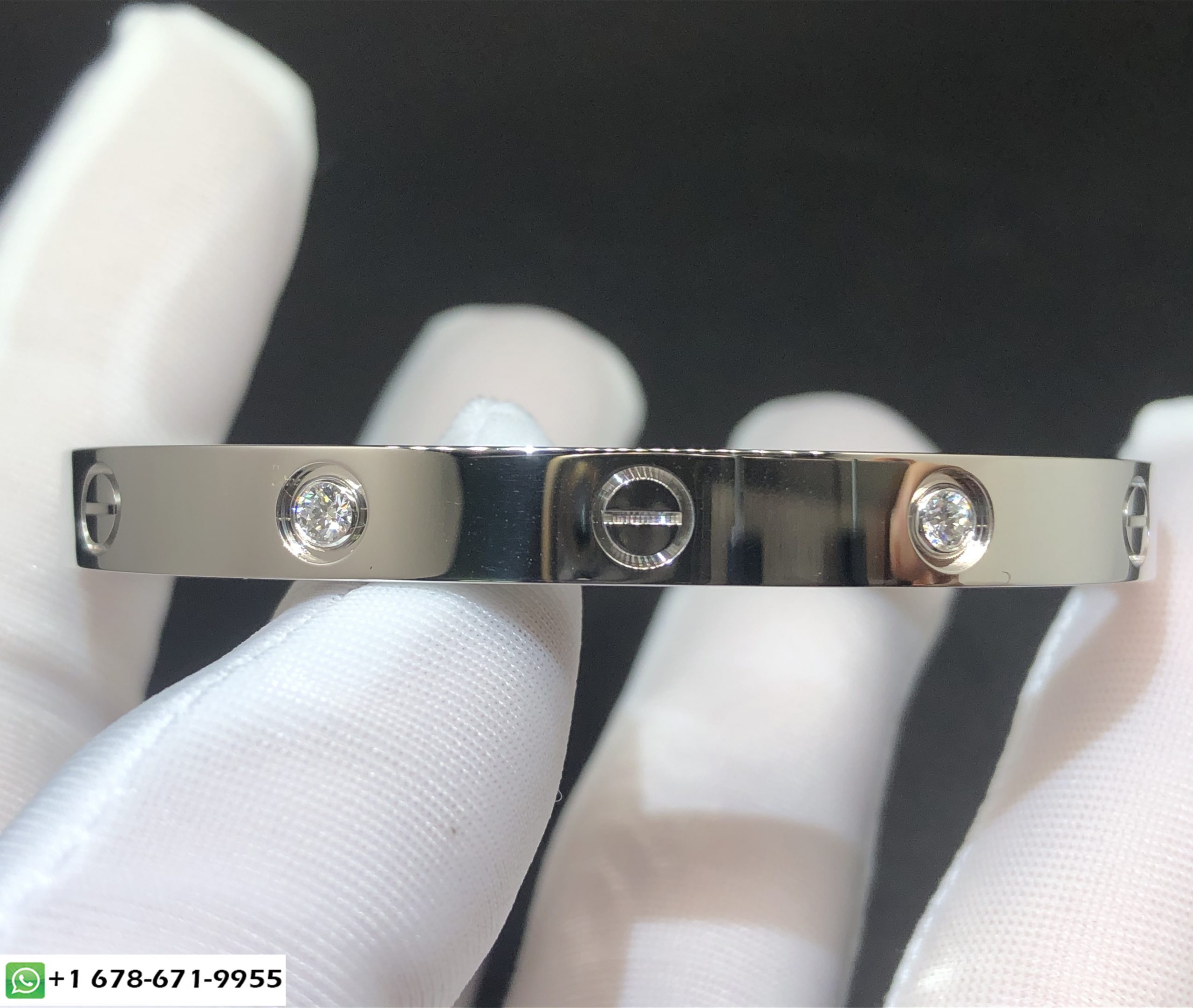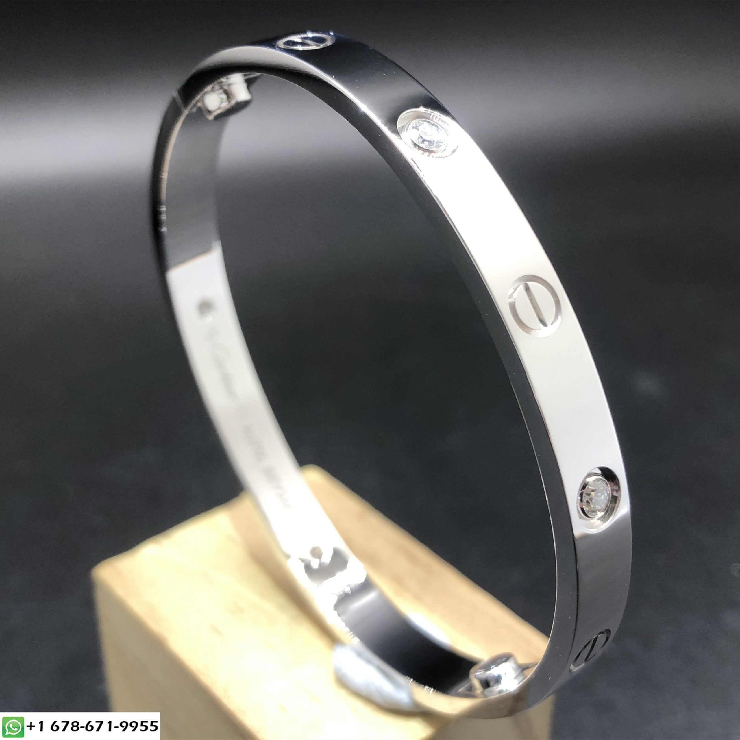 سوار الحب كارتييه مصنوع خصيصًا من الذهب الأبيض عيار 18 قيراطًا 4 الماس وزن الذهب 31 ~ 39 جرام(يصل إلى حجم سوارك),العرض 6.1 ملم,وزن الماس F VVS1 0.42 ط م,تباع بمفك البراغي سوار الحب كارتييه مخصص يتوفر أيضًا بالذهب الأصفر عيار 18 قيراطًا والذهب الوردي عيار 18 عند الطلب.