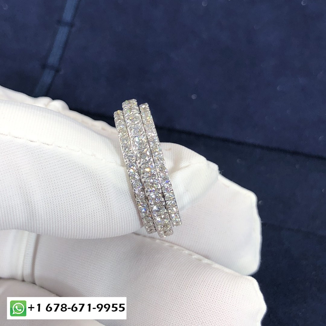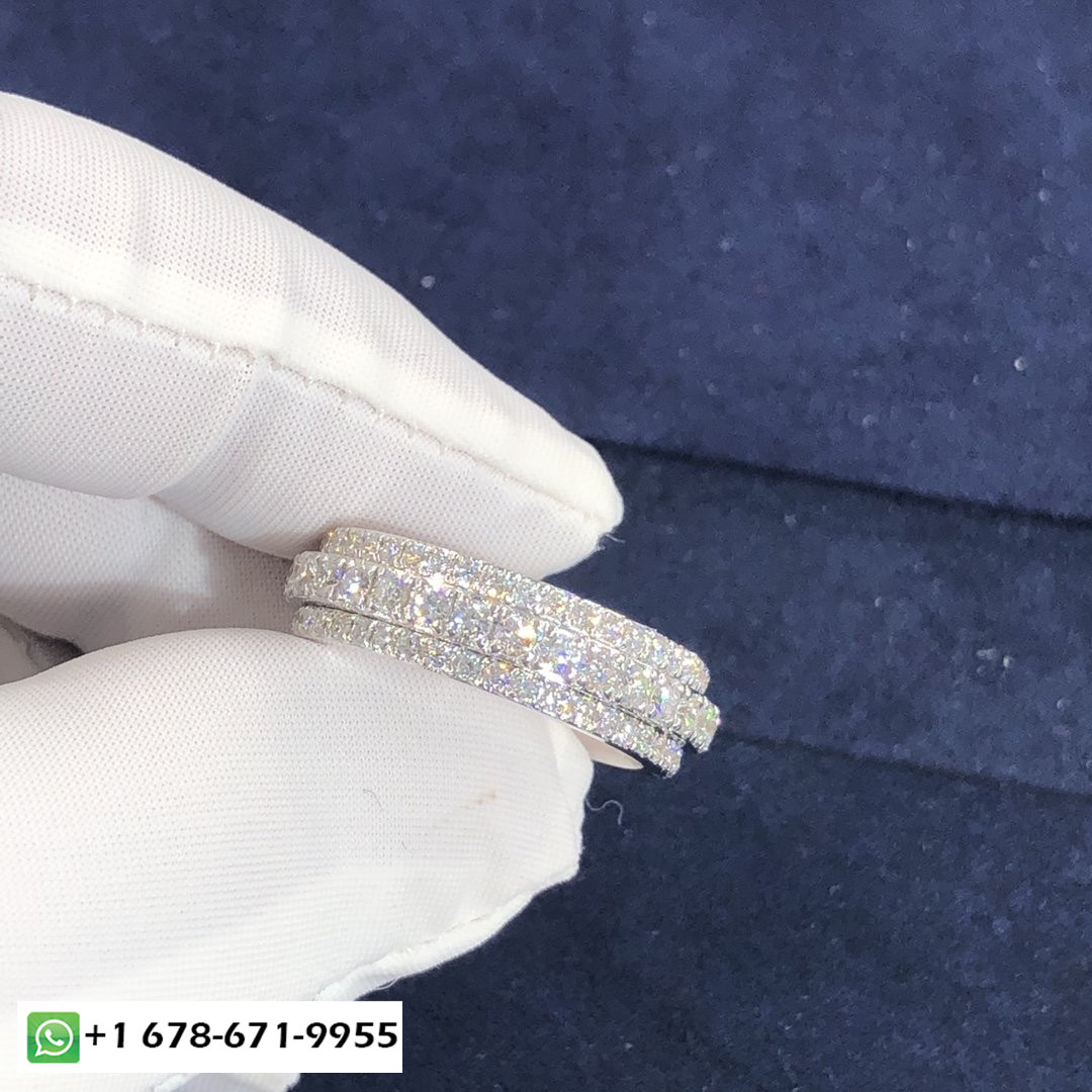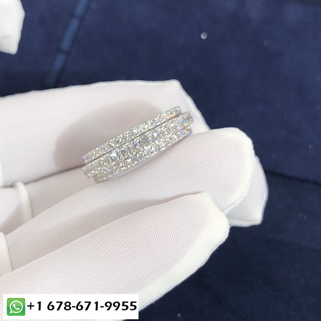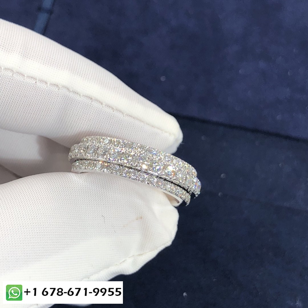 فرقة بوسيشن خاتم زواج بياجيه مصنوع حسب الطلب من الذهب الأبيض عيار 18 قيراط 115 الماس قطع بريانت مجموع 2 قيراط وزن الذهب على أساس الحجم 7:8.7 ز- الأحجام المتوفرة (قياس):4 ½ – 8 ¼ عرض الفرقة:6.1 مم.شريطين لخاتم زواج واحد. شريطين, لا ينفصل, تدور حول بعضها البعض. مكثفة وواعدة مثل الحياة التي نقضيها معًا, هذا الخاتم المرصع بالماس المرصع بشكل مربع يوصل رسالة تليق بالمشاعر التي يستلهم منها. خاتم الزواج بوسيشن, لها, إلى الأبد.