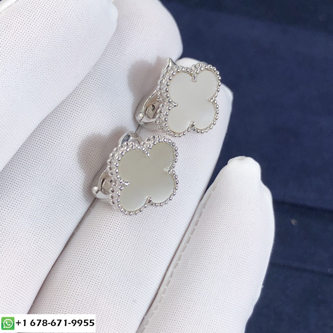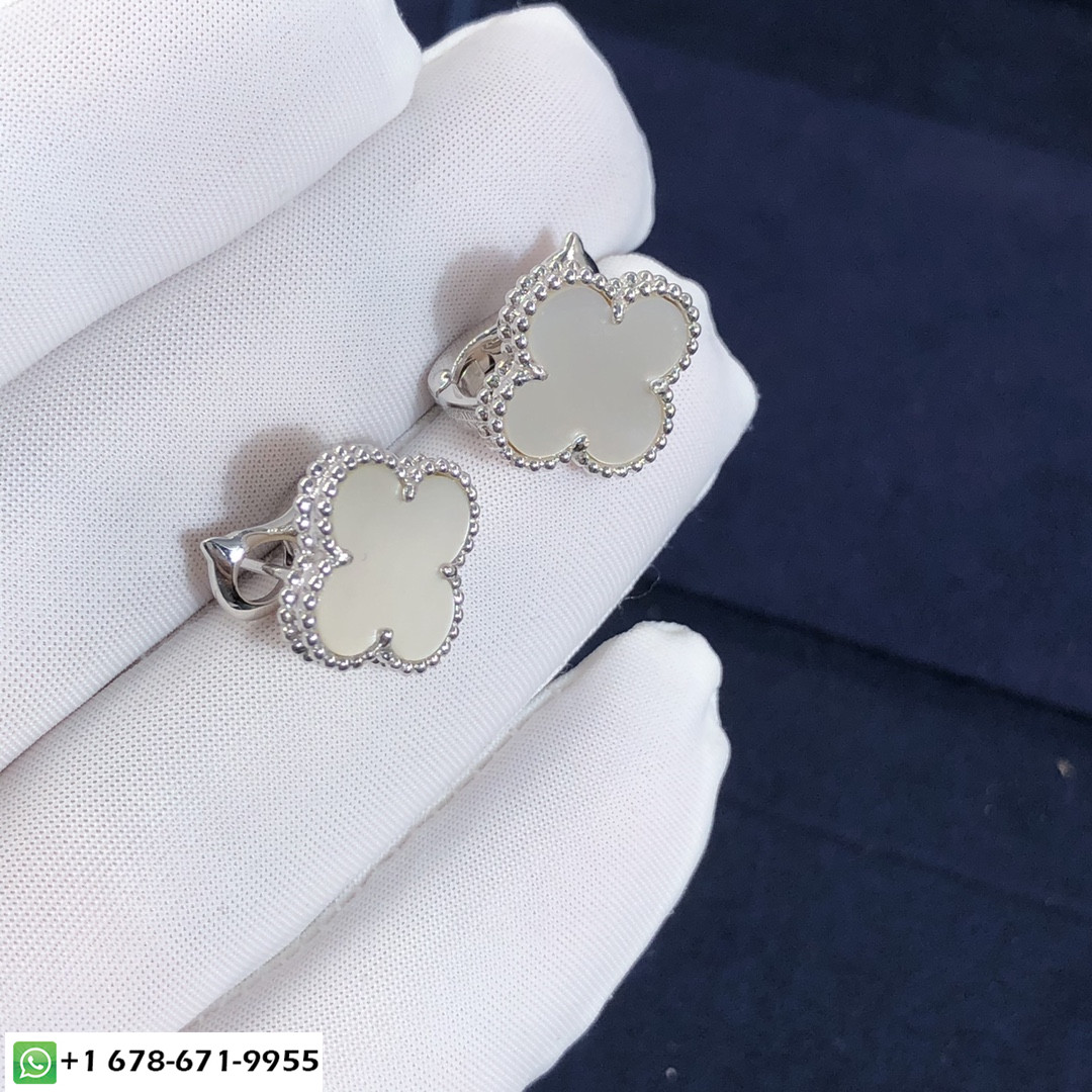 فان كليف حسب الطلب & أربيلز وسادات أذن باللون الأحمر من الذهب الأبيض عيار 18 قيراط واللؤلؤ الأبيض. وزن الذهب 3.5 جرام.تتوفر وسادات الأذن VCA هذه من الذهب الوردي عيار 18 قيراطًا والذهب الأصفر عيار 18 عند الطلب. & منذ ذلك الحين ، ظهرت Arpels بزخارف محظوظة مبهجة في شكل مصغر 2007. خفيف وحساس, إنها طريقة سرية لجلب السعادة لكل يوم يمر.