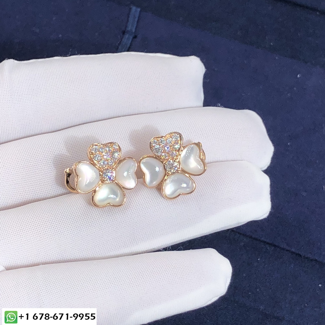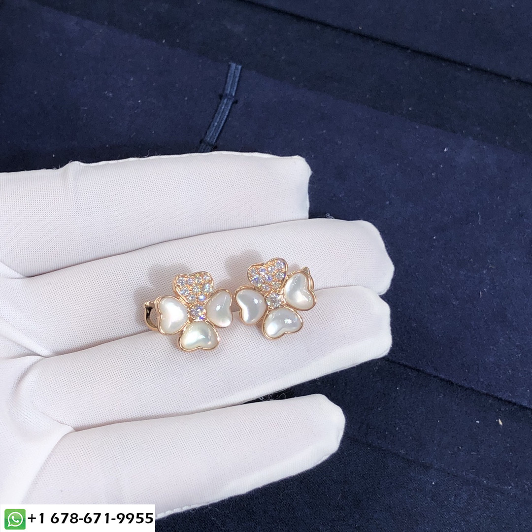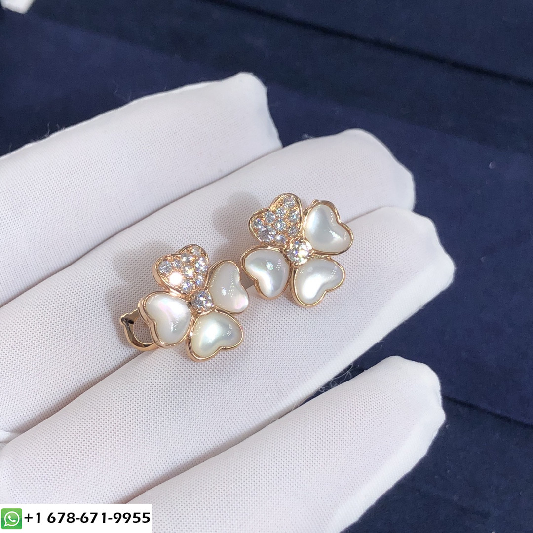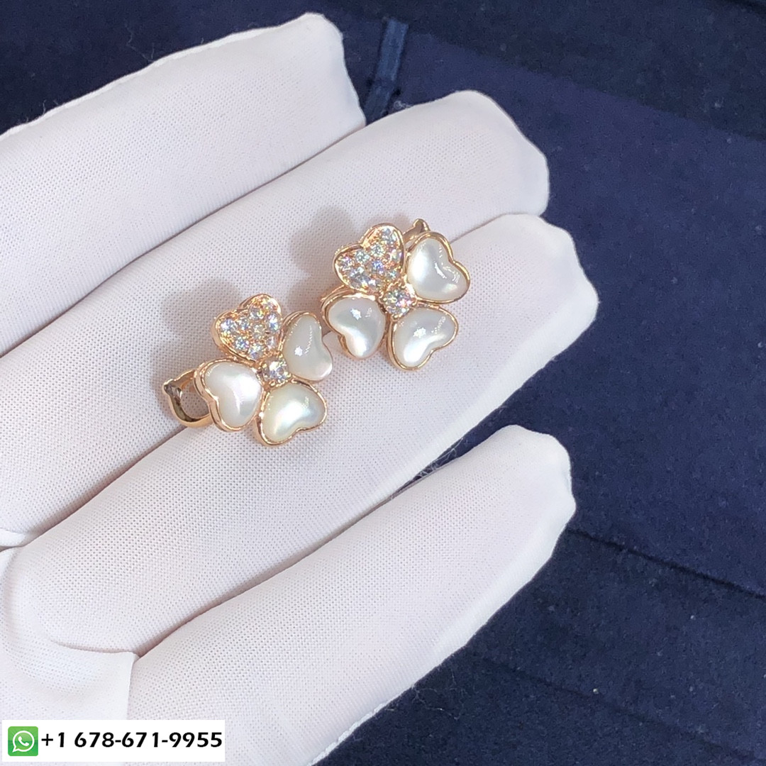 أقراط VCA Cosmos المصنوعة حسب الطلب من الذهب الوردي عيار 18 قيراطًا,6 عرق اللؤلؤ الأبيض مع 20 الماس المستدير المجموع 0.79 ط م,نموذج صغير فان كليف & أقراط أربلز متوفرة أيضًا بالذهب الأصفر عيار 18 قيراطًا والذهب الأبيض عيار 18 عند الطلب.