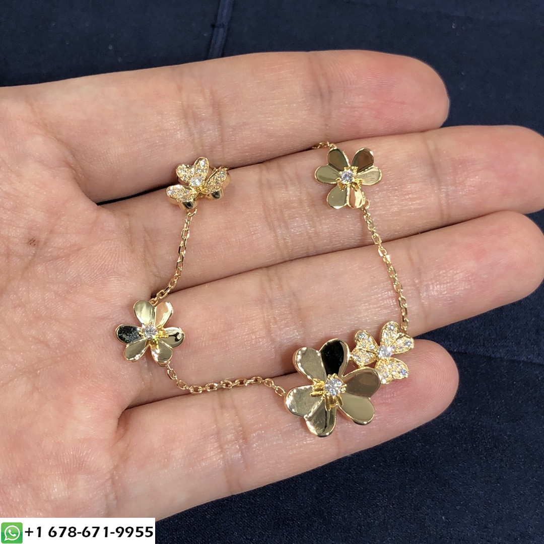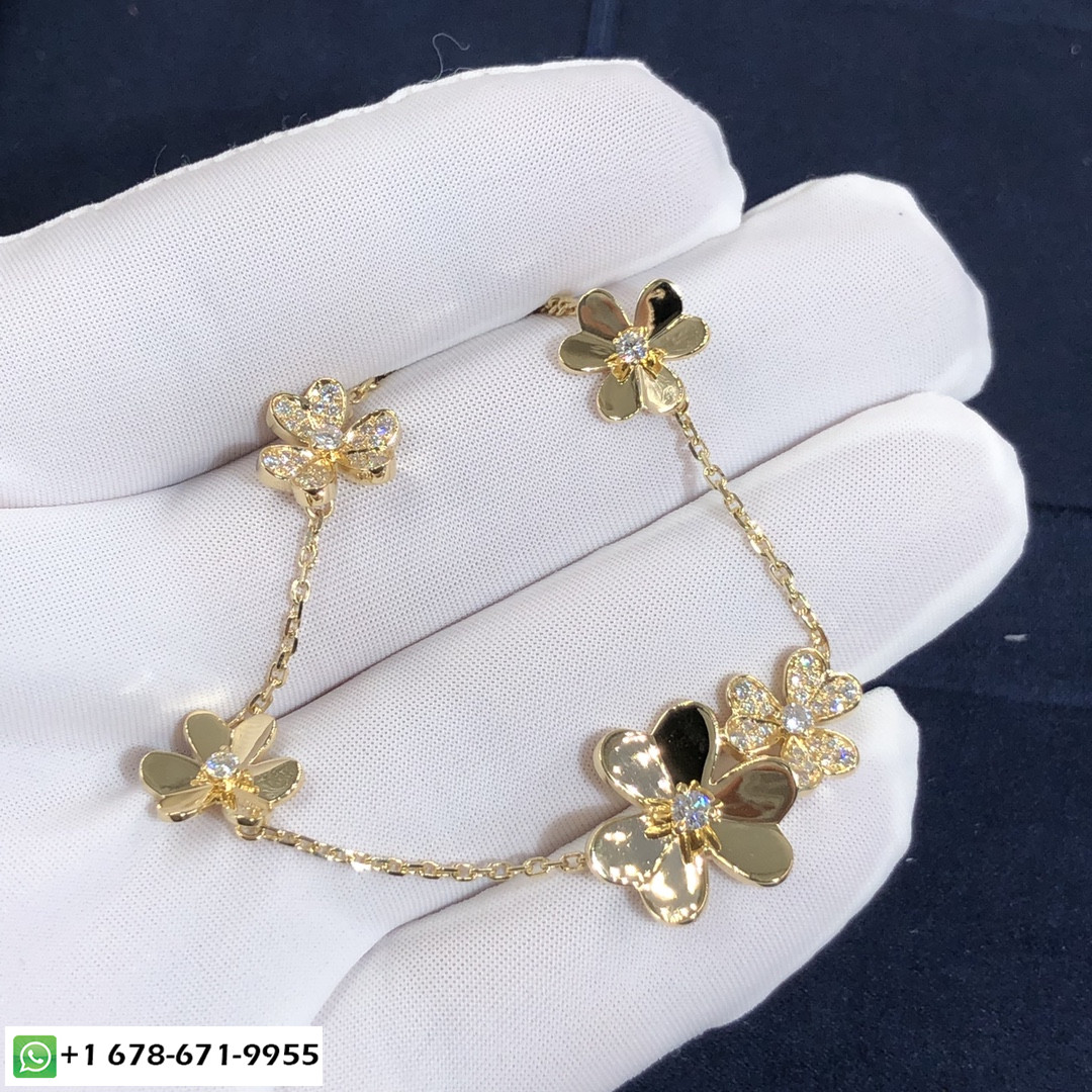 مصنوع بطريقة مخصصة خل التفاح تافه 5 سوار الزهور من الذهب الأصفر عيار 18 قيراطًا مع 53 الماس المستدير المجموع 0.62 قيراط سوار حجم المعصم: 17 سم.