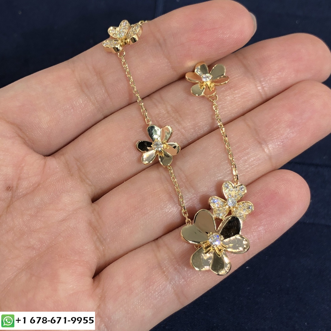 مثل الكثير من الزهور تتراقص في النسيم, إبداعات Frivole® من فان كليف & تبرز Arpels بجمالياتها الرسومية والمتجددة الهواء. يضفي الذهب المصقول بالمرايا إشراقًا فريدًا على البتلات على شكل قلب.