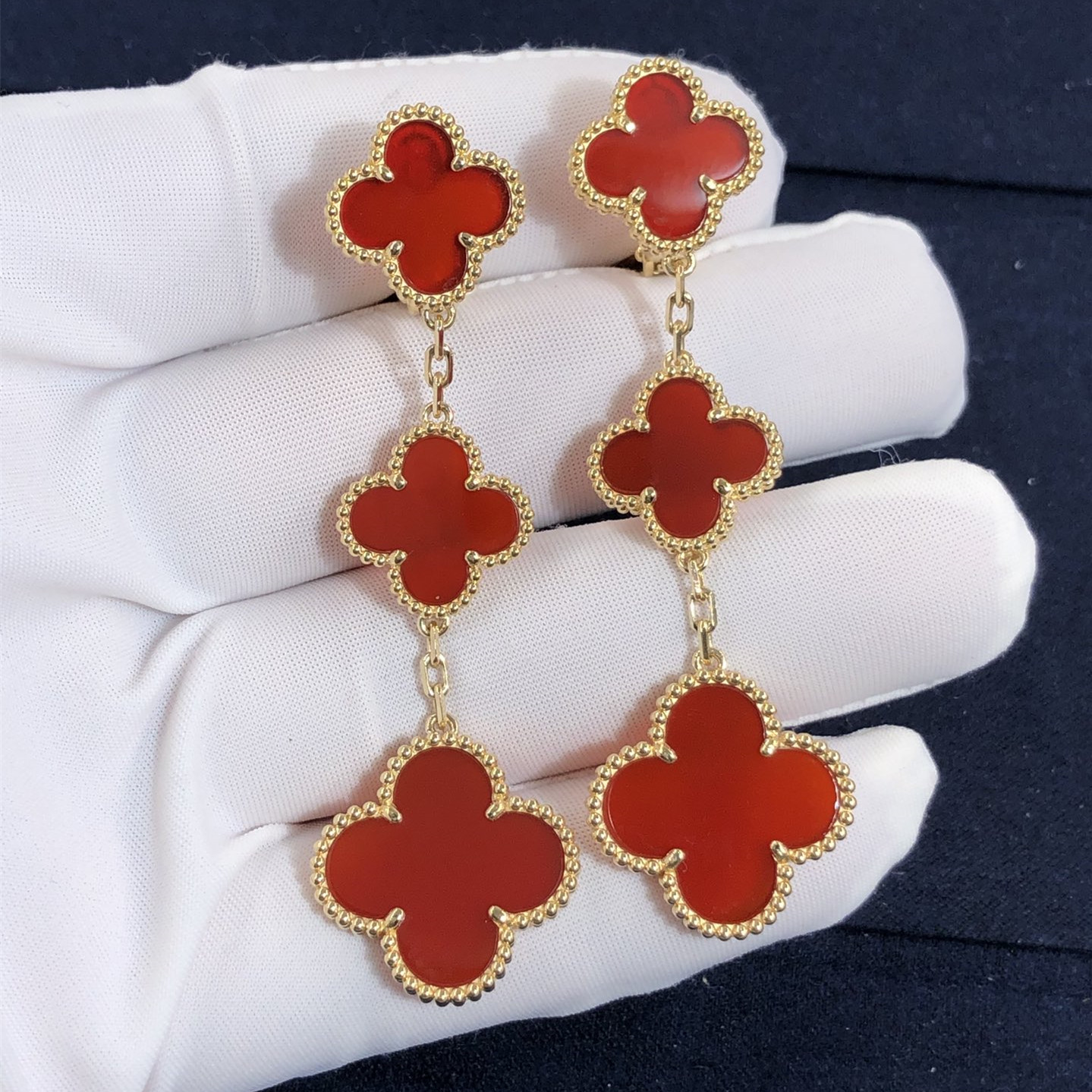 صنع العرف VCA ماجيك قصر الحمراء 3 أقراط بزخارف من الذهب الوردي عيار 18 قيراطاً فان كليف & أقراط أربلز تتوفر أيضًا من الذهب الأصفر عيار 18 قيراط والذهب الأبيض عيار 18 قيراطًا عند الطلب.,عين النمر,الجزع,العقيق,أم اللؤلؤ,إلخ.