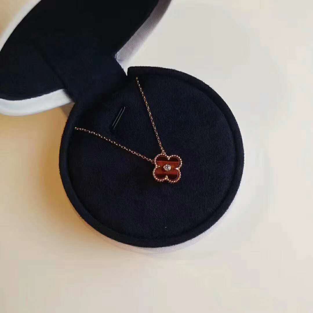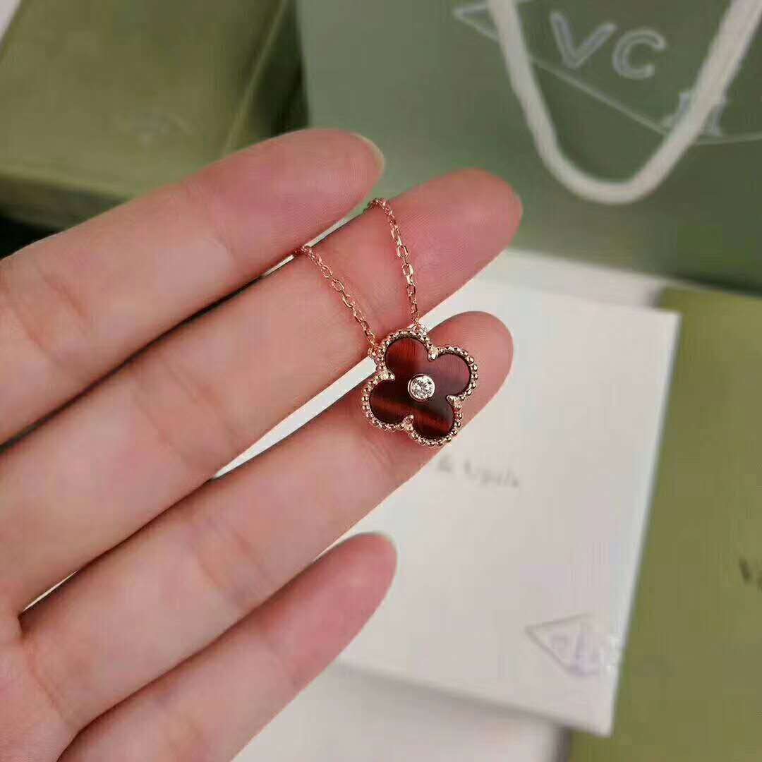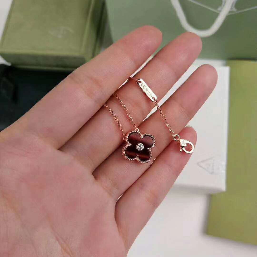 من الكليف & عقد Arpels Vintage Alhambra مصنوع من سلسلة خرز من الذهب الوردي عيار 18 قيراطًا(الطول 42 سم) مع الماس المركزي على القلادة,يبلغ إجمالي حجمه 6.6 جرام ، وحجم الزخرفة 15 مم × 15 مم.