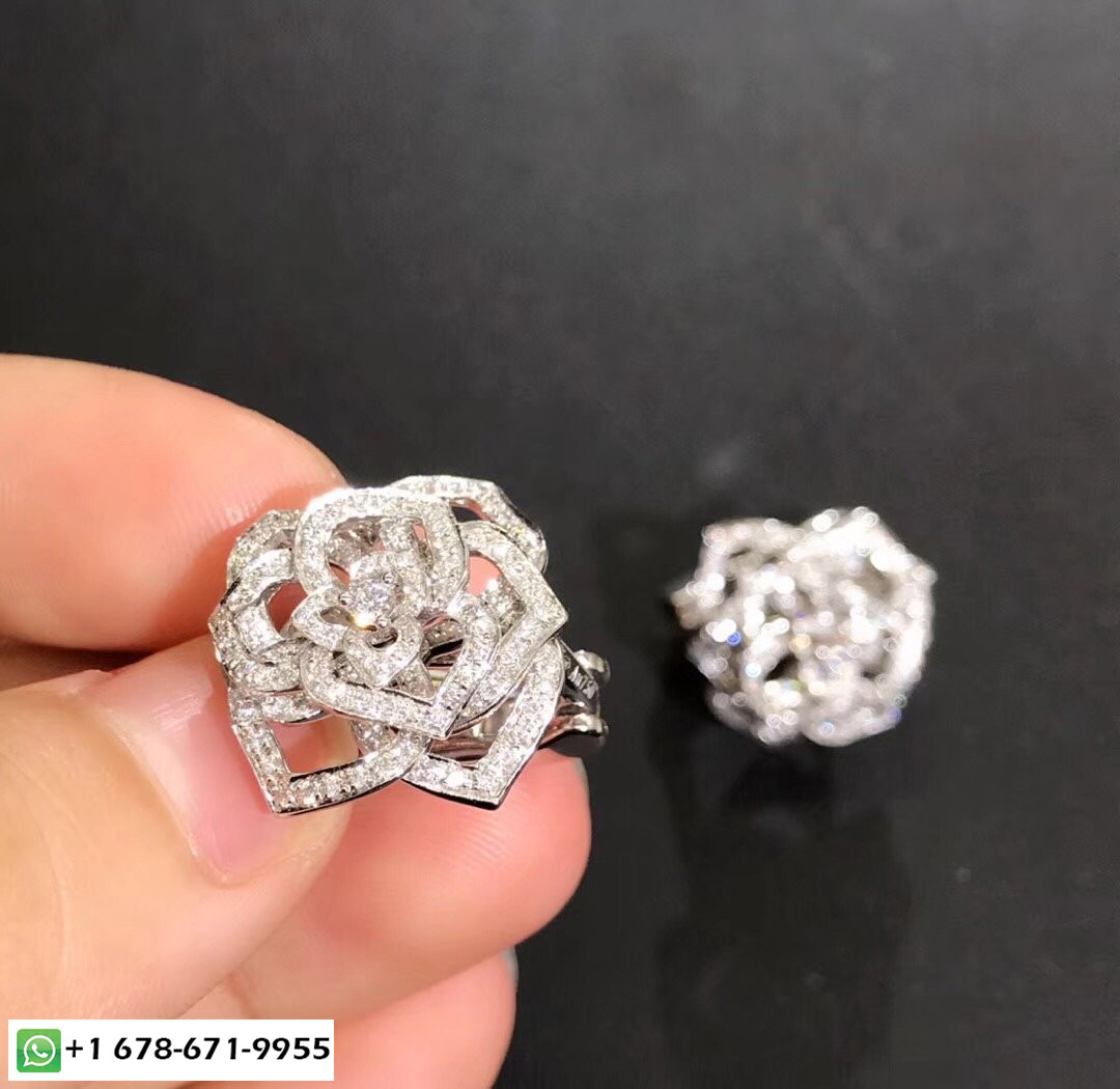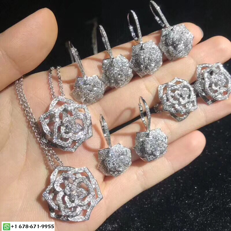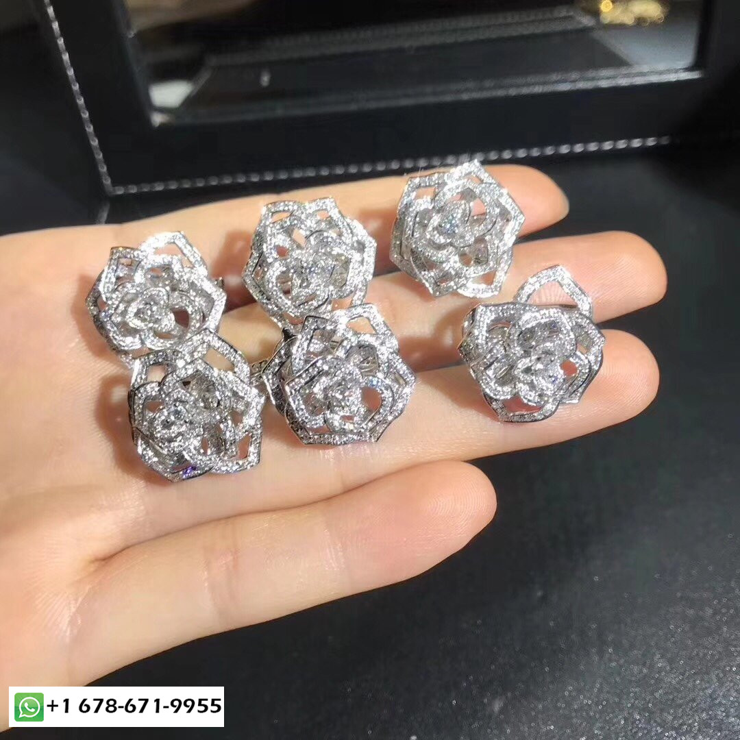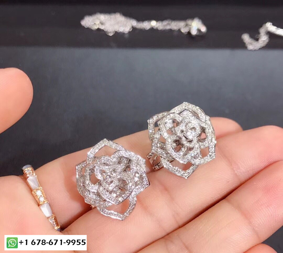 • أقراط وردة بياجيه مصنوعة خصيصًا من الذهب الأبيض عيار 18 قيراطًا 282 قطع الماس الرائعة