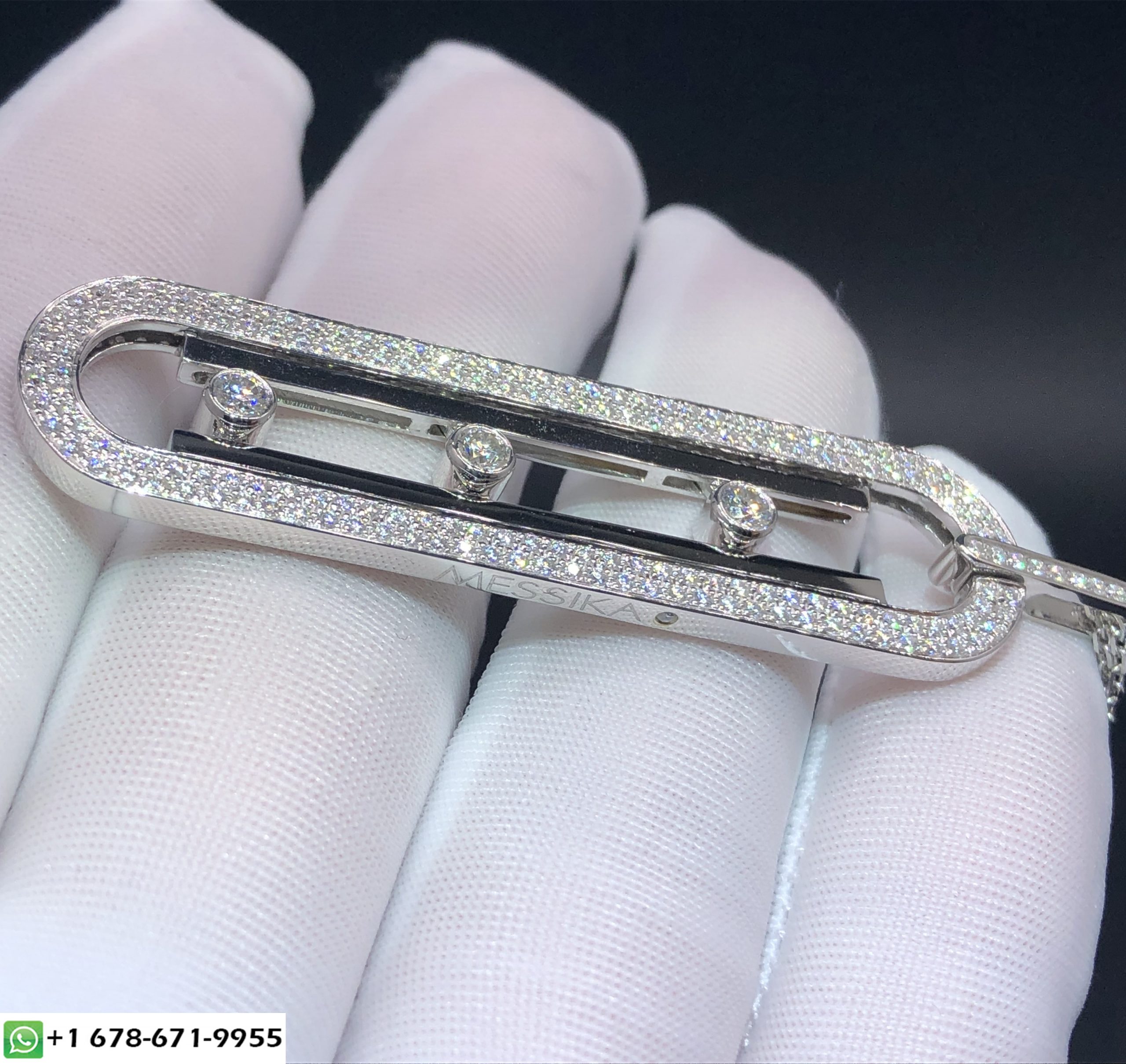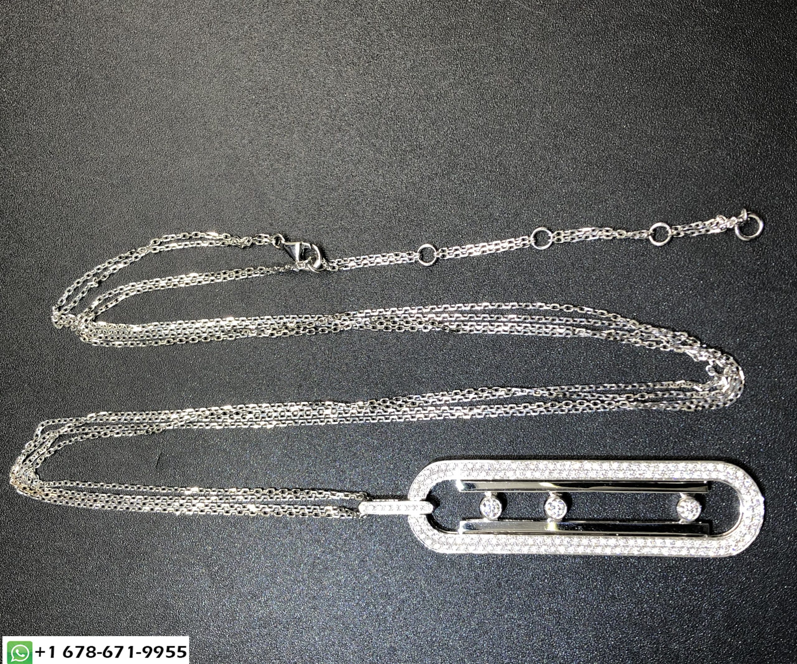 عقد ميسيكا موف 10 للنساء مخصص مصنوع من الذهب الأبيض عيار 18 قيراطًا والألماس,وزن الذهب 19 غرام,مجموع الماس 1.1 طول النمط: 4 مم عرض النمط: 9 ملم ، قلادة الألماس Move 10th متوفرة أيضًا بالذهب الوردي, ذهب أصفر وذهب أسود عند الطلب.