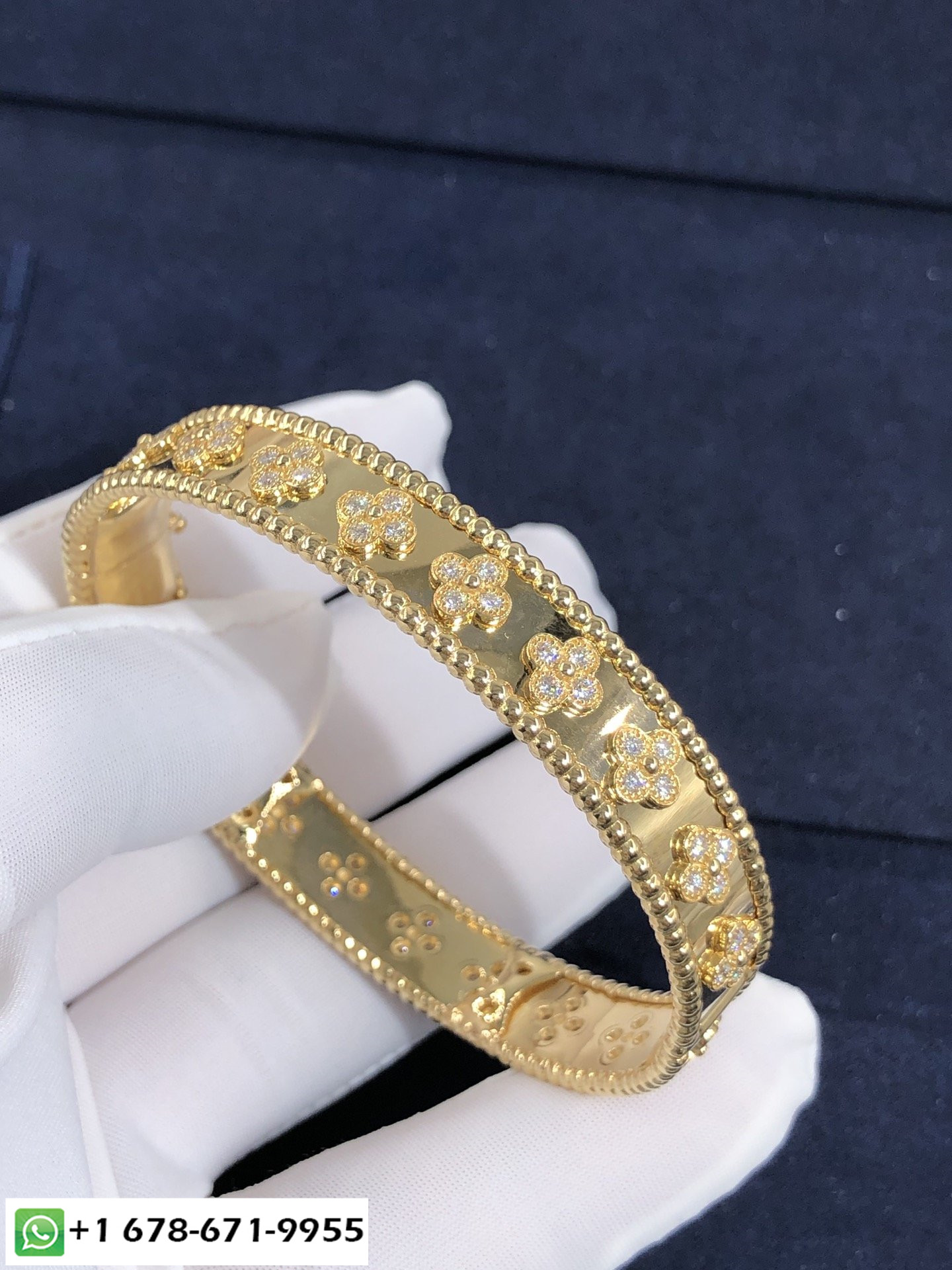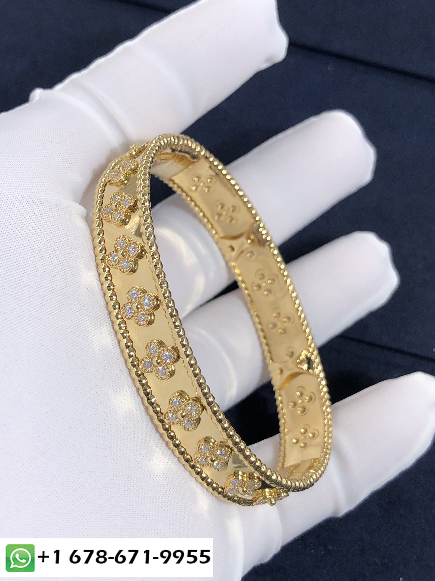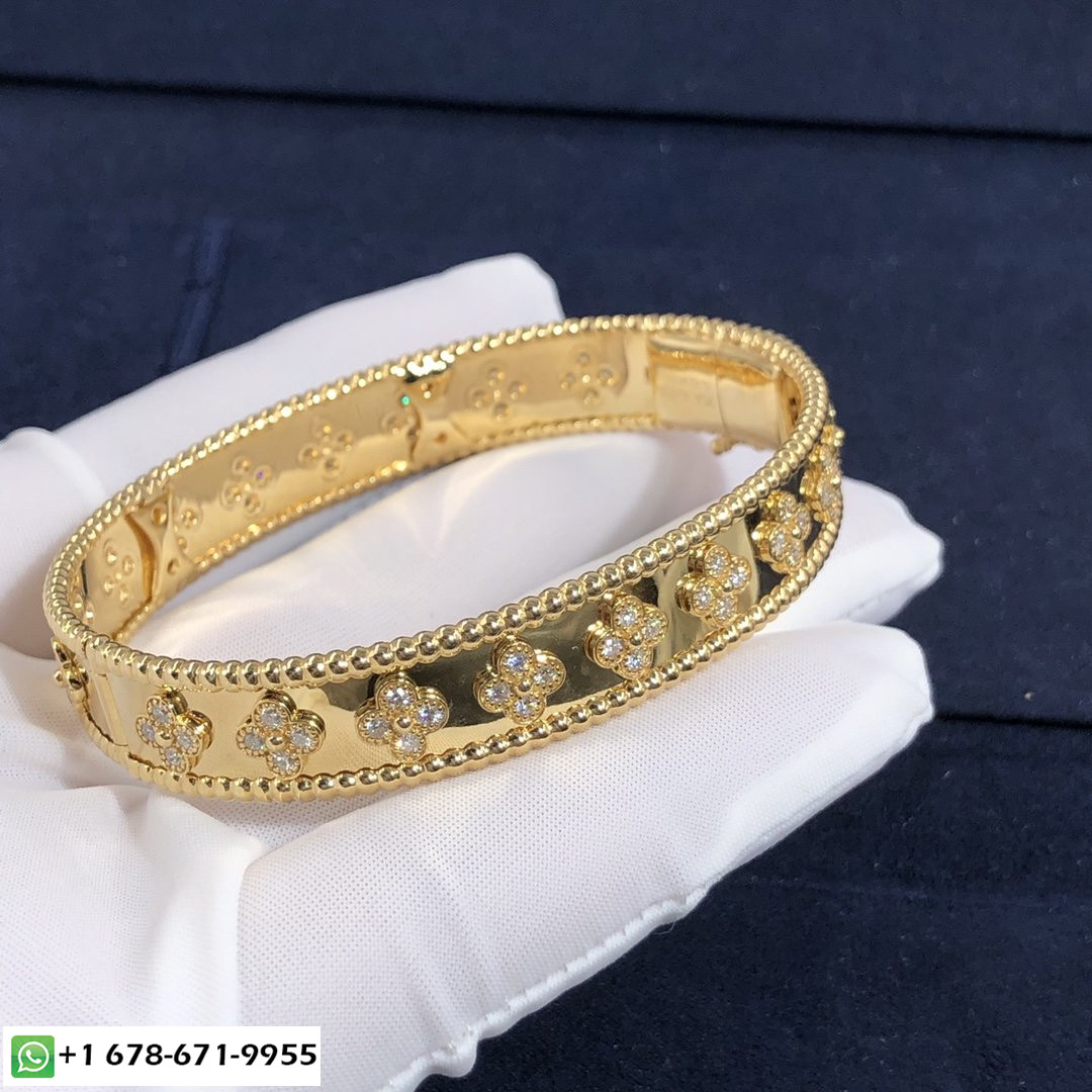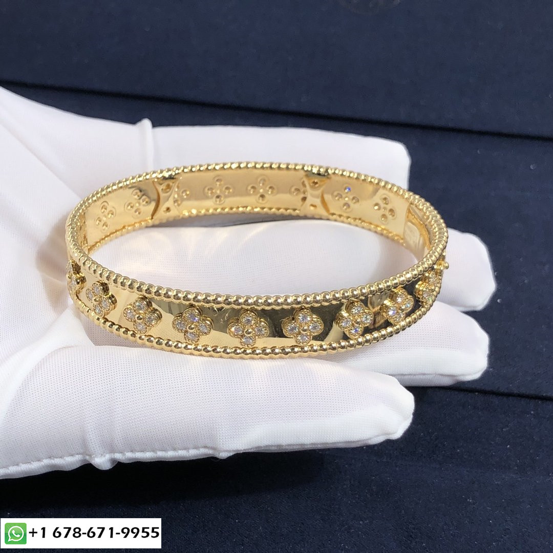 • فان سيف & سوار Arpels Perlee Clovers مخصص من الذهب الأصفر عيار 18 قيراط والألماس