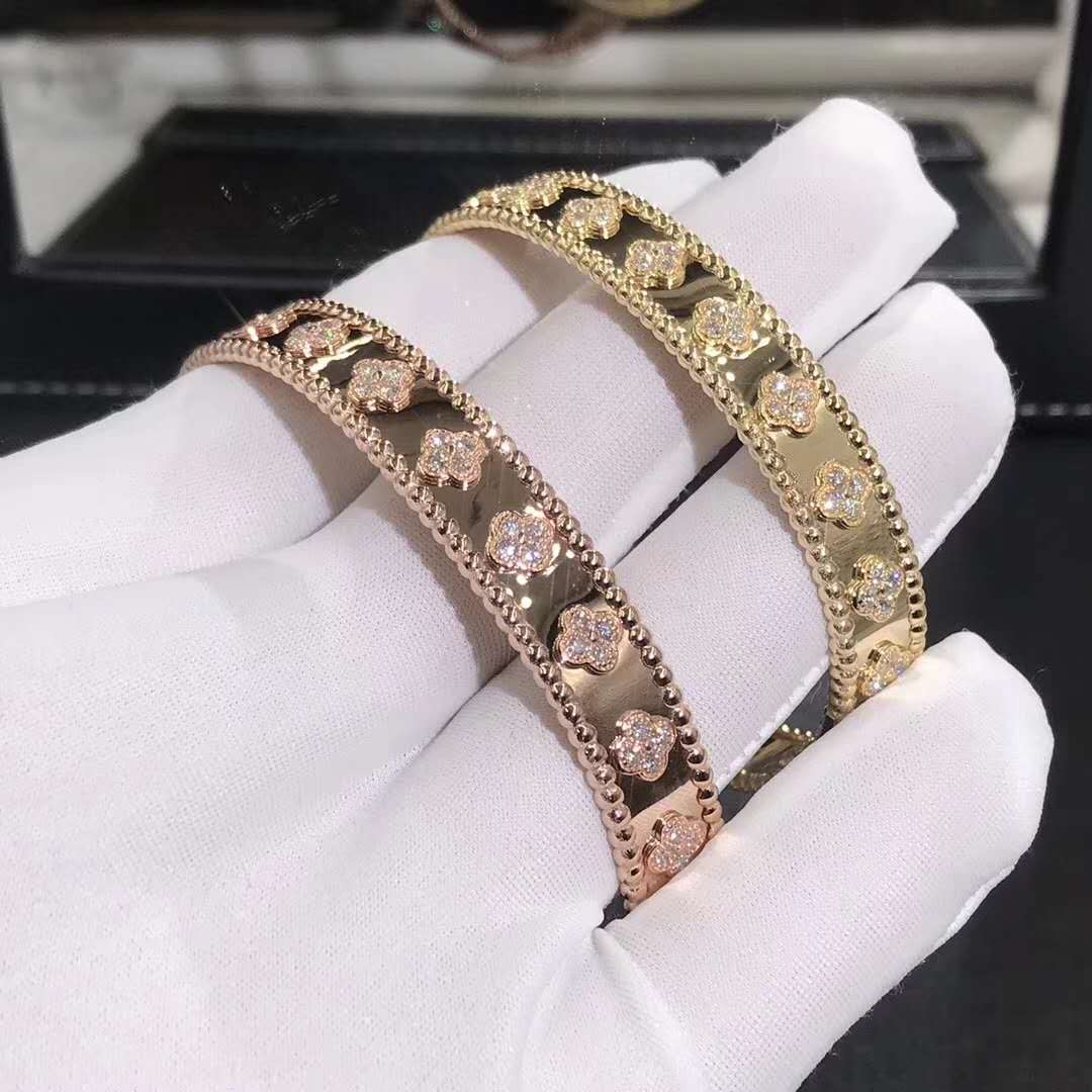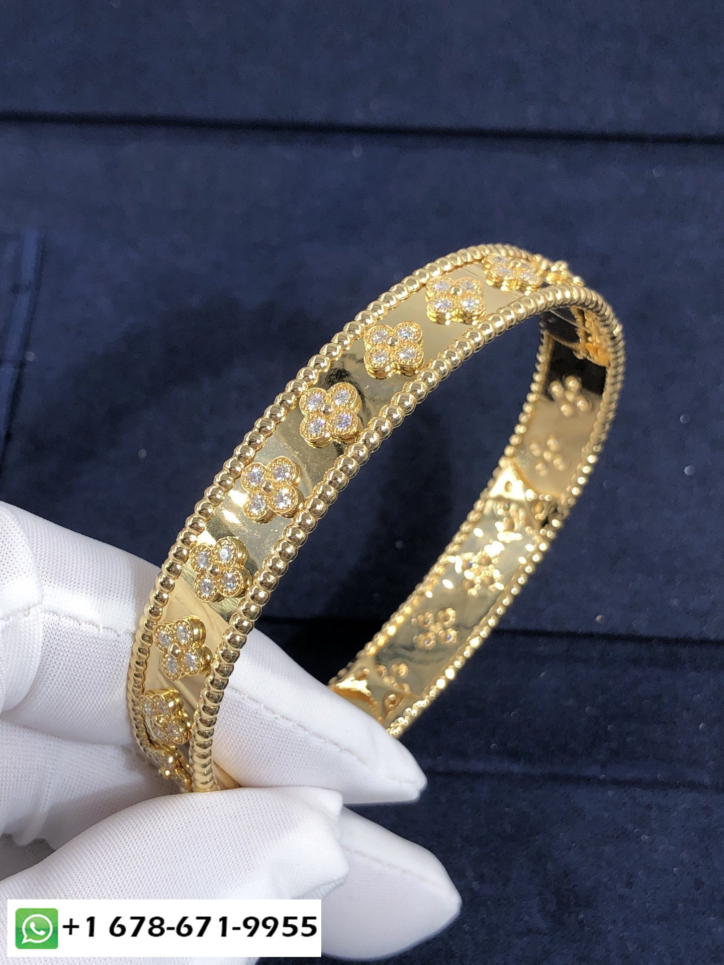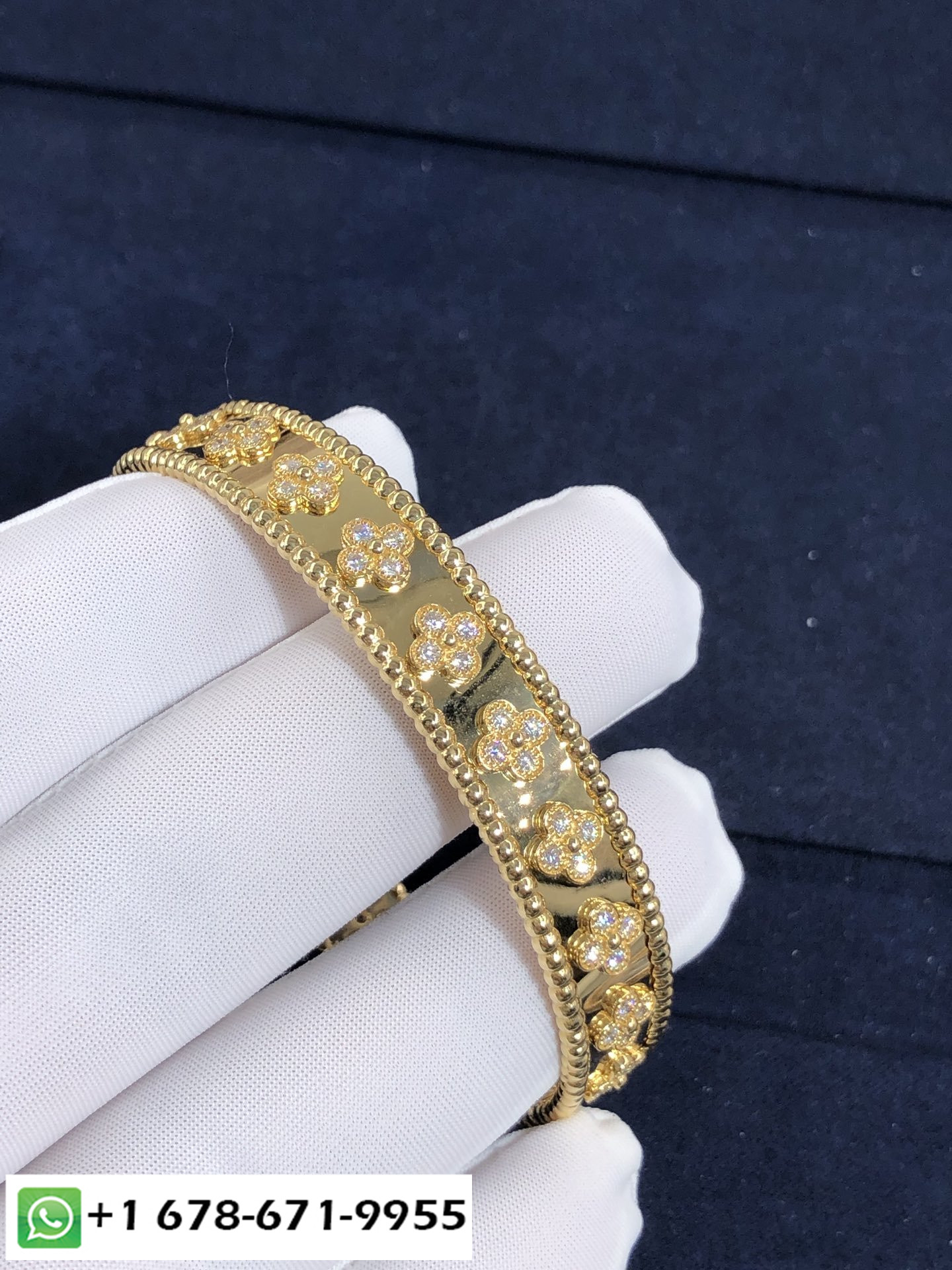 • فان سيف & سوار Arpels Perlee Clovers مخصص من الذهب الأصفر عيار 18 قيراط والألماس