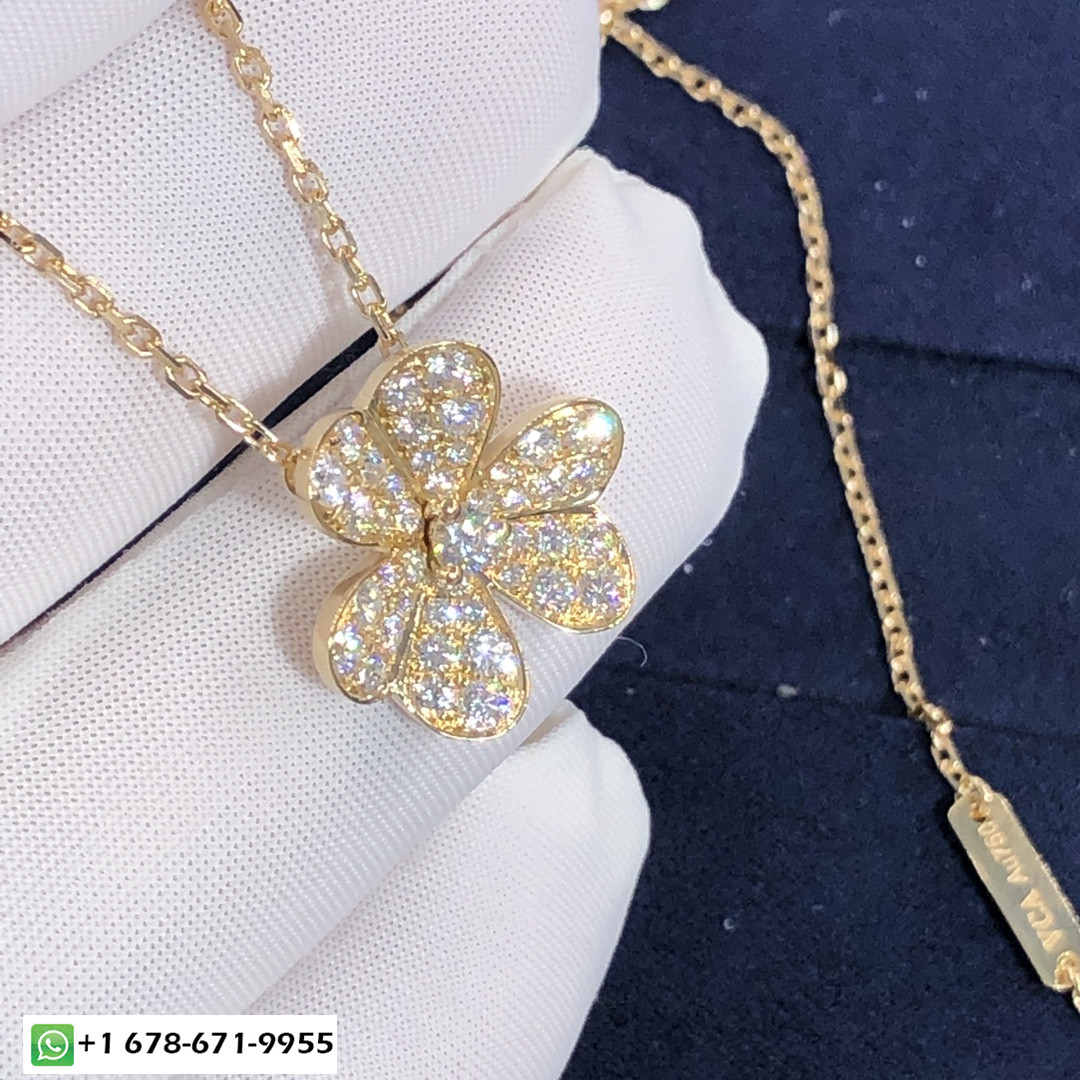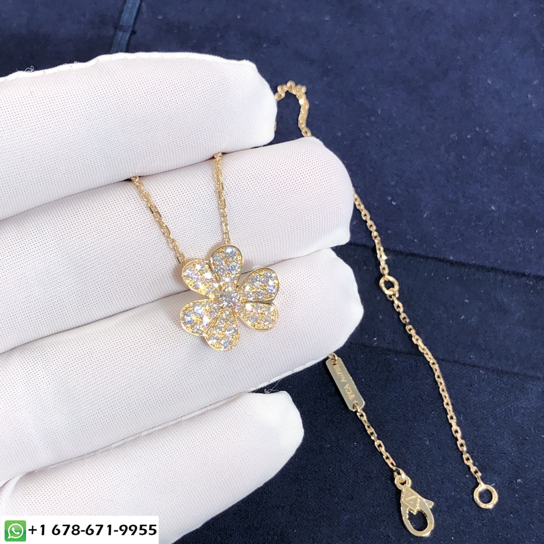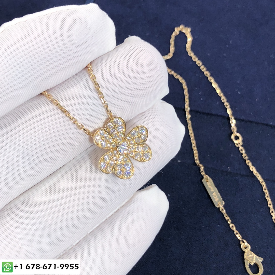 من الكليف & قلادة arpels تافهة مصنوعة حسب الطلب من الذهب الأصفر عيار 18 قيراطًا و 43 مجموع قطع الماس 0.81 طول السلسلة قيراط:42 سم نموذج صغير قلادة VCA Frivole هذه متوفرة أيضًا من الذهب الأبيض عيار 18 قيراطًا والذهب الوردي عيار 18 عند الطلب ، مثل العديد من الزهور التي ترقص في النسيم, إبداعات Frivole® من فان كليف & تبرز Arpels بجمالياتها الرسومية والمتجددة الهواء. يضفي الذهب المصقول بالمرايا إشراقًا فريدًا على البتلات على شكل قلب.