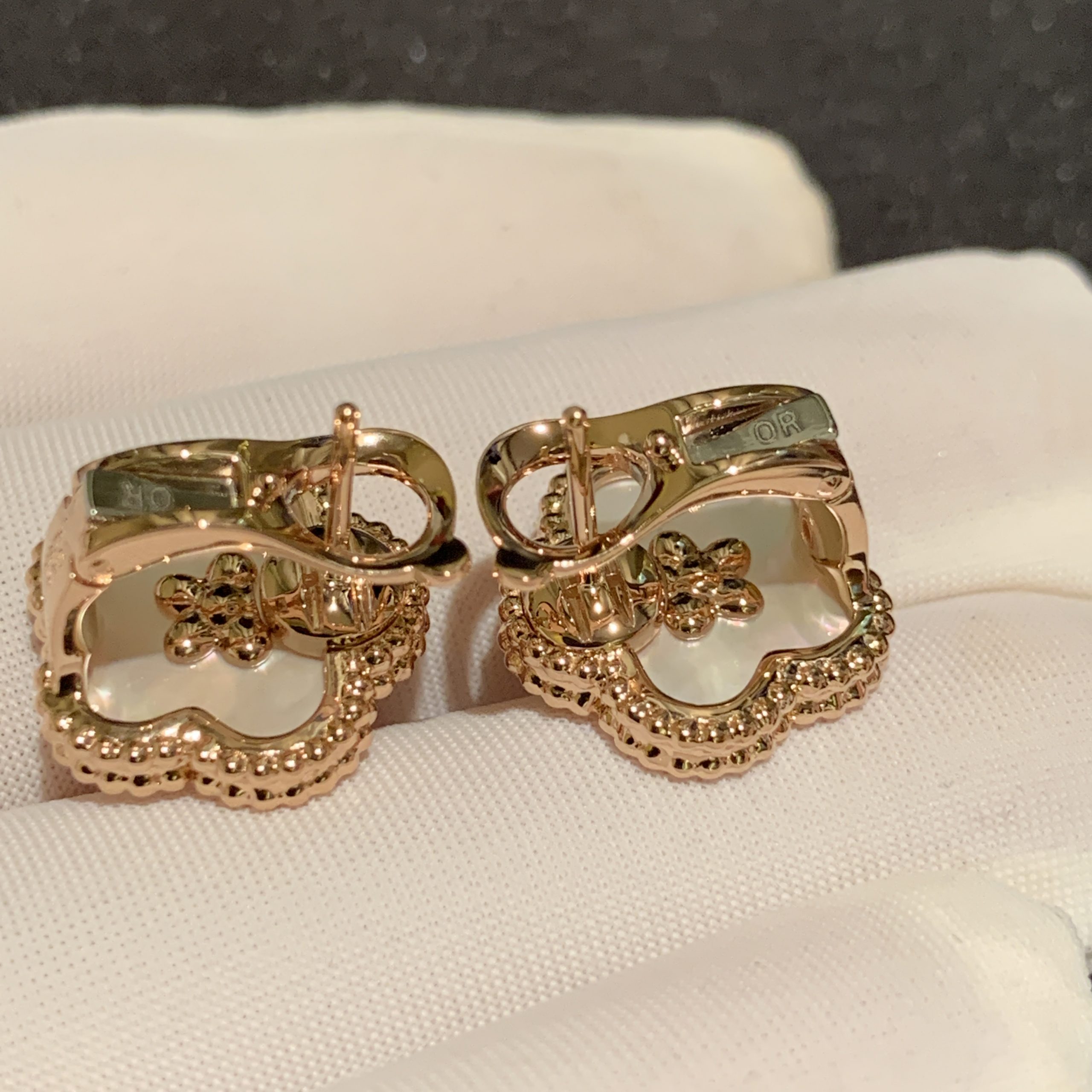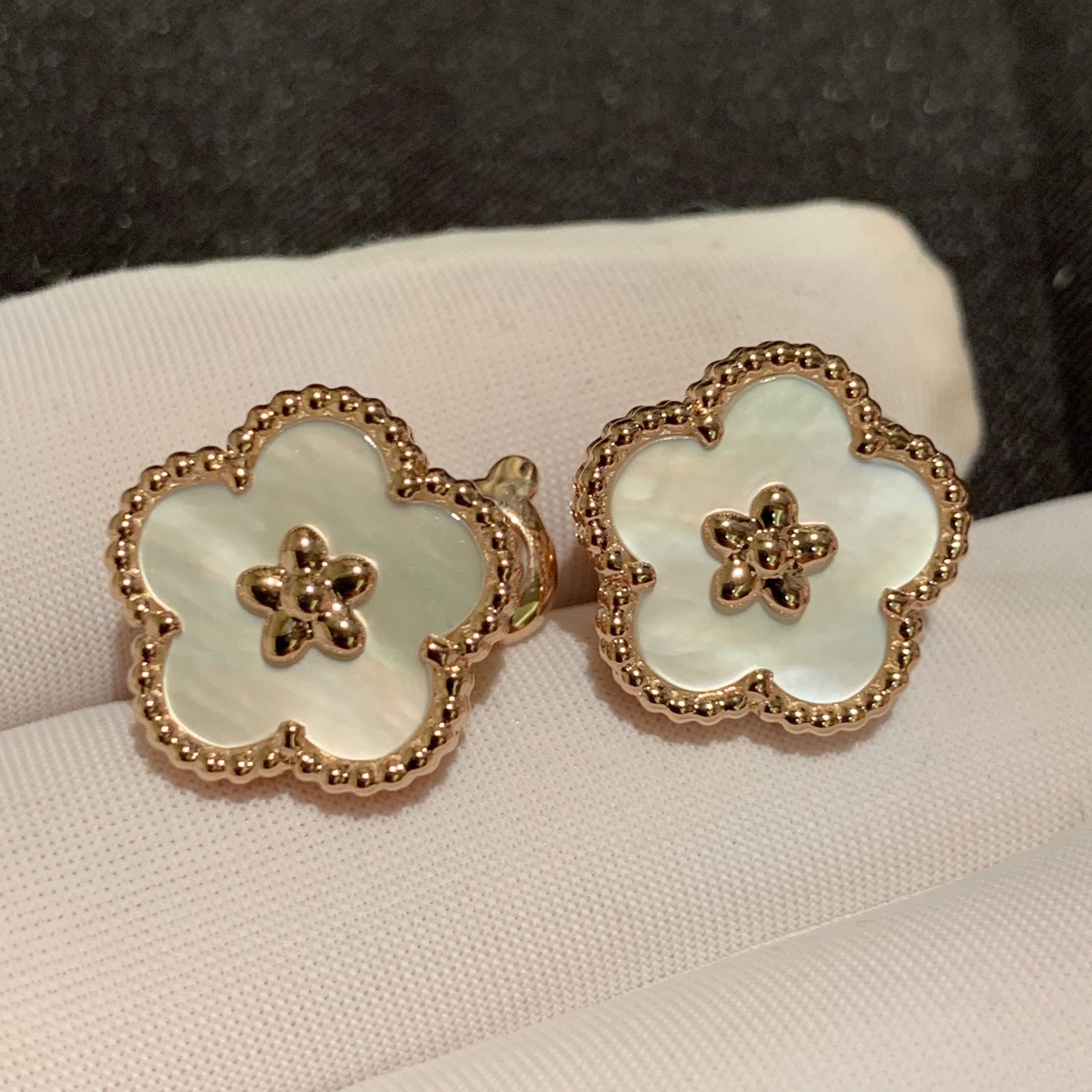 فان كليف & أربيلز لاكي سبرينغ أقراط Plum Blossom مصنوعة خصيصًا من الذهب الوردي عيار 18 قيراط مع عرق اللؤلؤ مع الدعسوقة والزخارف الزهرية, تشيد مجموعة Lucky Spring بالربيع, موسم التجديد الغالي على فان كليف & آربلز. من الذهب الوردي, العقيق والعقيق, تُثري الإبداعات الطبيعة الخيرية لكون الدار.