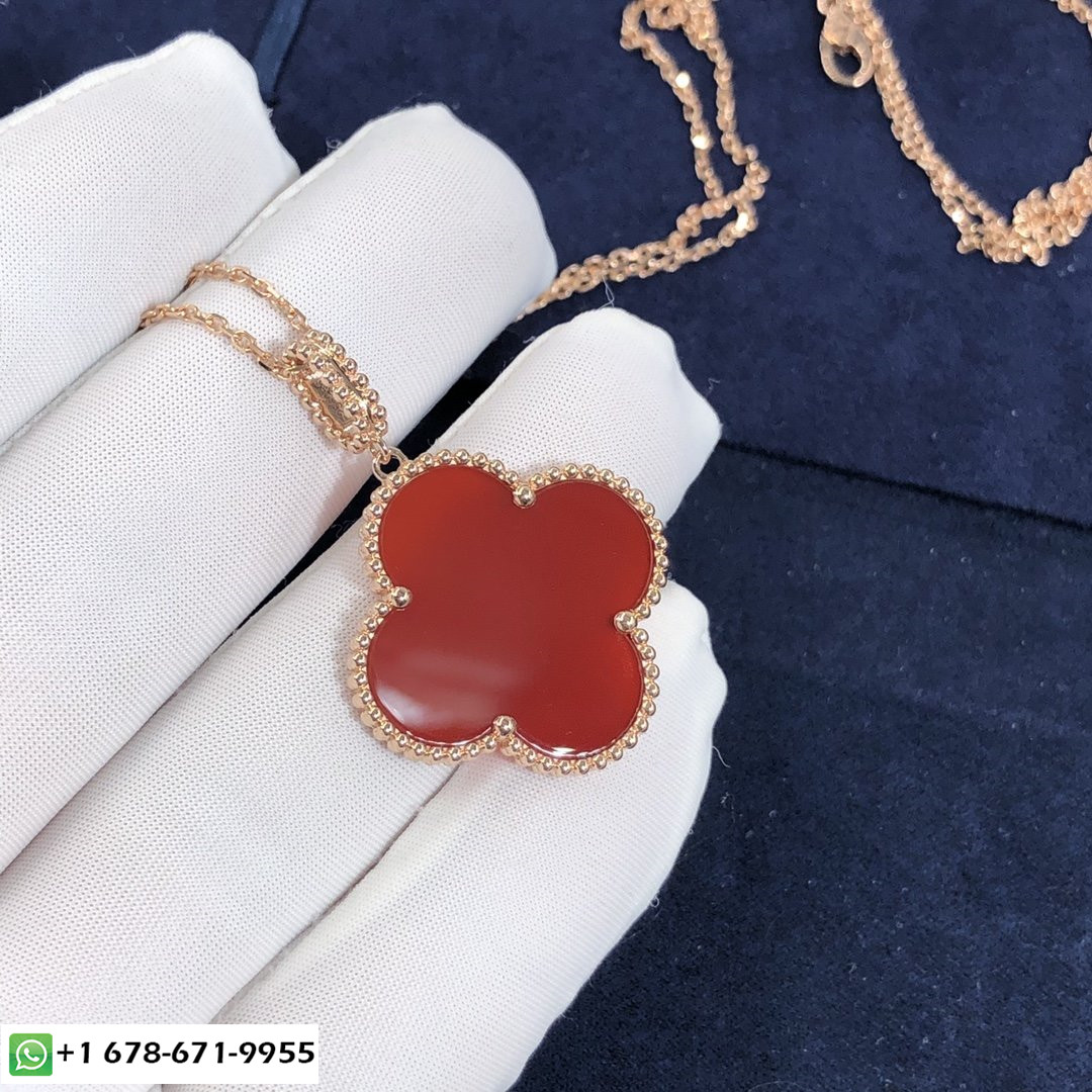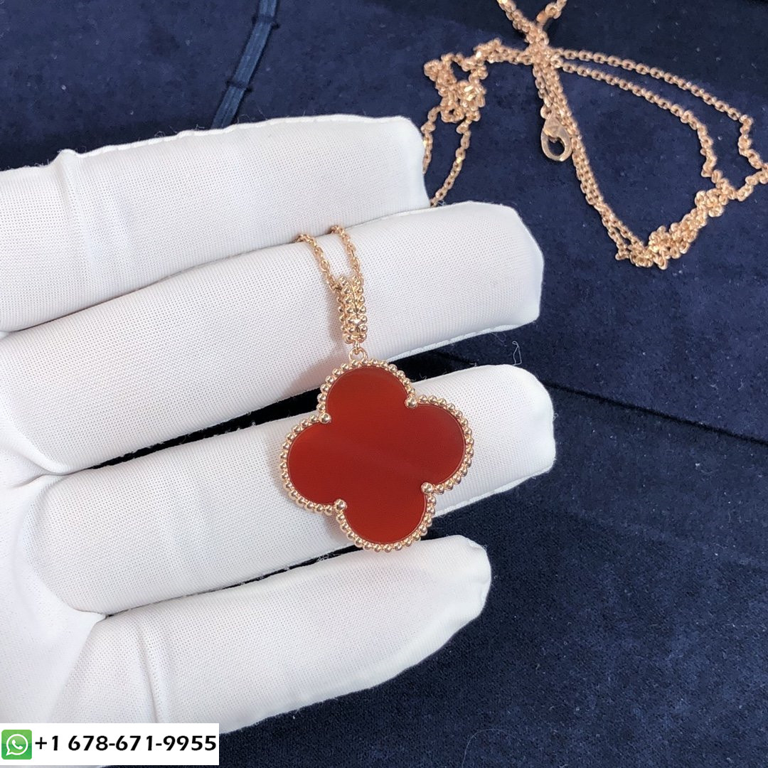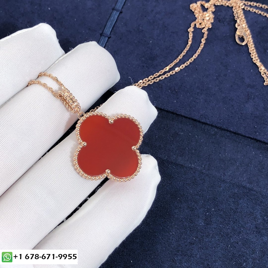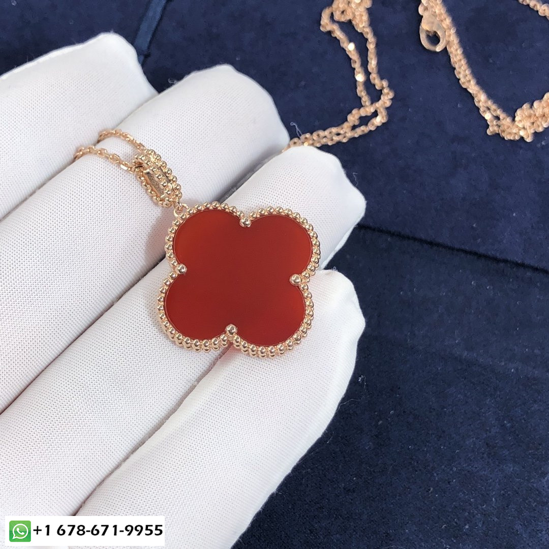 فان كليف & اربلز ماجيك الحمراء قلادة 1 تصميم مخصص من الذهب الوردي عيار 18 قيراط مرصع بالعقيق,طبعة الأمير,وزن الذهب 11 غرام ، عقد VCA Magic Alhambra 1 يتوفر الزخرفة أيضًا من الذهب الأصفر عيار 18 قيراطًا والذهب الأبيض عيار 18 عند الطلب:90 سم.