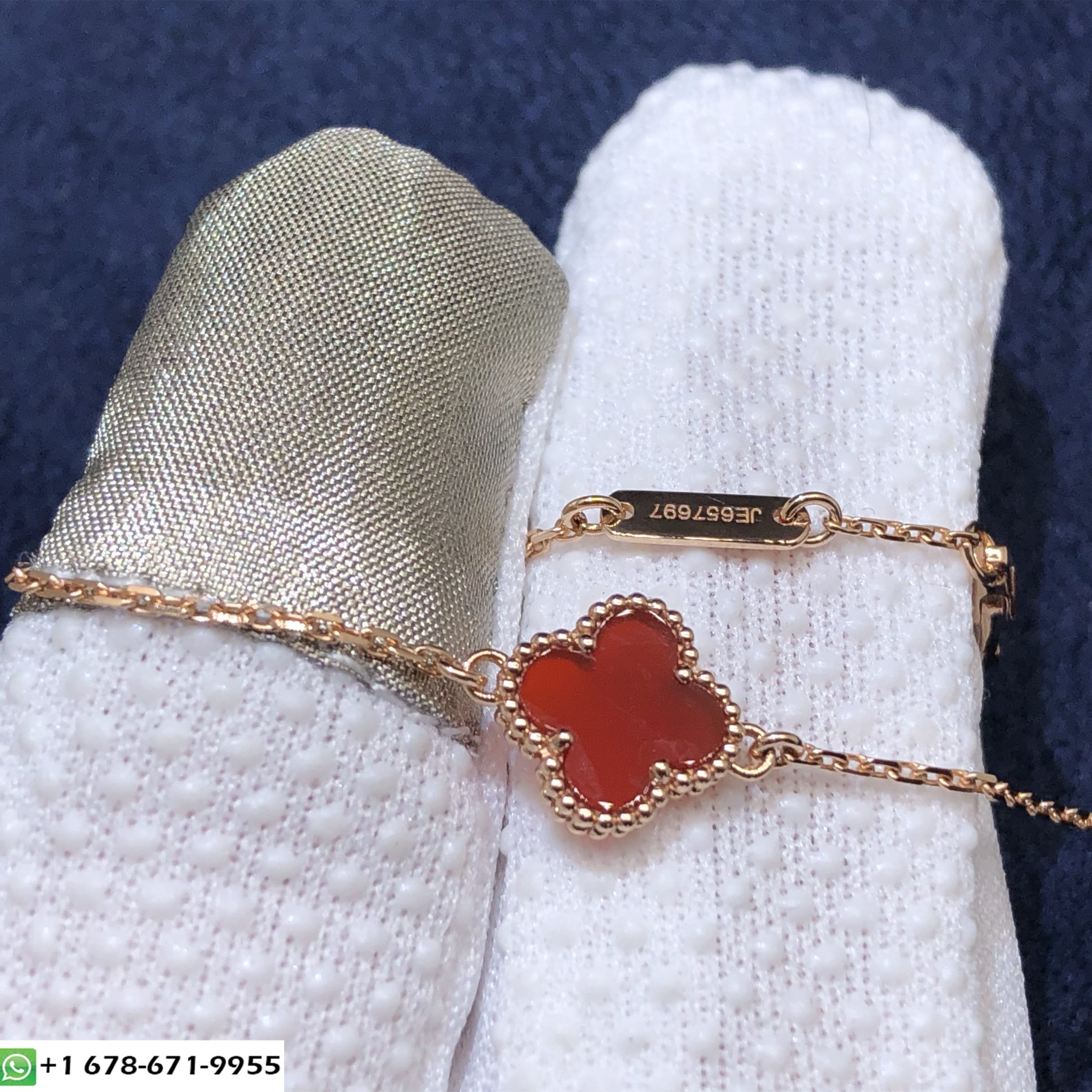 فان كليف & سوار Arpels Sweet Alhambra المخصص مصنوع من الذهب الوردي عيار 18 قيراطًا,1 زخارف من العقيق وزن الذهب 2.5 ~ 3 جرام سوار مقاس المعصم: 6.69 إنشات سوار Sweet Alhambra من VCA متوفر أيضًا من الذهب الأبيض عيار 18 قيراطًا والذهب الأصفر عيار 18 عند الطلب. & منذ ذلك الحين ، ظهرت Arpels بزخارف محظوظة مبهجة في شكل مصغر 2007. خفيف وحساس, إنها طريقة سرية لجلب السعادة لكل يوم يمر.