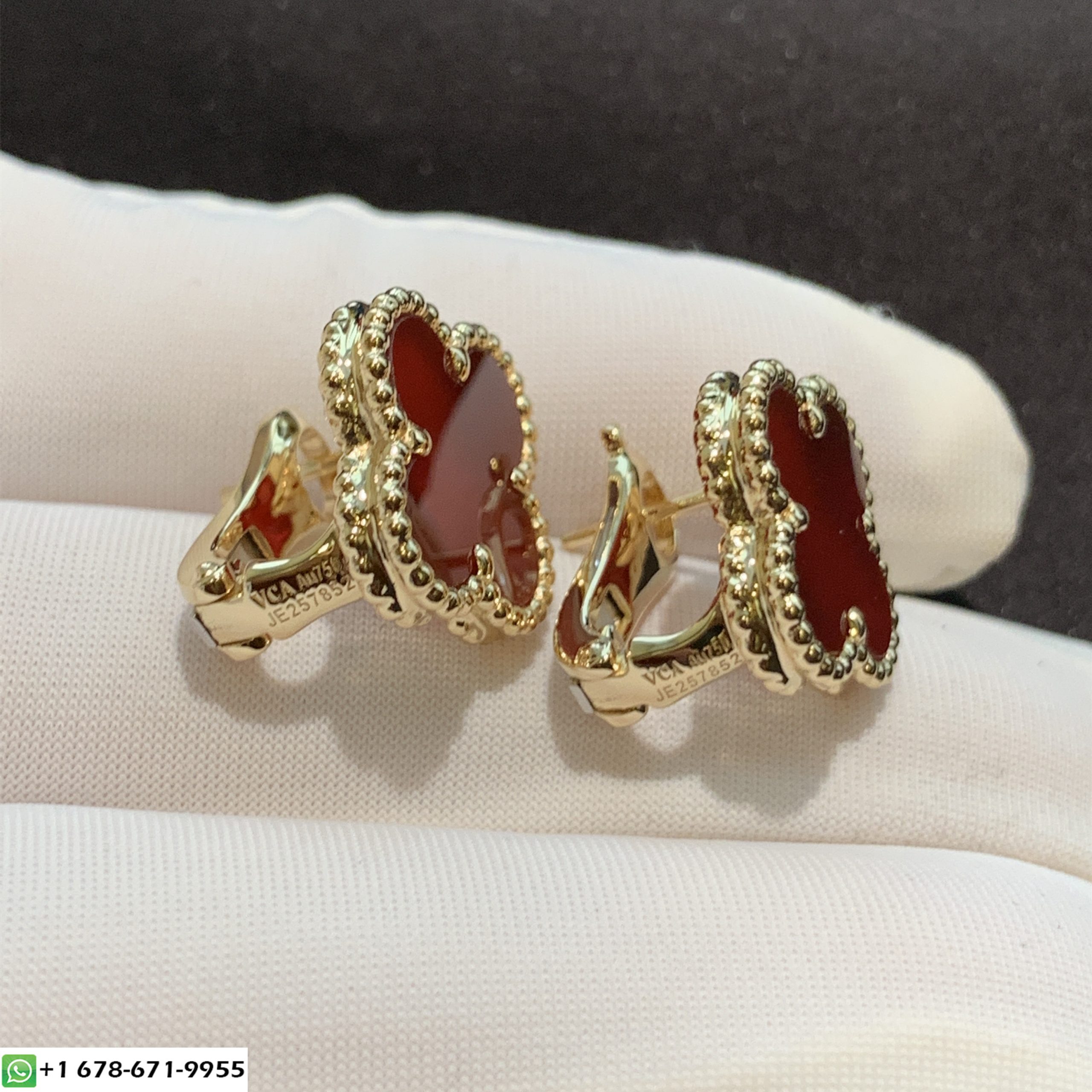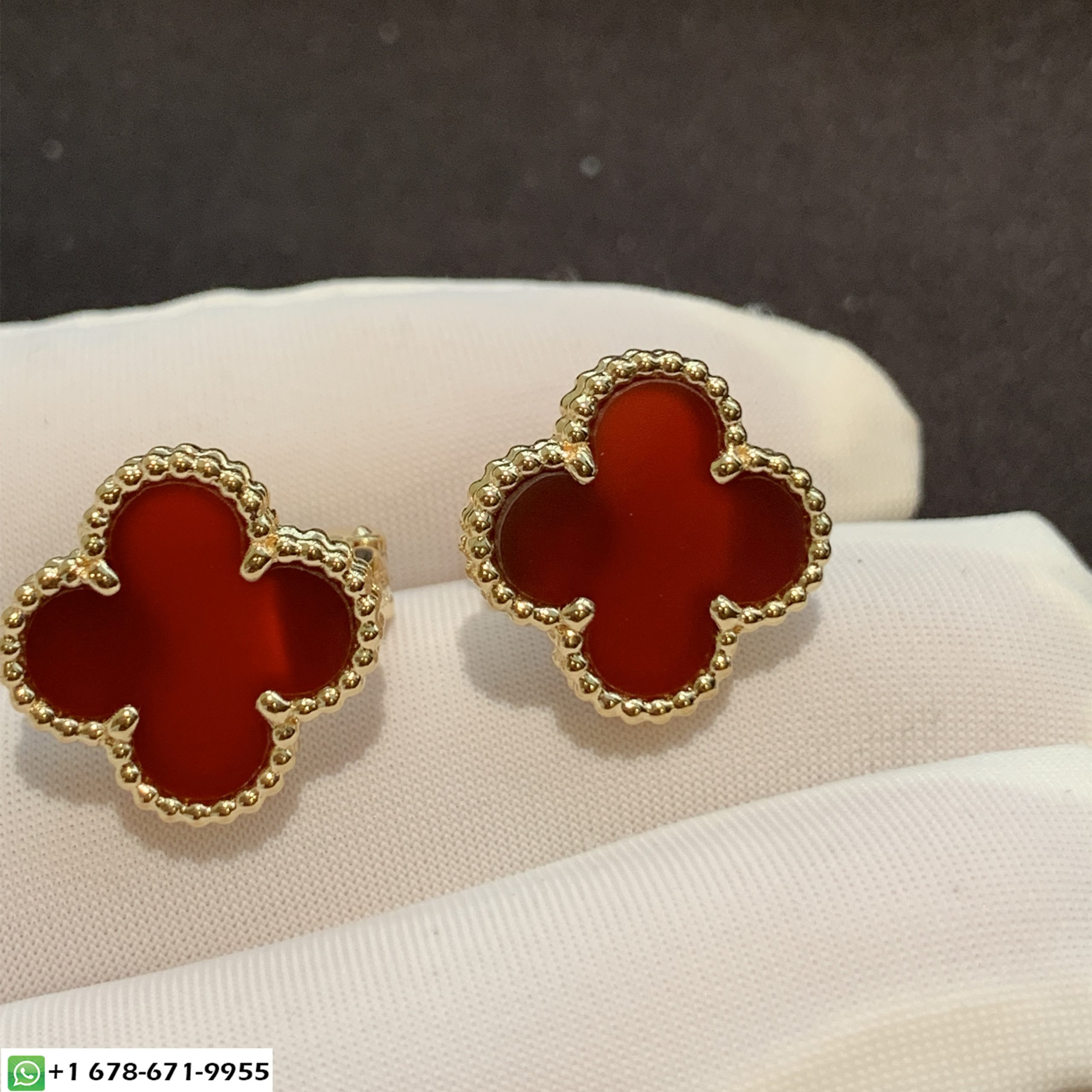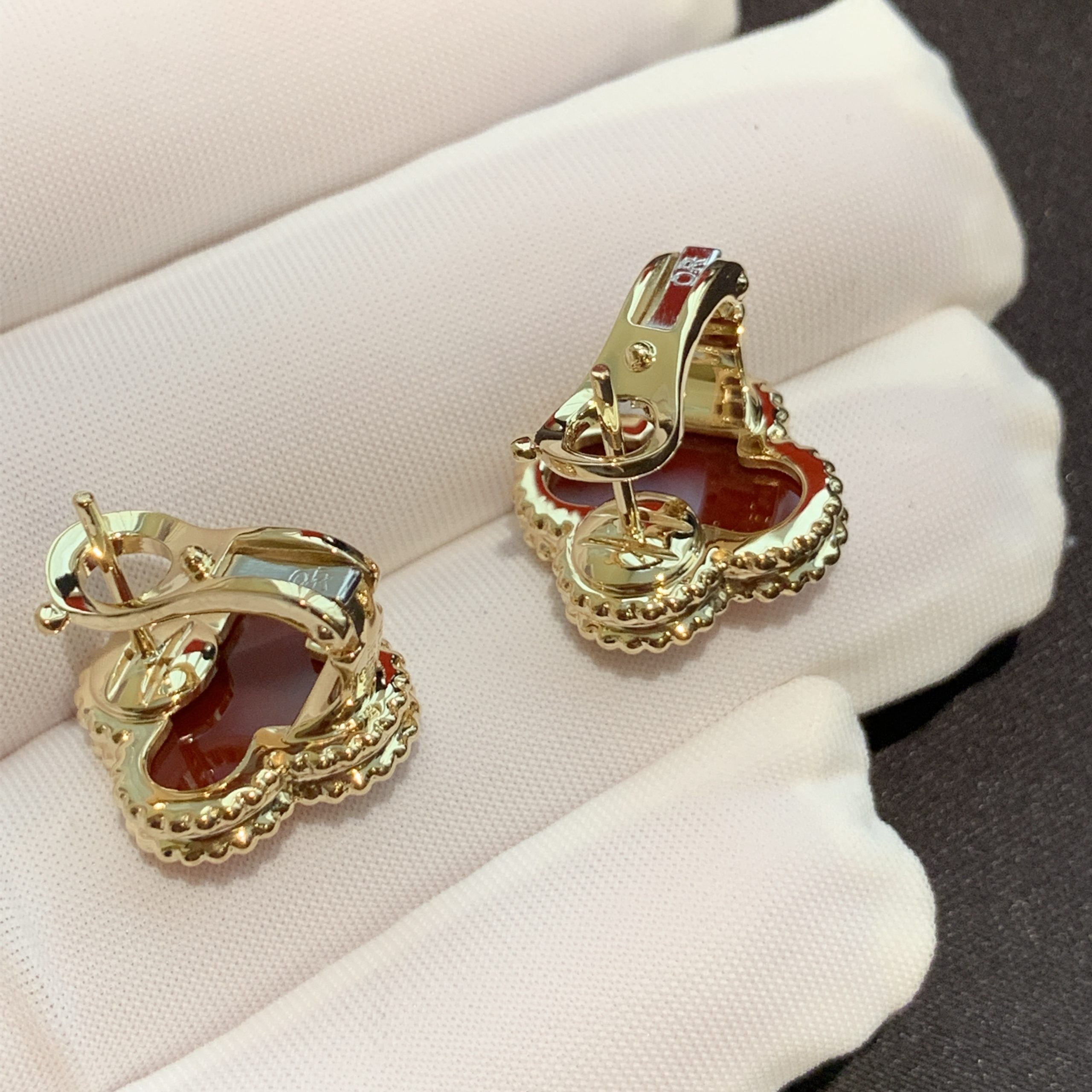 مصنوع بطريقة مخصصة فان كليف & سماعات آربلز خمر الحمراء من الذهب الأصفر عيار 18 قيراط والعقيق:7.5 غرام.تتوفر وسادات الأذن VCA هذه من الذهب الوردي عيار 18 قيراطًا والذهب الأبيض عيار 18 عند الطلب. 1968, إبداعات Vintage Alhambra من تصميم فان كليف & تتميز Arpels بفريدها, أناقة خالدة. مستوحى من أوراق البرسيم, أيقونات الحظ هذه مزينة بإطار من الخرز الذهبي.
