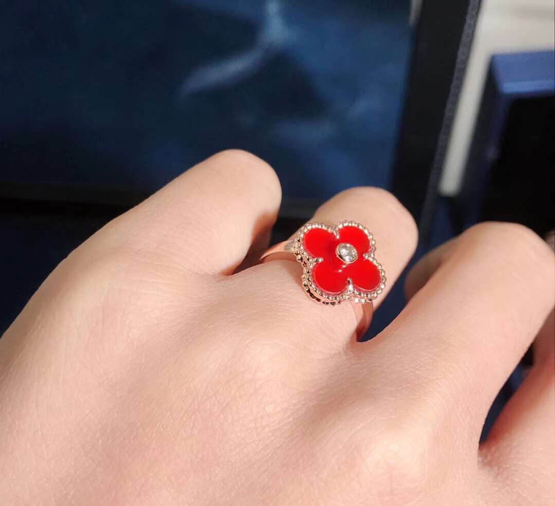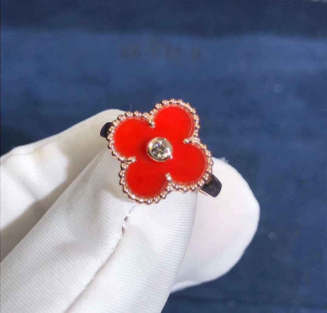 من الكليف & خاتم Arpels Vintage Alhambra مصنوع خصيصًا من الذهب الوردي عيار 18 قيراطًا,كارنيليان مرصع بإجمالي الماس 0.06 ct هذا خاتم VCA يتوفر أيضًا من الذهب الأصفر عيار 18 قيراطًا والذهب الأبيض عيار 18 عند الطلب.
