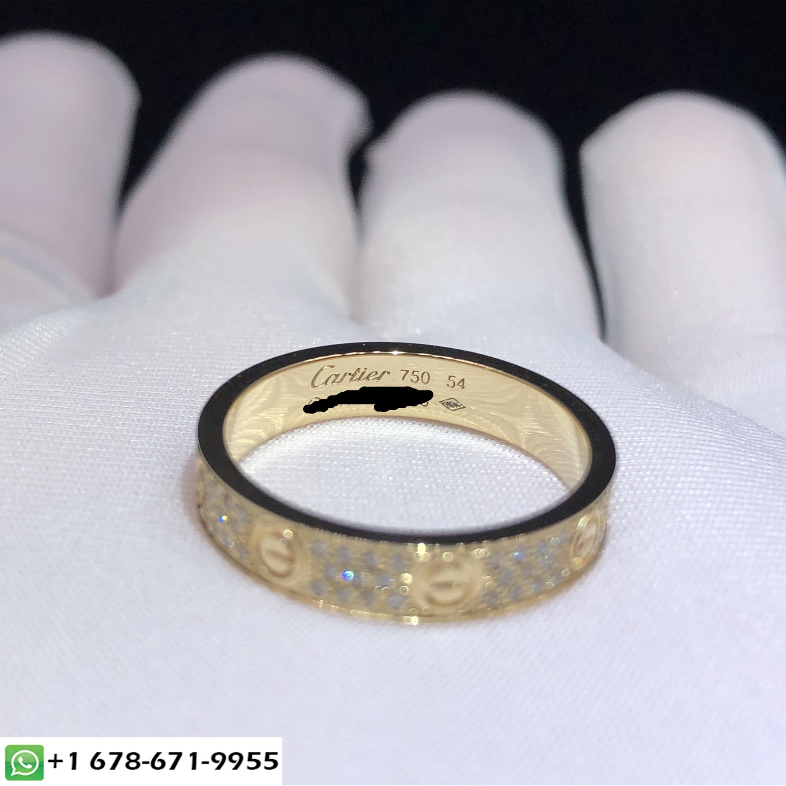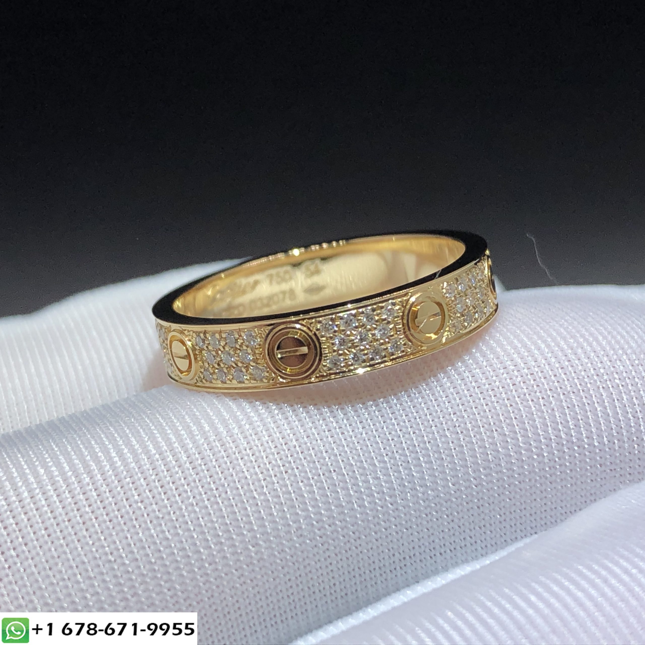 Cartier Love ring custom made in 18k yellow gold,gold weight 4.8~5.5 gram,set with 88 brilliant-cut diamonds totaling 0.31 carats,width 4 mm.The cartier love ring custom is also availabe in 18k white gold and 18k rose gold on request.