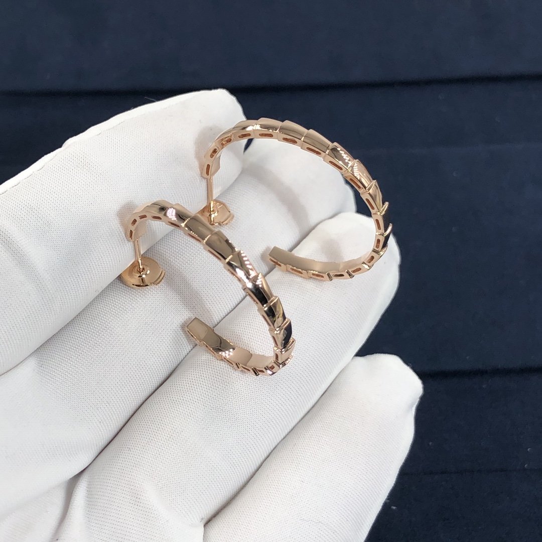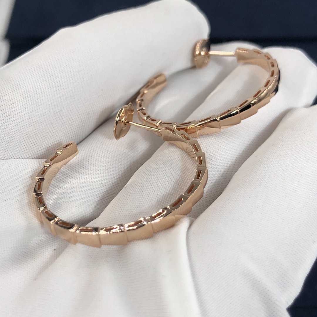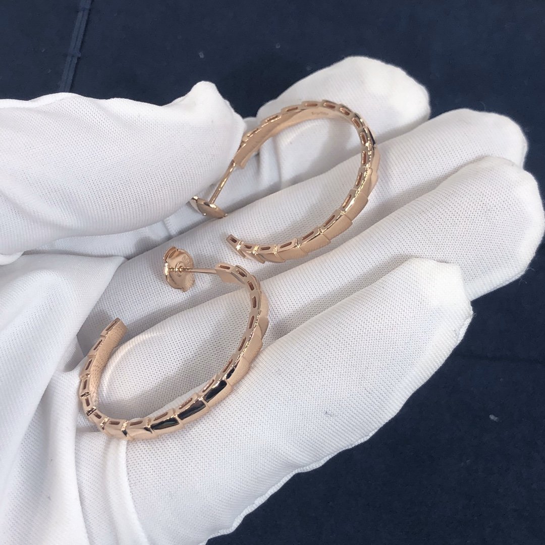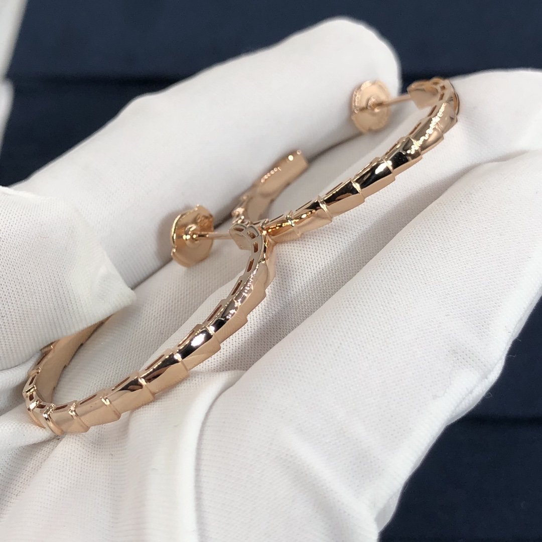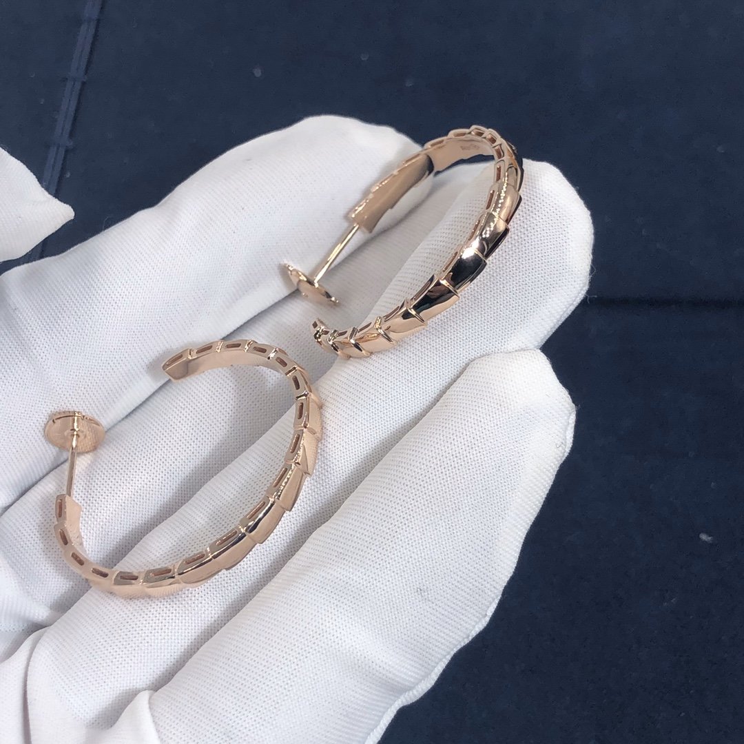 Boucles d'oreilles Bulgari Serpenti Viper Fabriqué sur mesure en or rose 18 carats, inspiré par le mouvement en spirale de la vipère avant sa frappe, les boucles d'oreilles évoquent cette spirale sensuelle en combinant la dangereuse beauté des précieuses écailles avec la sinuosité du serpent. Dans un jeu fascinant entre la lumière et l'ombre, connaissance et désir, tentation et désir, les deux facettes irrésistibles de la nature du serpent se révèlent à travers un design captivant.