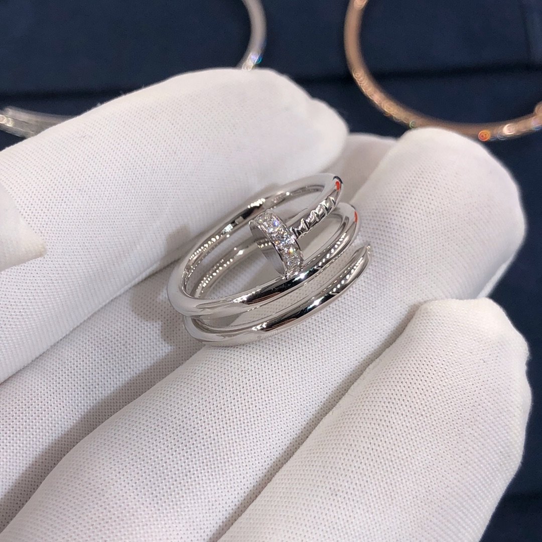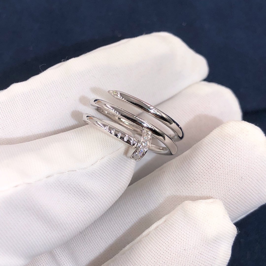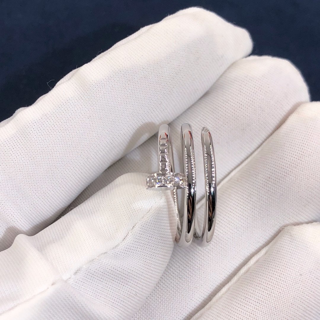 Custom made cartier juste un clou bague à ongles triple tour en or blanc 18 carats,Fixé avec 14 diamants taille brillant totalisant 0.08 carats. Largeur: 1.8La bague Cartier juste un clou est également disponible en or rose 18 carats et en or jaune 18 carats sur demande.