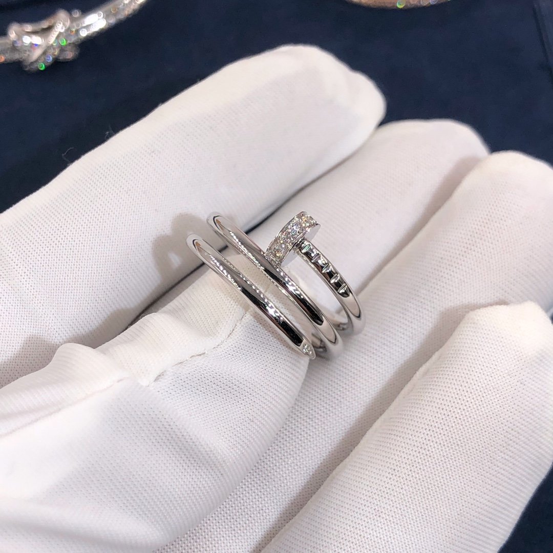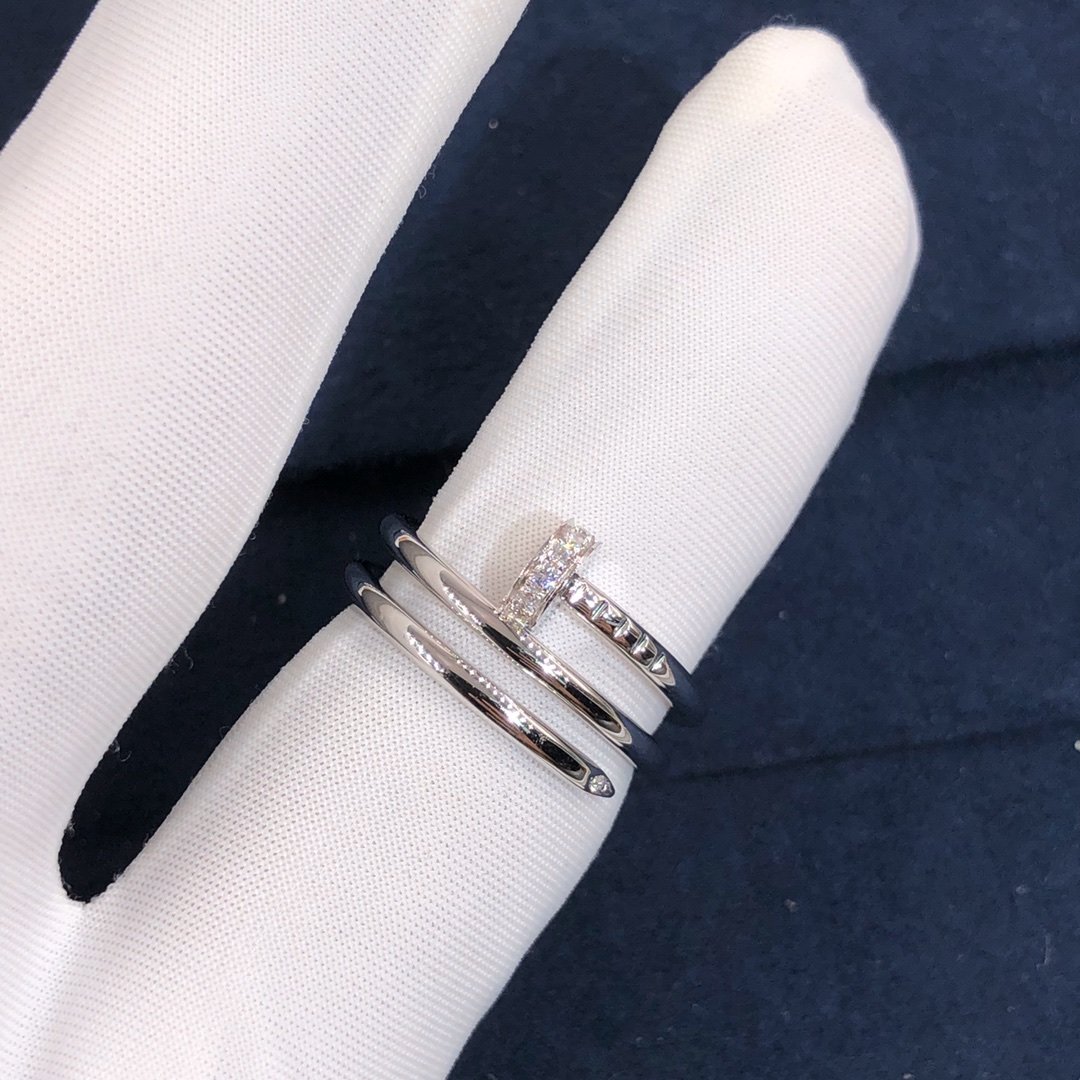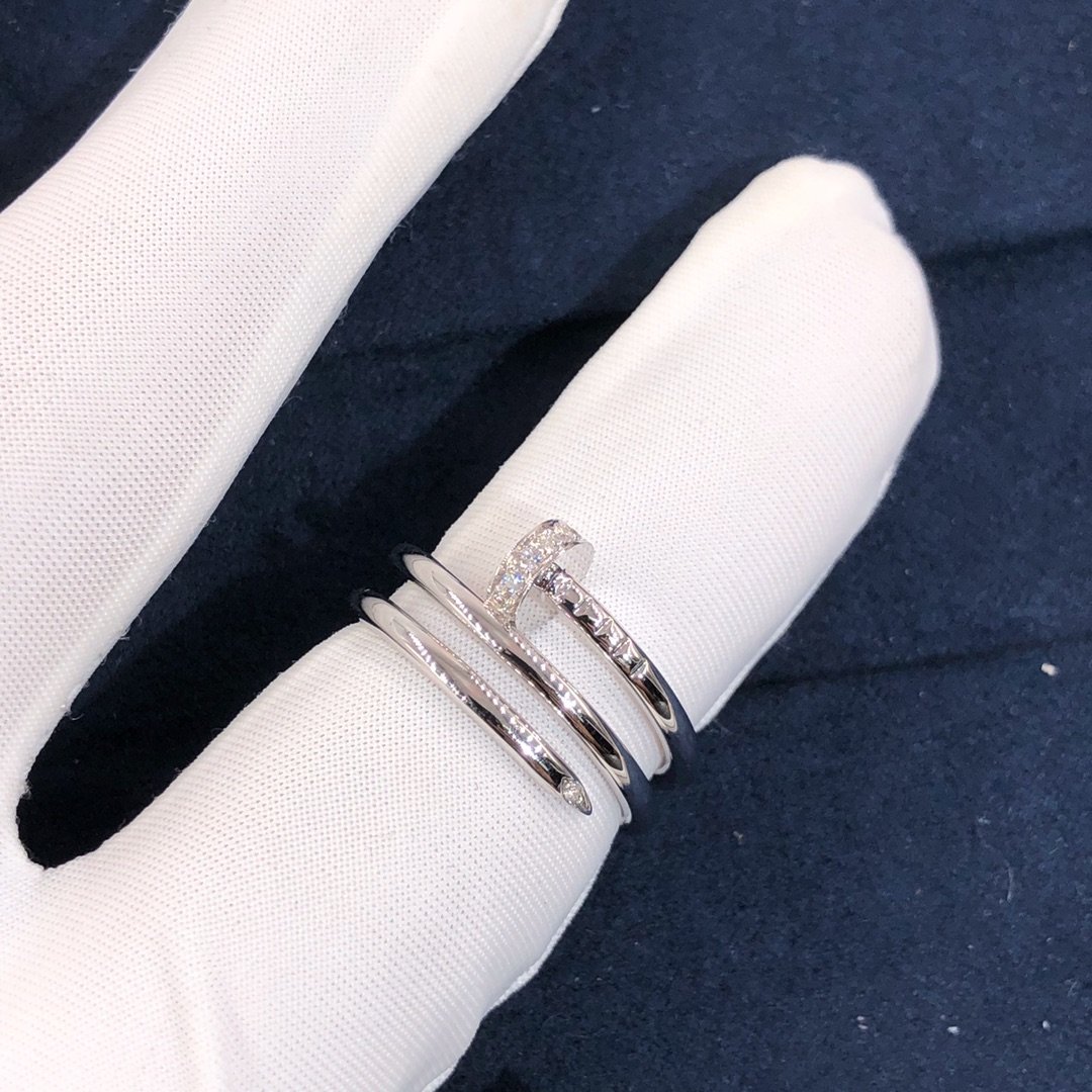Custom made cartier juste un clou bague à ongles triple tour en or blanc 18 carats,Fixé avec 14 diamants taille brillant totalisant 0.08 carats. Largeur: 1.8La bague Cartier juste un clou est également disponible en or rose 18 carats et en or jaune 18 carats sur demande.