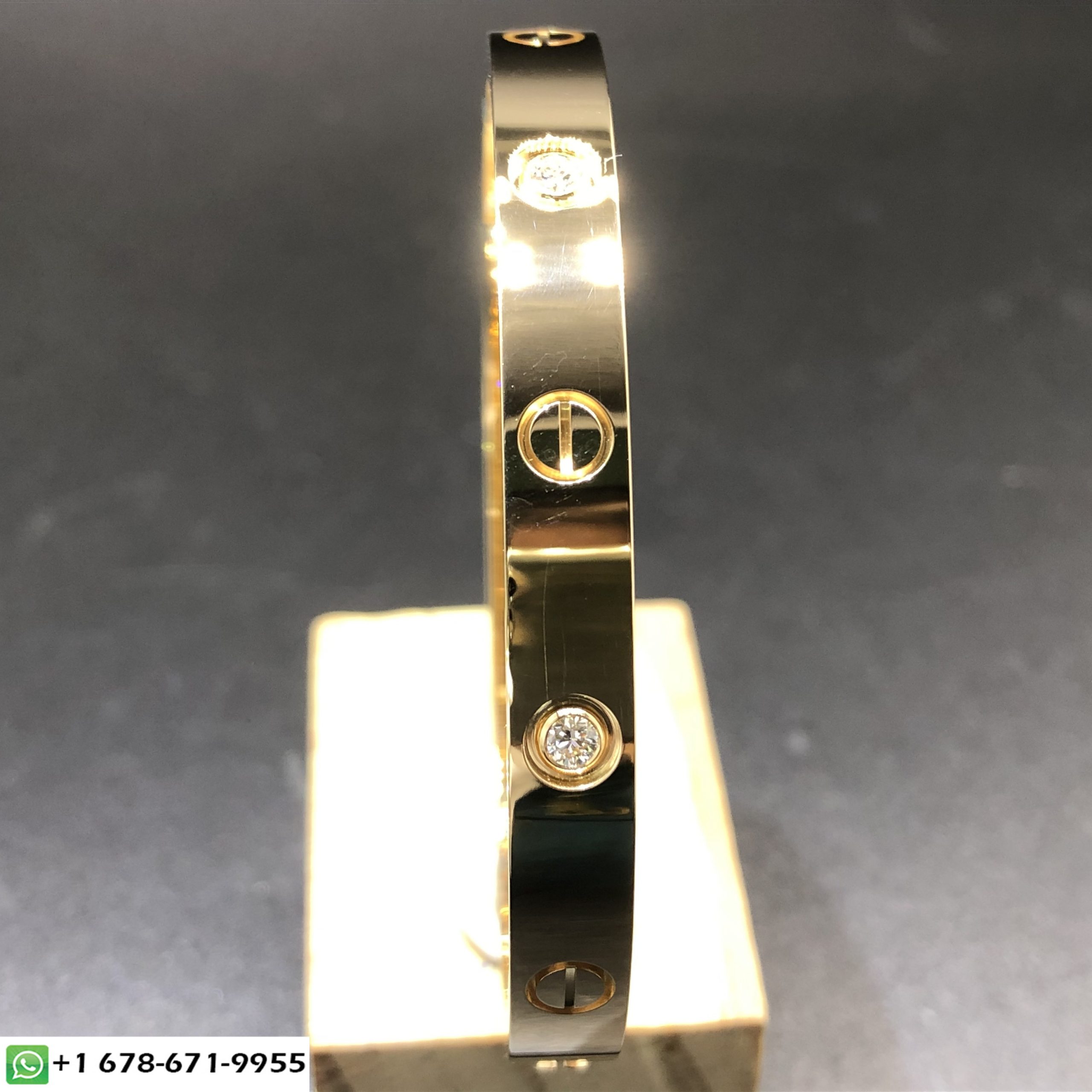 Bracelet love Cartier sur mesure en or jaune massif 18 carats avec 4 diamants.Poids d'or 31 ~ 39 grammes(jusqu'à la taille de votre bracelet),largeur 6,1 mm,Poids des diamants F VVS1 0.42 ct,vendu avec un tournevis. bracelet love cartier personnalisé est également disponible en or blanc massif 18 carats et en or rose 18 carats sur demande.
