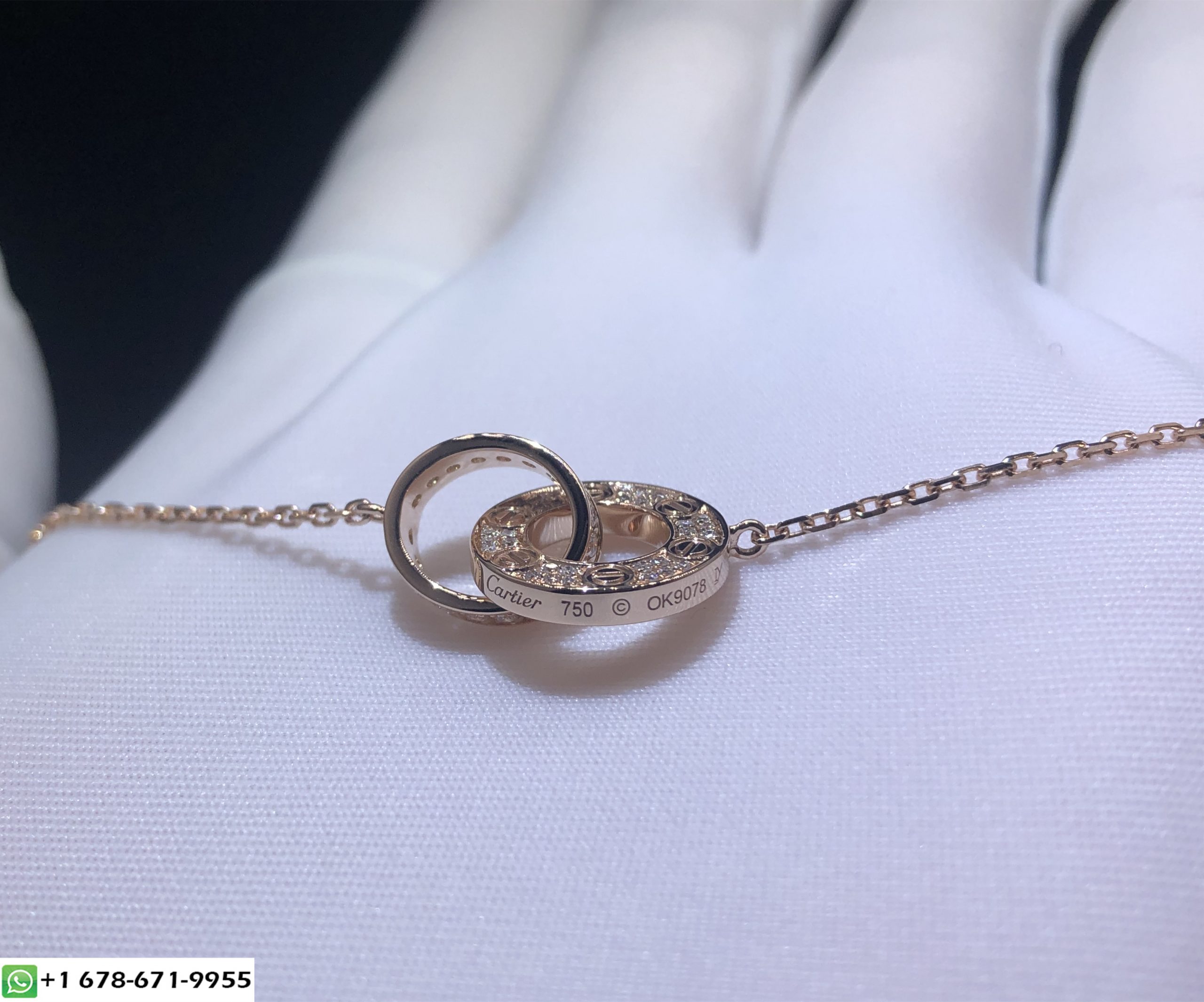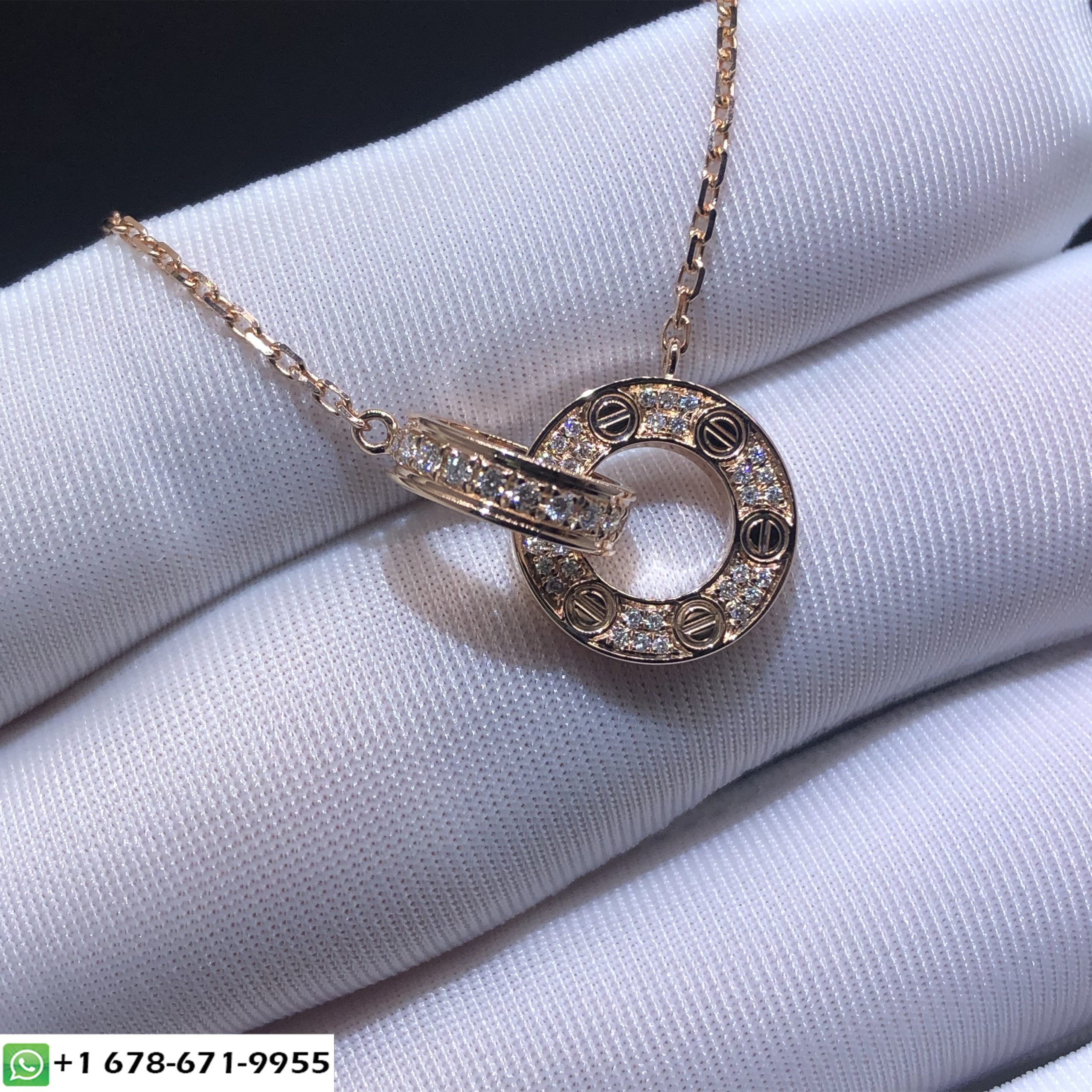 Cartier Love Necklace Bague d'amour entrelacée fait sur mesure en or rose 18 carats avec diamants,poids d'or 6.8 gramme,Fixé avec 48 diamants taille brillant totalisant 0.30 carats. Largeur: 2.65 mm. Diamètre intérieur: 7.6 mm. Longueur de la chaîne: 420 mm Le collier est disponible en or jaune 18 carats et en or blanc 18 carats sur demande. bijoux de luxe sur mesure en véritable or massif 18 carats,pierres précieuses et diamants GIA et 100% identique à la qualité supérieure d'origine au prix de vente direct d'usine,Offrez également la livraison gratuite dans le monde entier.Avant de vous entendre bientôt et d'avoir une coopération à long terme avec vous.N'hésitez pas à nous contacter par e-mail:copyjwlove@gmail.com et télégramme / whatsapp:+852 5647 8615.Merci beaucoup!