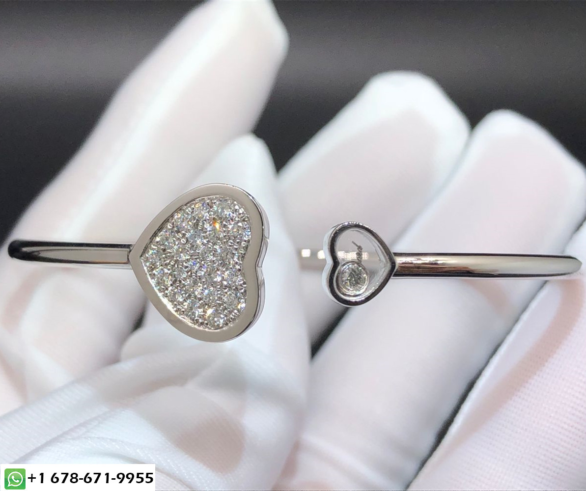Bracelet Chopard Happy Heart fait sur mesure en or blanc massif 18 carats avec diamants,poids d'or 9.7 gramme,diamants totalisant 0.45 Le bracelet Chopard est également disponible en or jaune 18 carats et en or rose 18 carats sur demande.