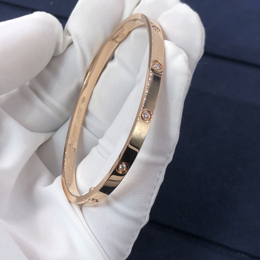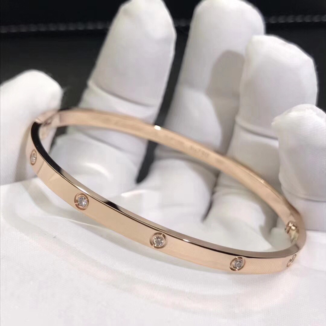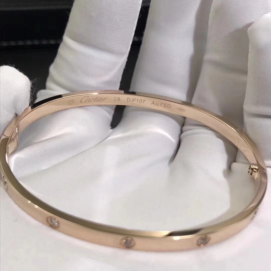 Bracelet love cartier est en ensemble d'or rose 18k avec 10 diamants ronds,petit modèle.Le bracelet cartier love petit modèle est également disponible en or blanc 18 carats et or jaune 18 carats sur demande.