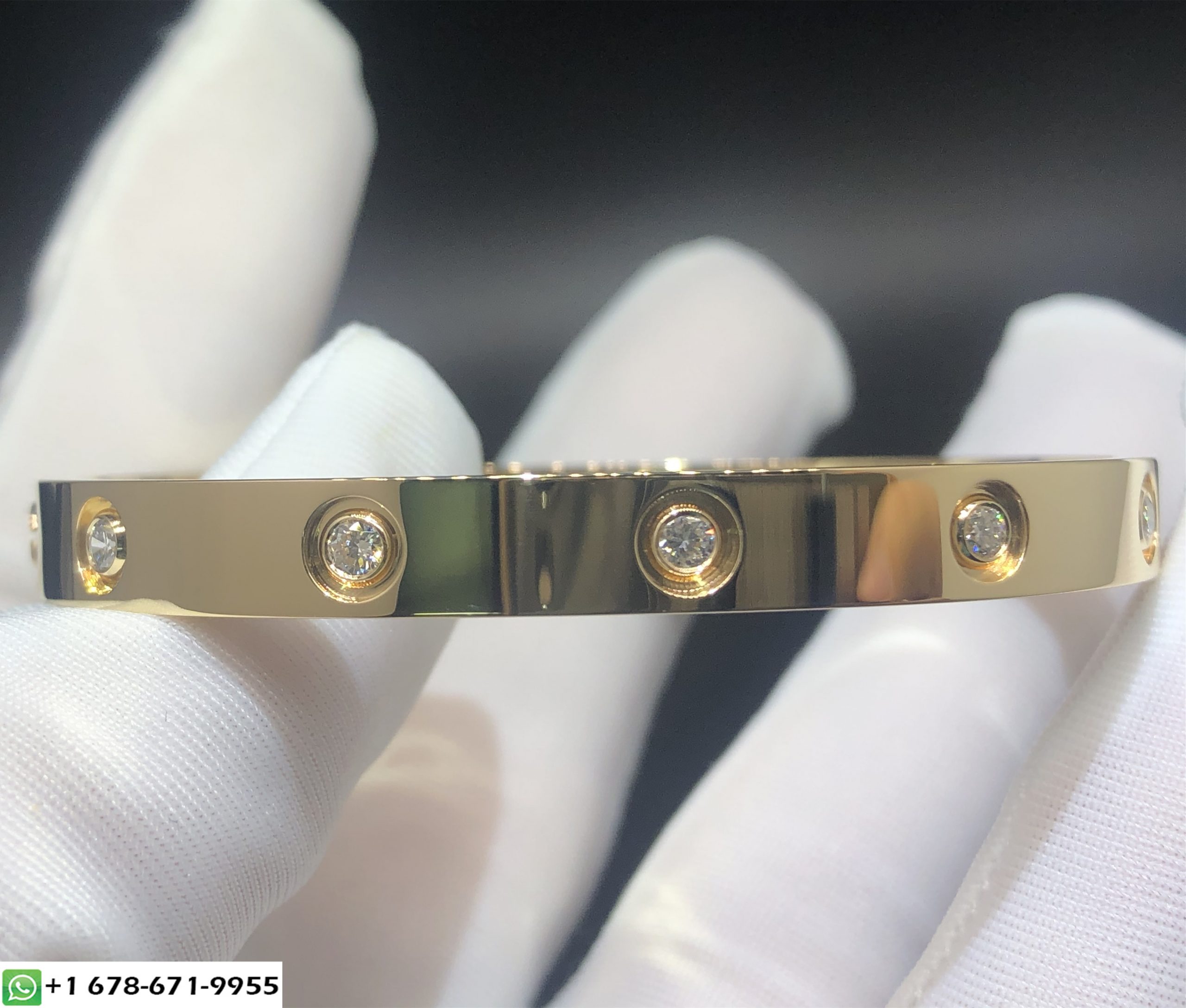 Bracelet love Cartier sur mesure en or jaune massif 18 carats avec 10 diamants.Poids d'or 31 ~ 39 grammes(jusqu'à la taille de votre bracelet),largeur 6,1 mm,Poids des diamants F VVS1 0.95 ct,vendu avec un tournevis. bracelet love cartier personnalisé est également disponible en or blanc massif 18 carats et en or rose 18 carats sur demande.