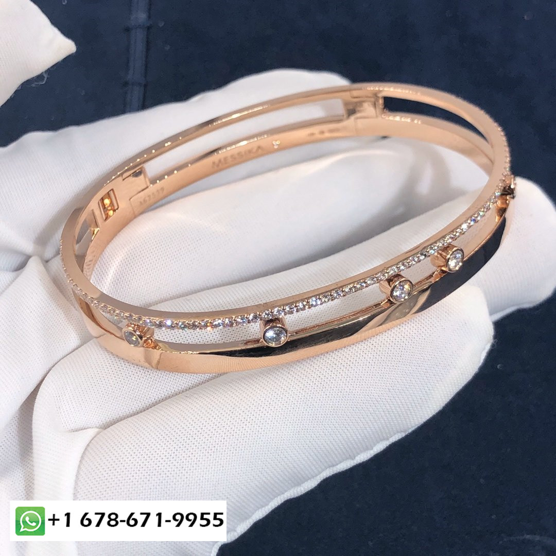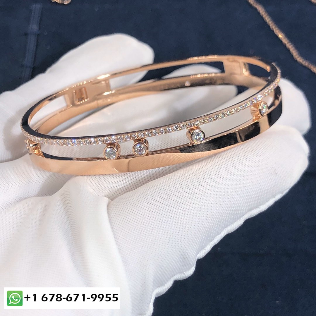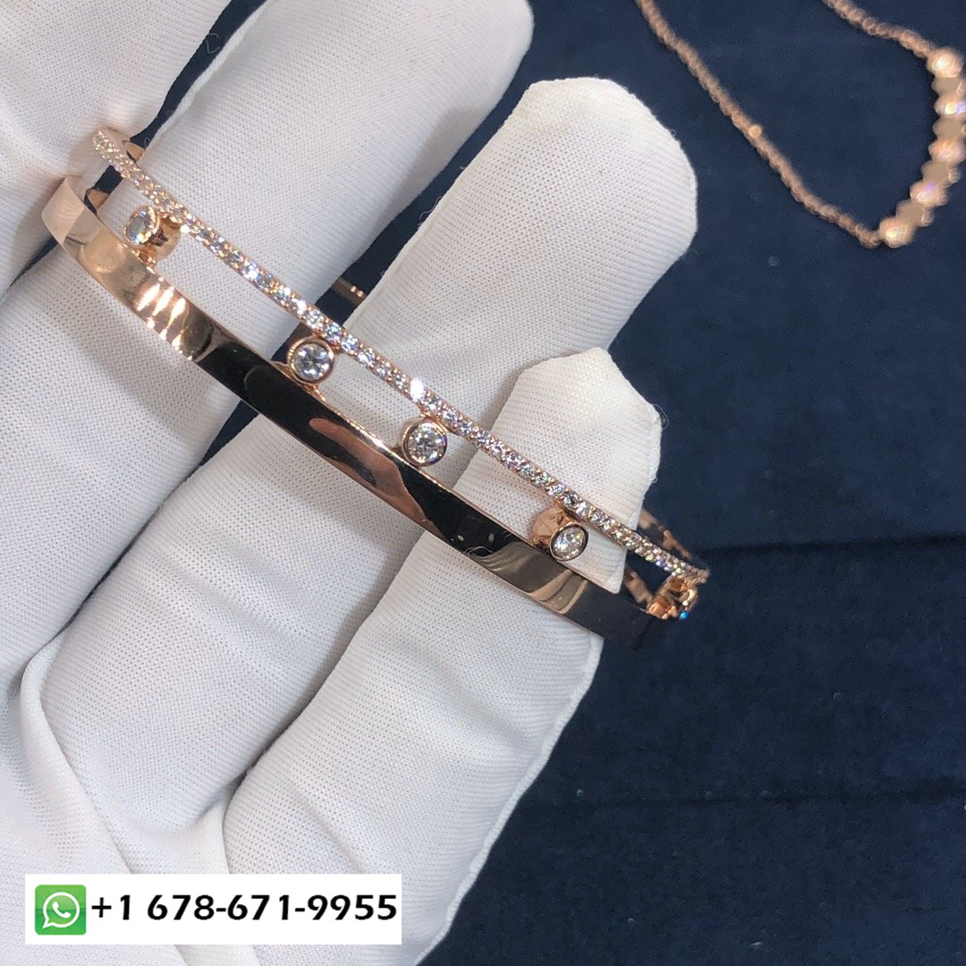 Bracelet sur mesure Messika Move Romane en or rose 18 carats et diamants au total 0.75 carats.Poids d'or 26 gramme Largeur: 7 mm.Le bracelet move romane est également disponible en or blanc 18 carats et en or jaune 18 carats sur demande.