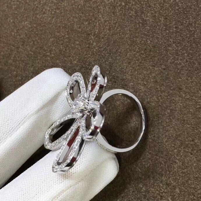 Van Cleef sur mesure & bague fleurie arpels en or blanc 18 carats sertie de 87 diamants totalisant 2.66 ct. Bague fleurie VCA est également disponible en or rose 18 carats et en or jaune 18 carats sur demande.