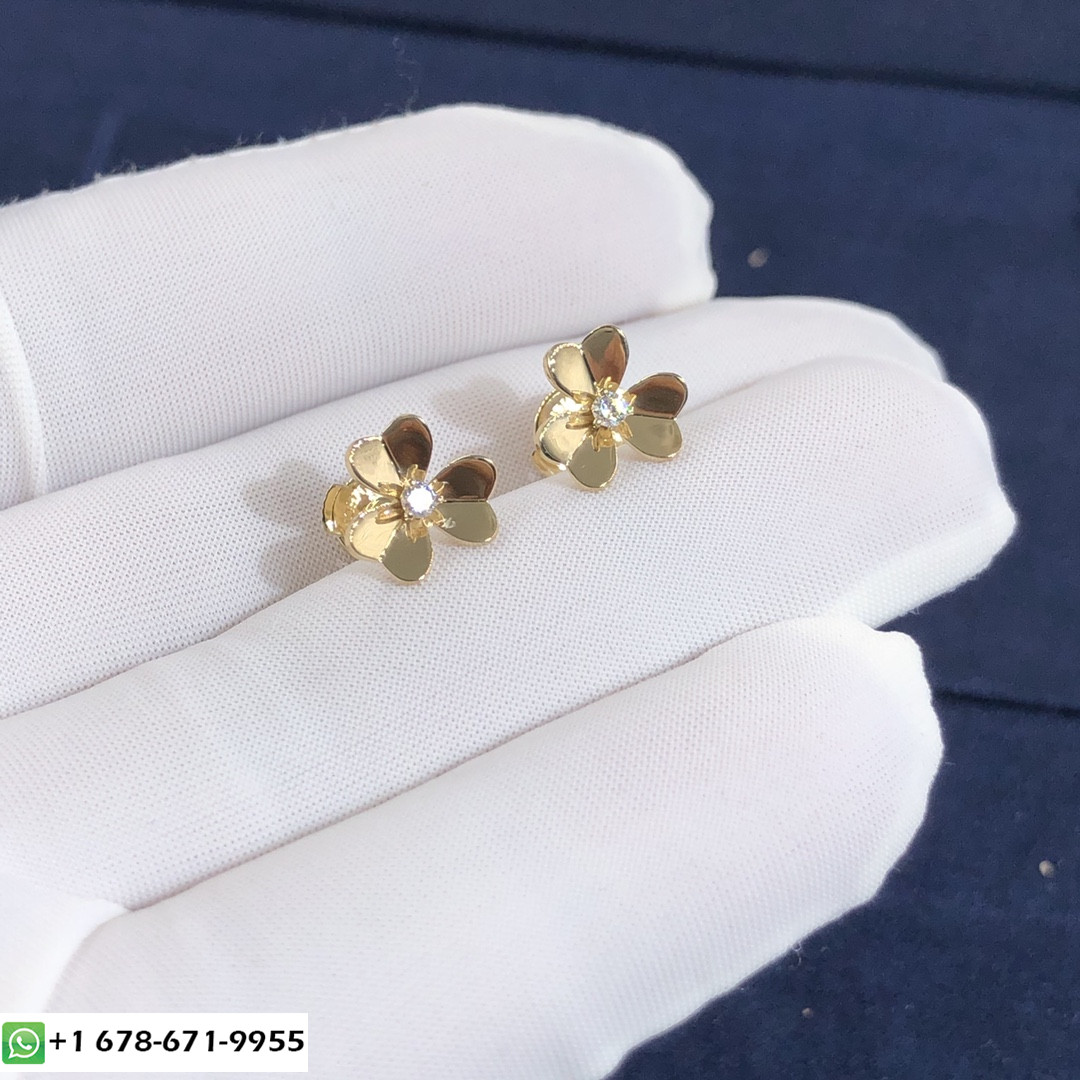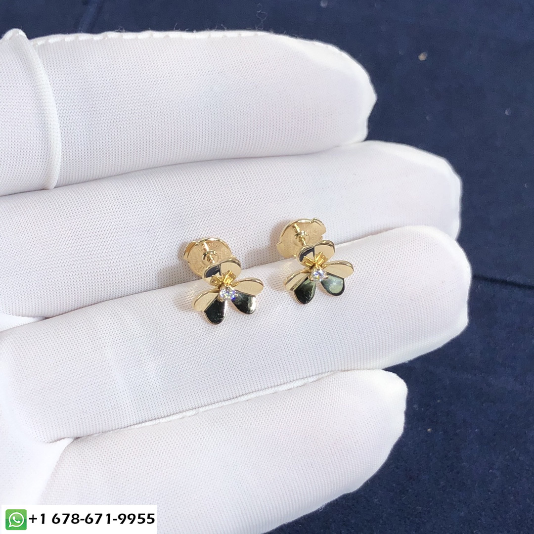 De cleef & boucles d'oreilles arpels frivole sont fabriqués sur mesure en or jaune 18 carats avec 2 diamants ronds totalisant 0.17 ct,Ces boucles d'oreilles VCA sont également disponibles en or rose 18 carats et or blanc 18 carats sur demande.Et ces boucles d'oreilles sont également disponibles en grand modèle et mini modèle sur demande.