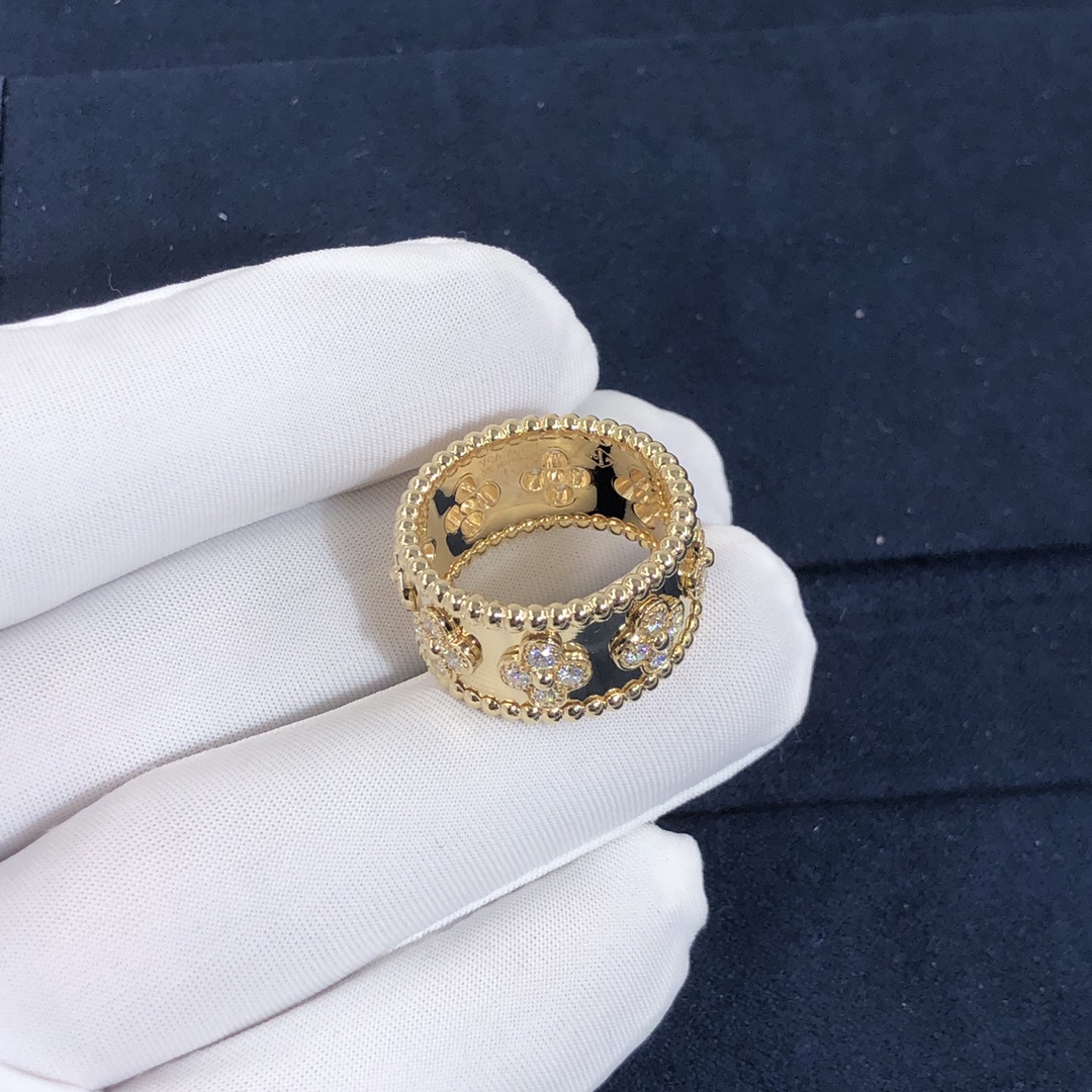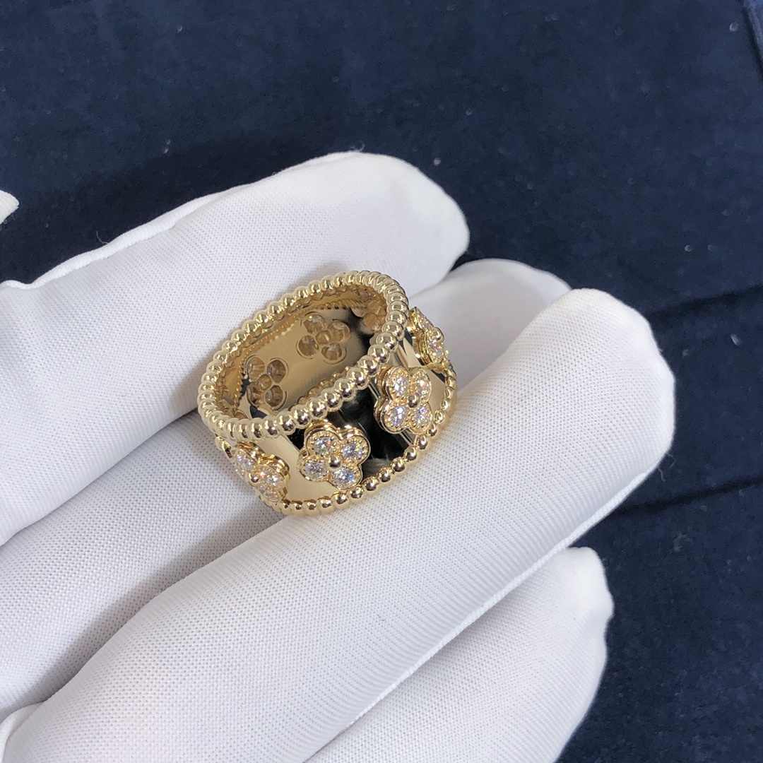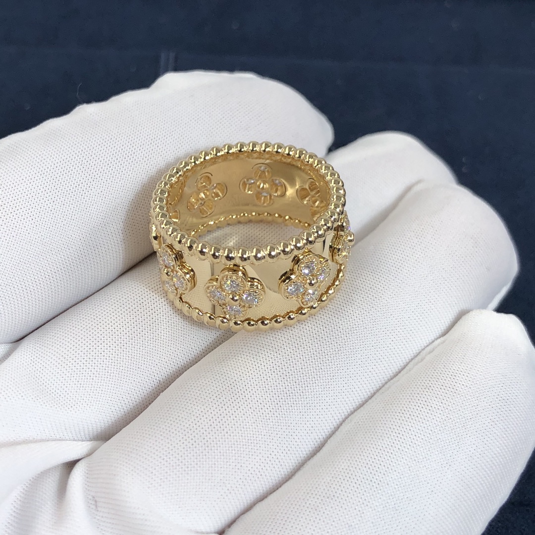 De cleef & bague arpels perlée trèfles sur mesure fait en or jaune 18 carats serti de 32 diamants totalisant 0.71 ct,modèle moyen Cette bague VCA est également disponible en or blanc 18 carats et or jaune 18 carats sur demande.