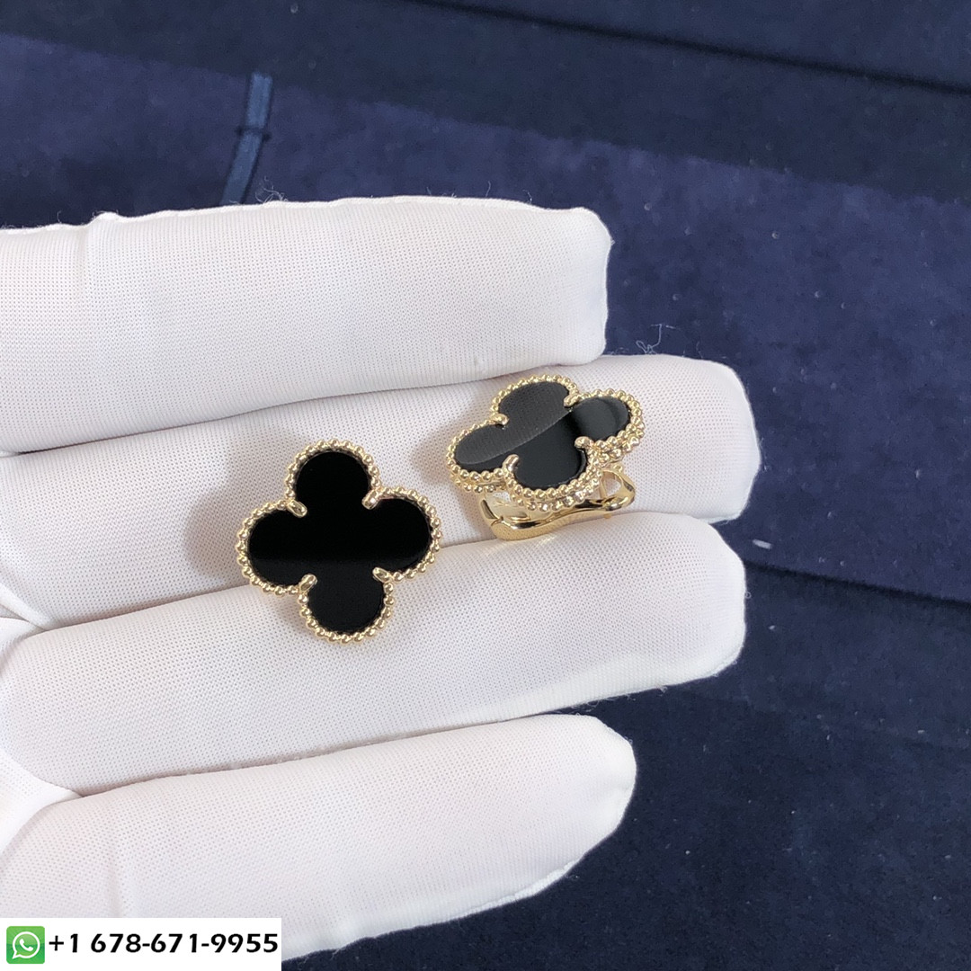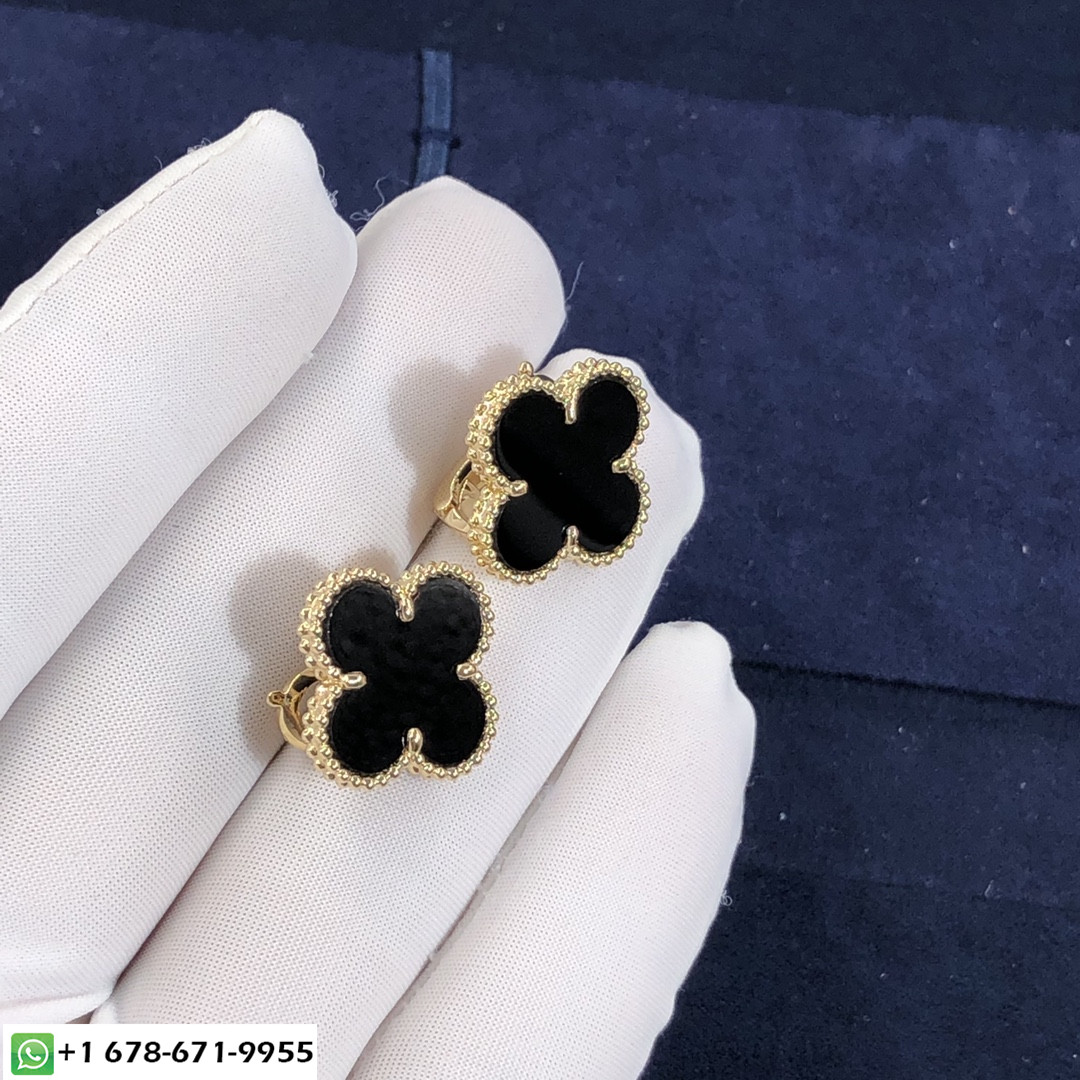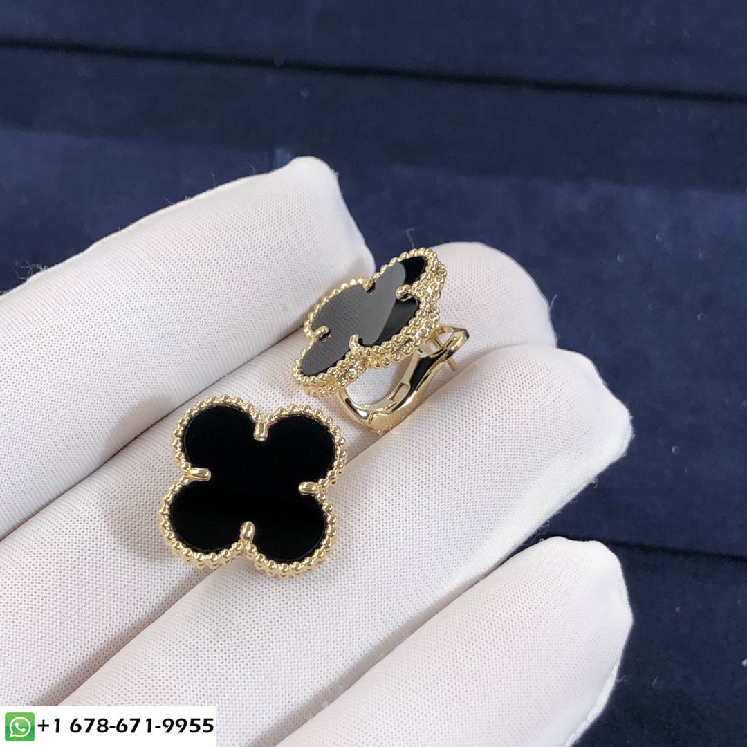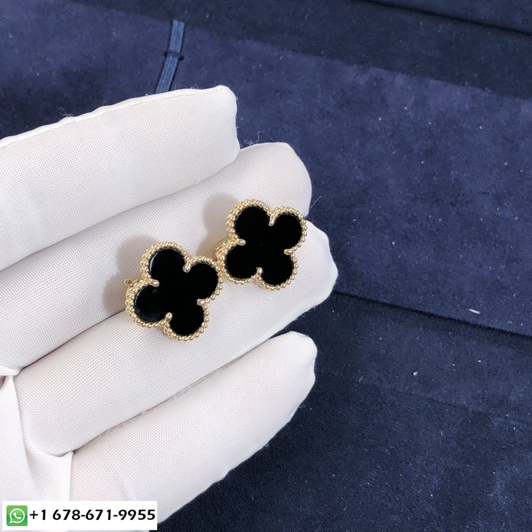 Van Cleef sur mesure & arpels boucles d'oreilles Sweet Alhambra en or jaune 18 carats et onyx.Ces oreillettes VCA sont également disponibles en or rose 18 carats et or blanc 18 carats sur demande.Les créations de bijoux Sweet Alhambra® de Van Cleef & Les arpels présentent de délicieux motifs porte-bonheur sous forme miniature depuis 2007. Léger et délicat, ils sont une manière discrète d'apporter du bonheur à chaque jour qui passe.