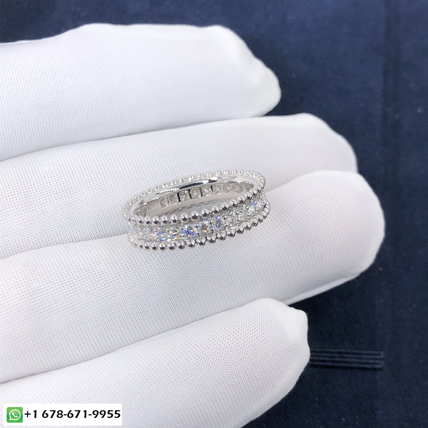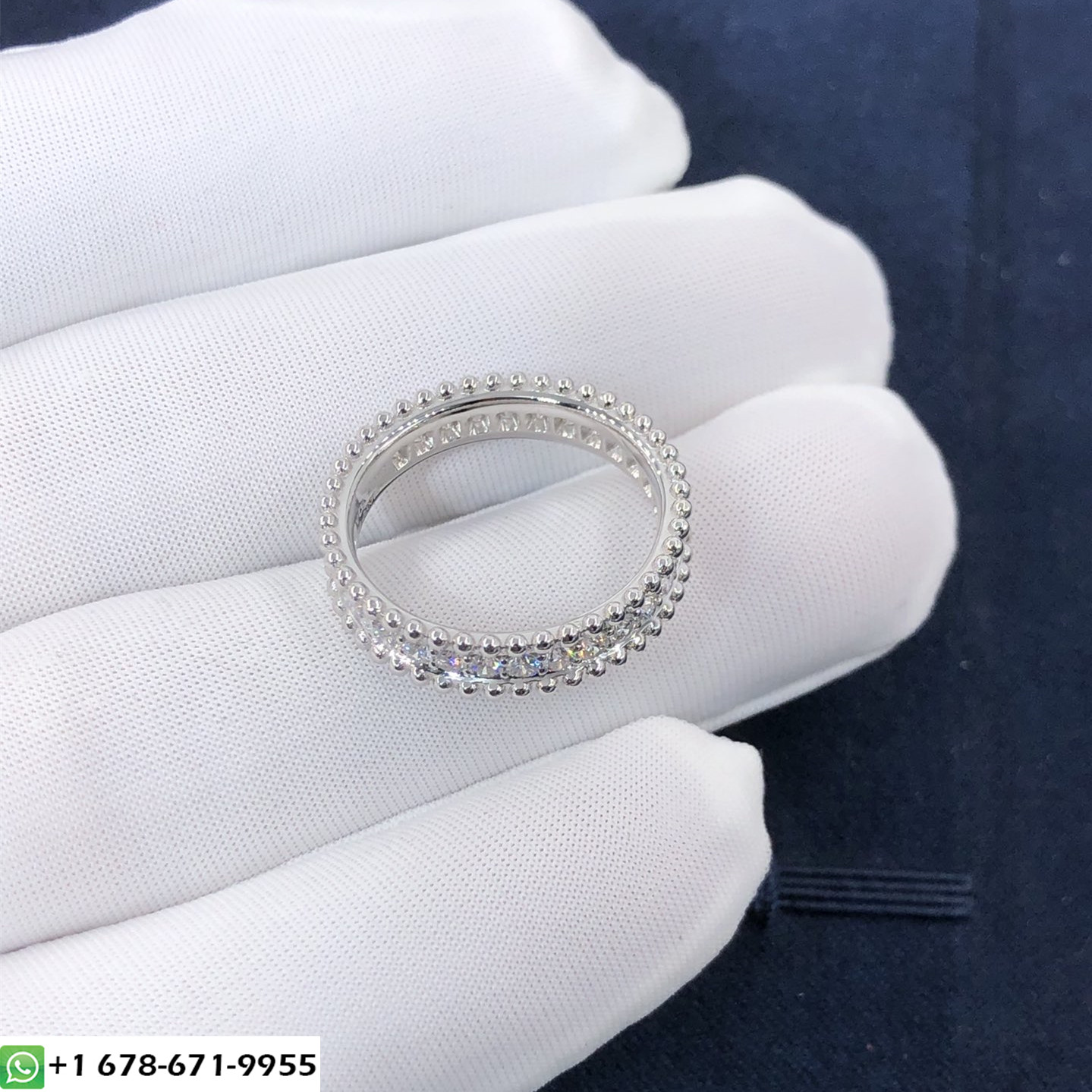 Custom made VCA perlée 1 bague rangée en or blanc 18 carats avec 32 diamants totalisant 0.55 ct. van cleef & bague arpels est également disponible en or rose 18 carats et en or jaune 18 carats sur demande.