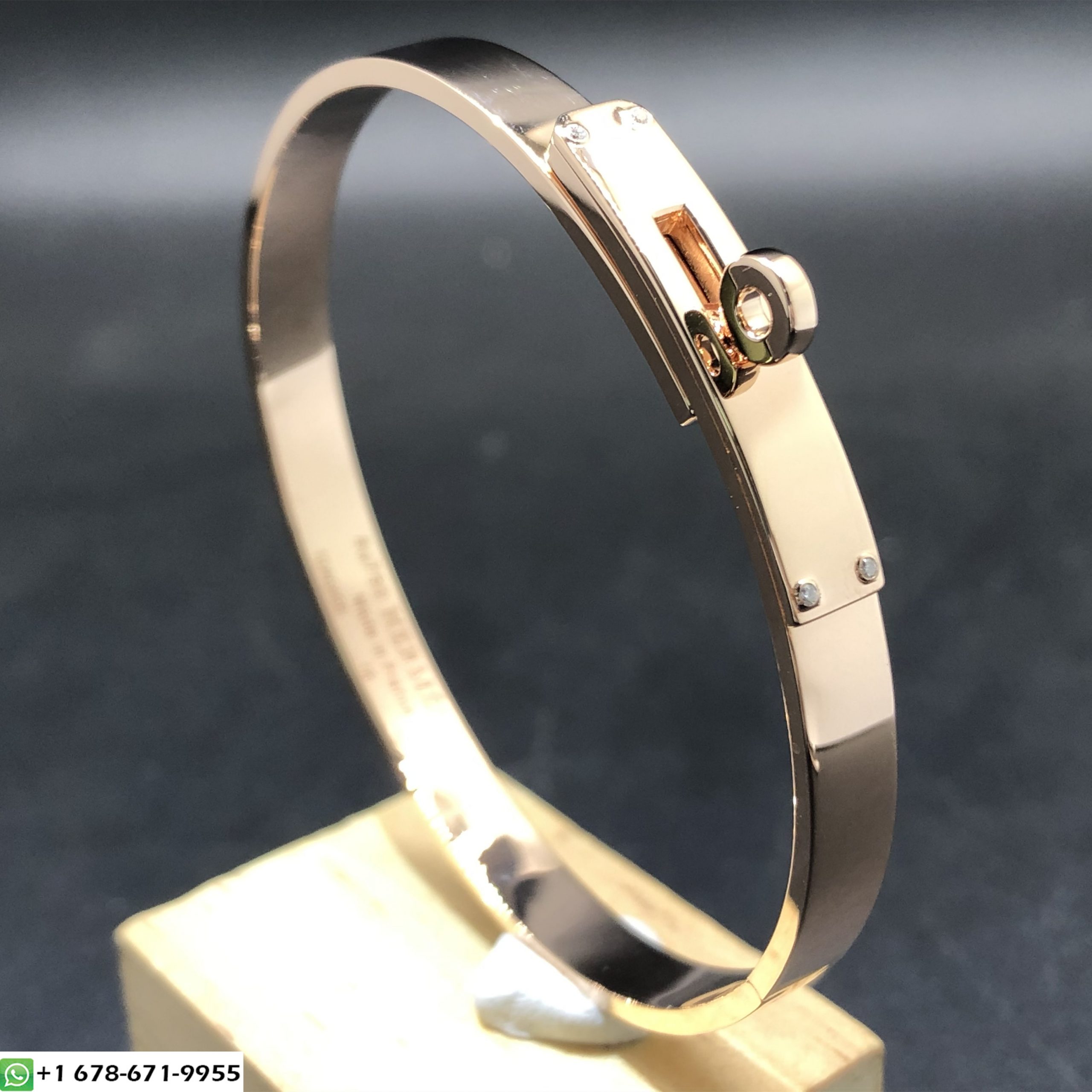 Bracelet Hermes Kelly fait sur mesure en or rose 18 carats avec 4 diamants,petit modèle.Ce bracelet hermes kelly est également disponible en or blanc 18 carats et en or jaune 18 carats sur demande.