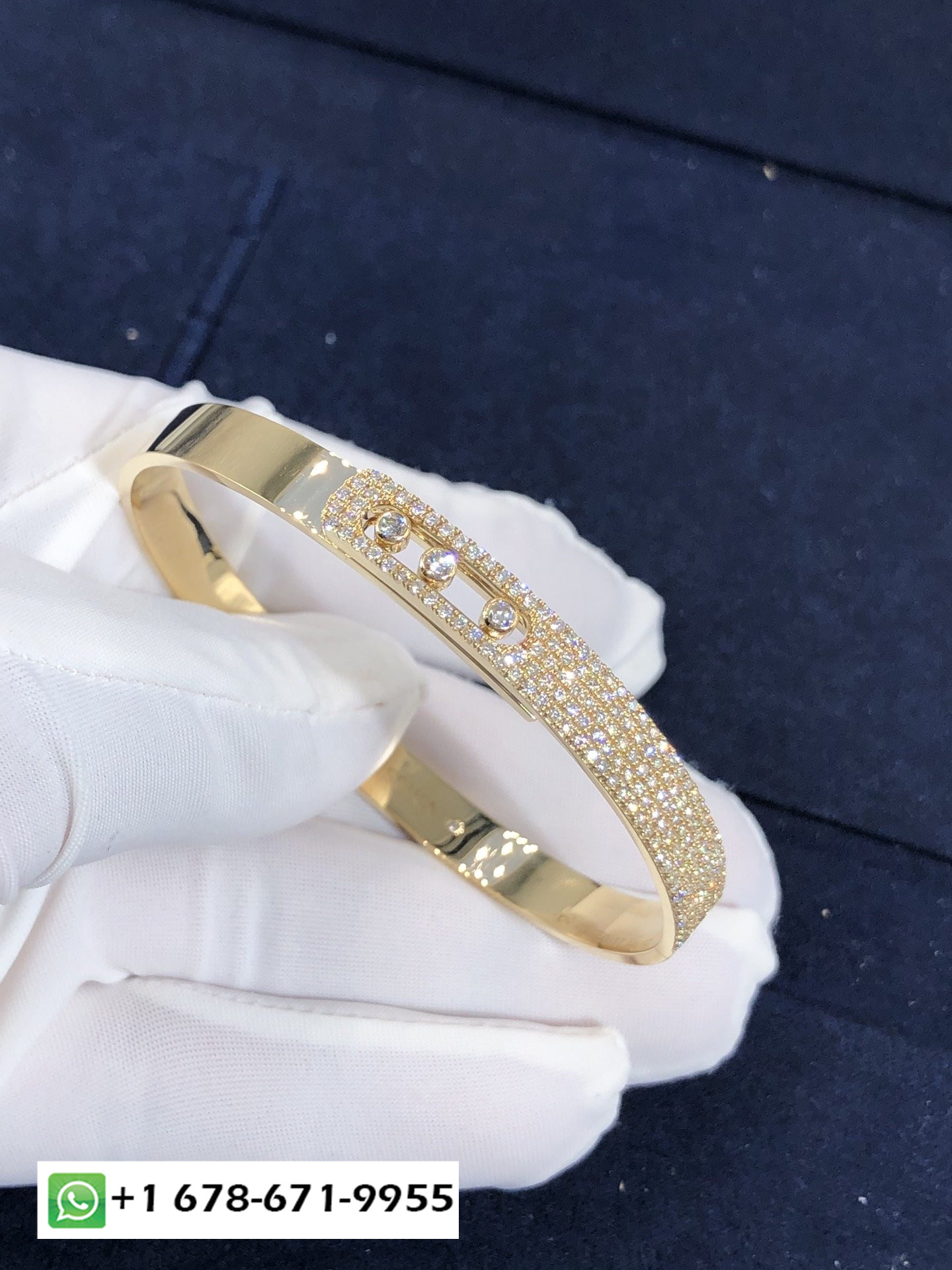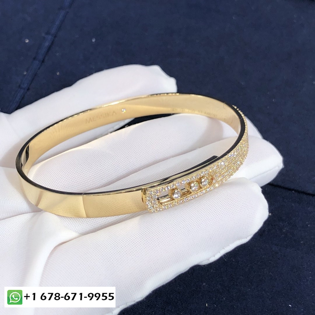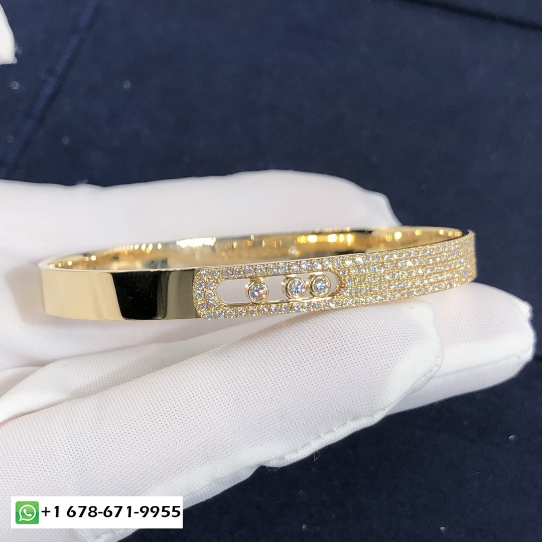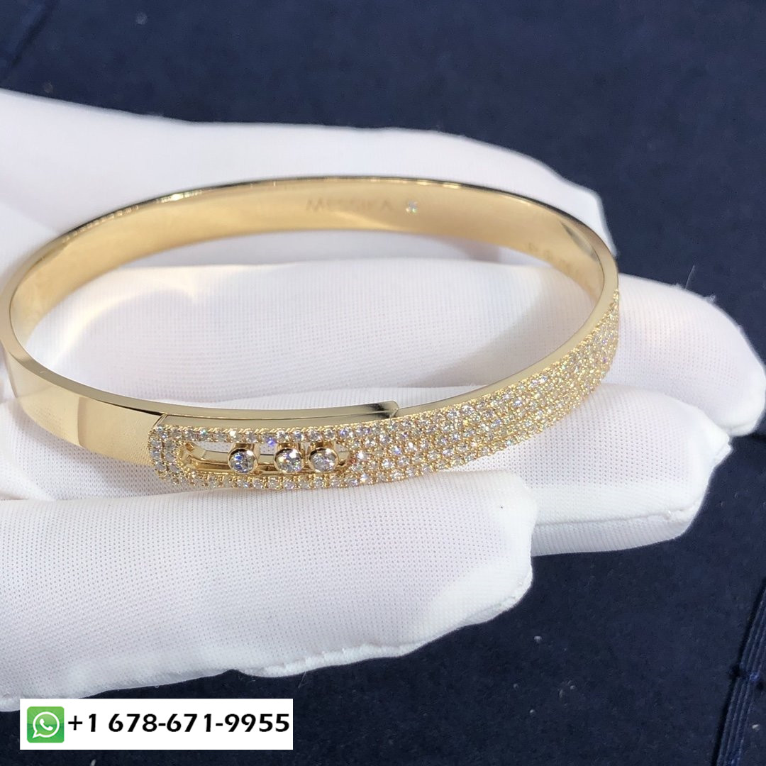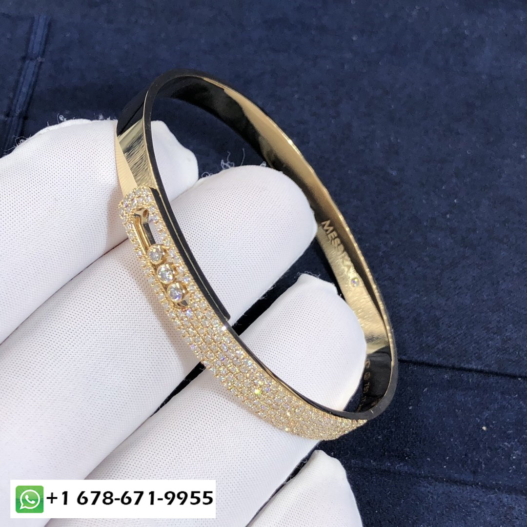 Messika déménage noa pavé bracelet personnalisé en or jaune 18 carats et diamants pour un total de 1,2 ct.Bracelet taille XS: 13.5-14.5cm.Bracelet taille S: 14-15.5cm.Bracelet taille M: 15.5-16.5cm.Bracelet taille L: 17-18cm.Bracelet taille XL: 18.5-19cm.