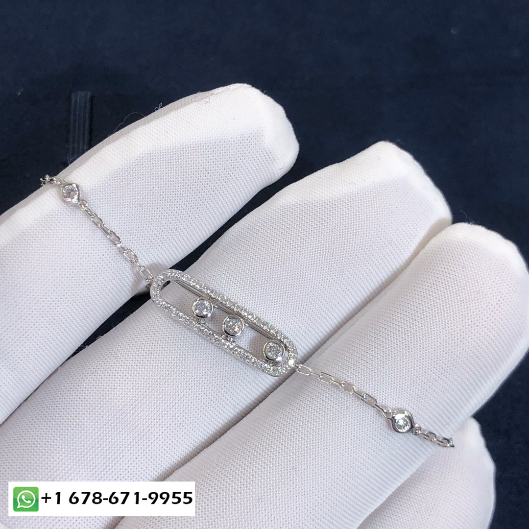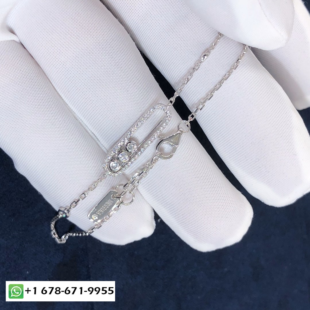 Collier pavé Messika Move réalisé sur mesure en or blanc 18 carats et diamants totalisant 0,65 carat.: 45 cm (5 anneaux de retenue).Longueur du motif: 28mm.Largeur du motif: 5mm.he Le collier diamant pavé Move est également disponible en or rose, or jaune et or noir sur demande.