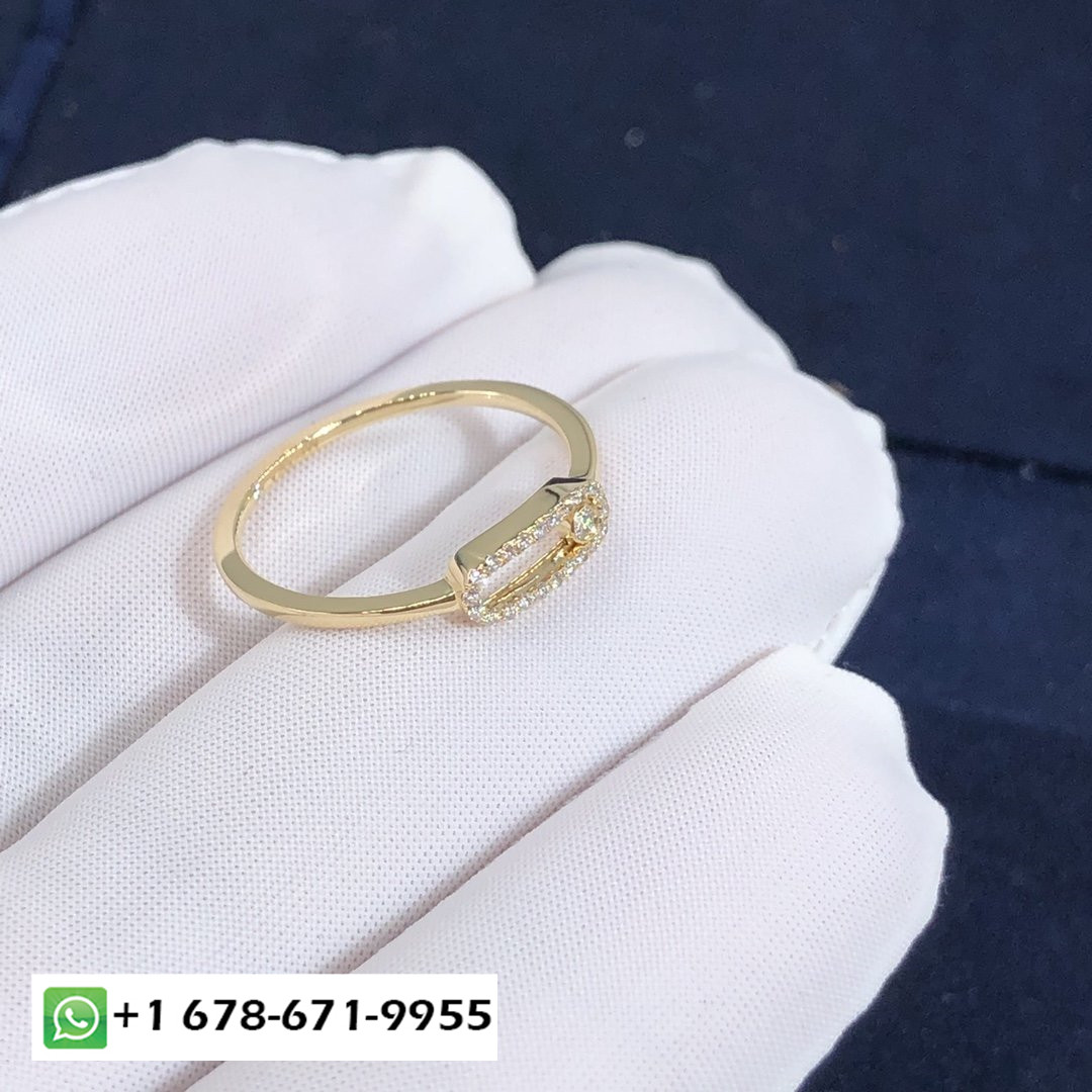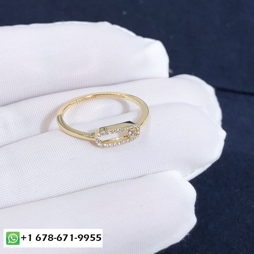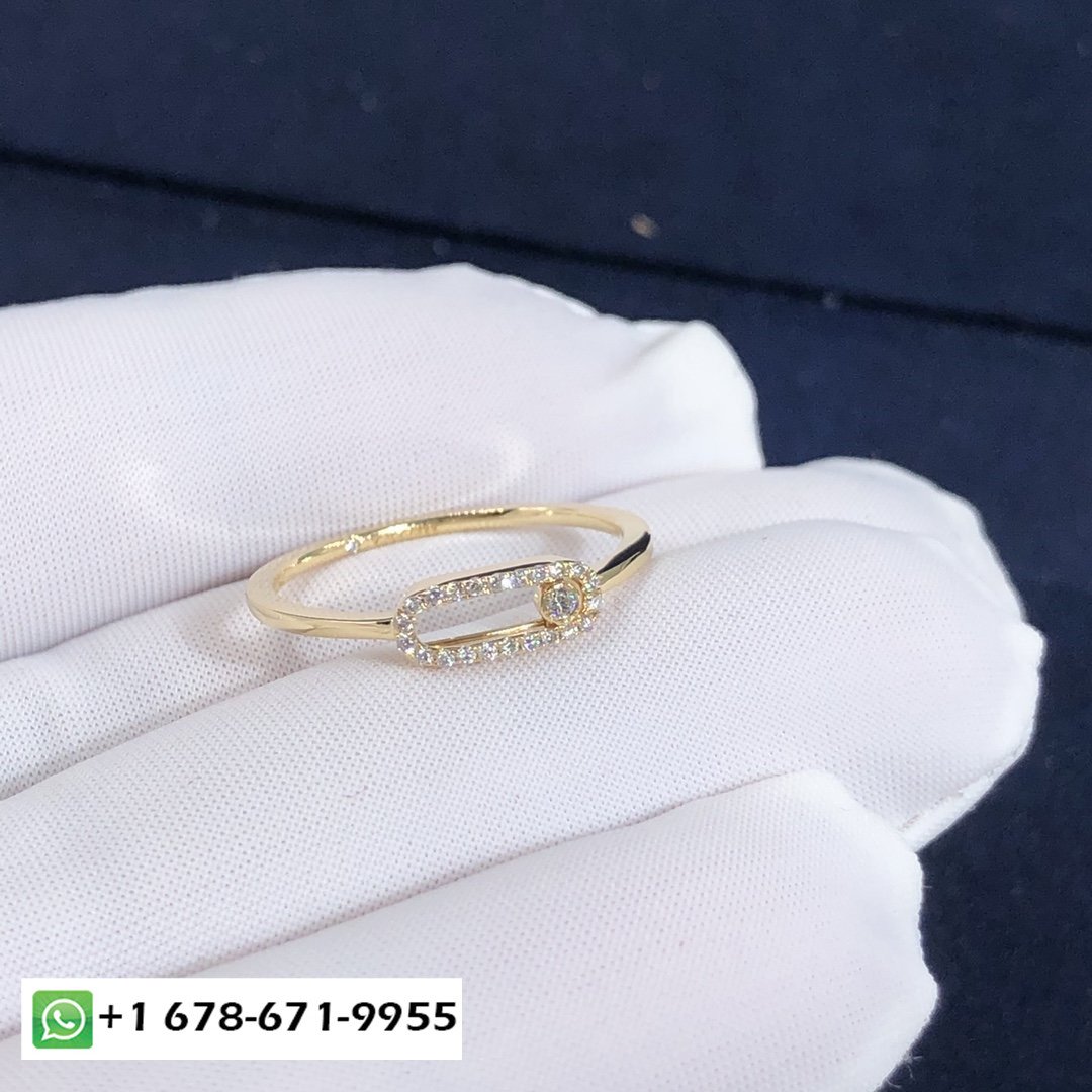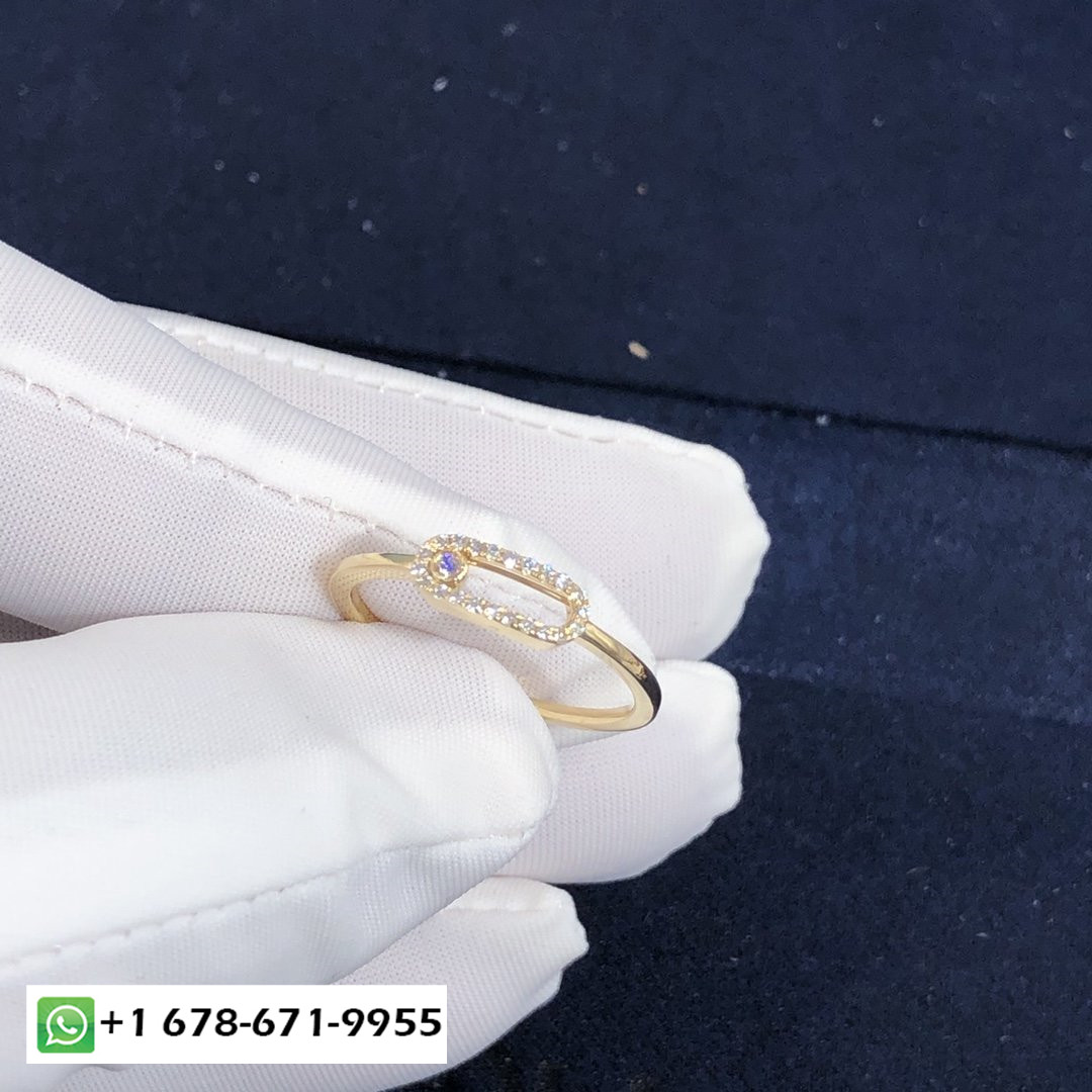 Bague diamant pavé Messika Move Uno sur mesure poids en or jaune 18 carats et diamants: 0.15 carat Longueur du motif: 12mm.Largeur du motif: 4.5mm.Move Uno pavé est également disponible en or rose, or blanc et or noir sur demande.