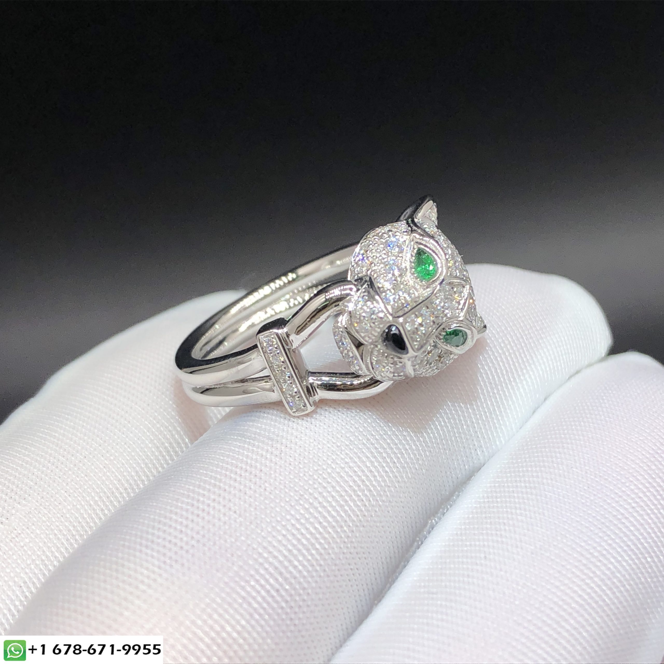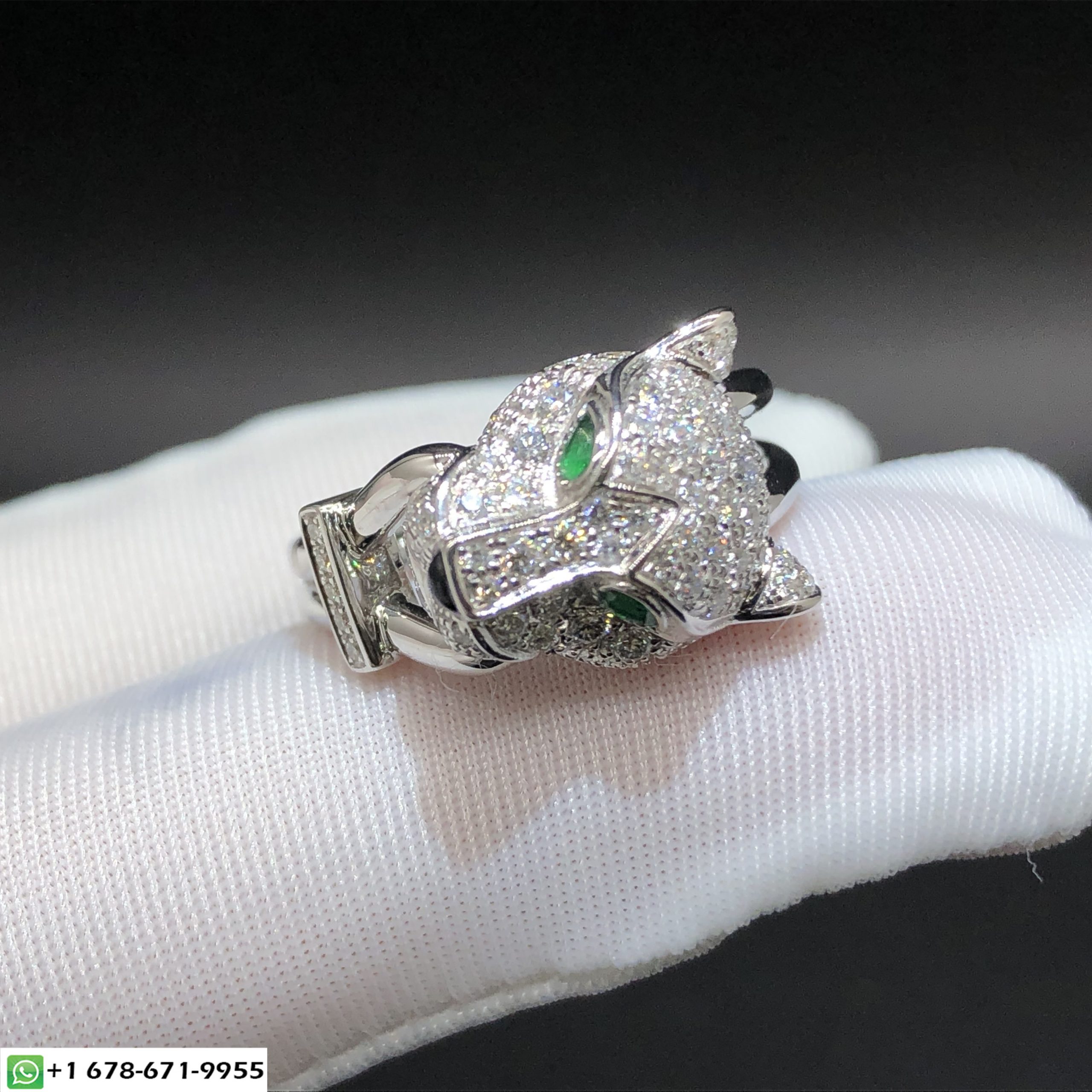 Panthère de Cartier ring custom fait en or blanc 18 carats,émeraudes,pavé d'onyx et de diamants,poids d'or 8 ~ 8,8 grammes, Fixé avec 81 diamants taille brillant totalisant 0.75 carats Largeur du motif: 10.7 mm.Nous offrons 1:1 qualité supérieure bijoux de luxe sur mesure fait en or massif 18 carats,platine,pierres précieuses et diamants GIA au prix de vente direct d'usine.Tous les articles sont livrés avec le numéro de série d'origine, l'élément le plus important qu'une autre usine de bijoux ne peut pas offrir.Et nous offrons la livraison gratuite dans le monde entier.N'hésitez pas à nous contacter par e-mail:copyjwlove@gmail.com et whatsapp:+852 5647 8615.Merci beaucoup!
